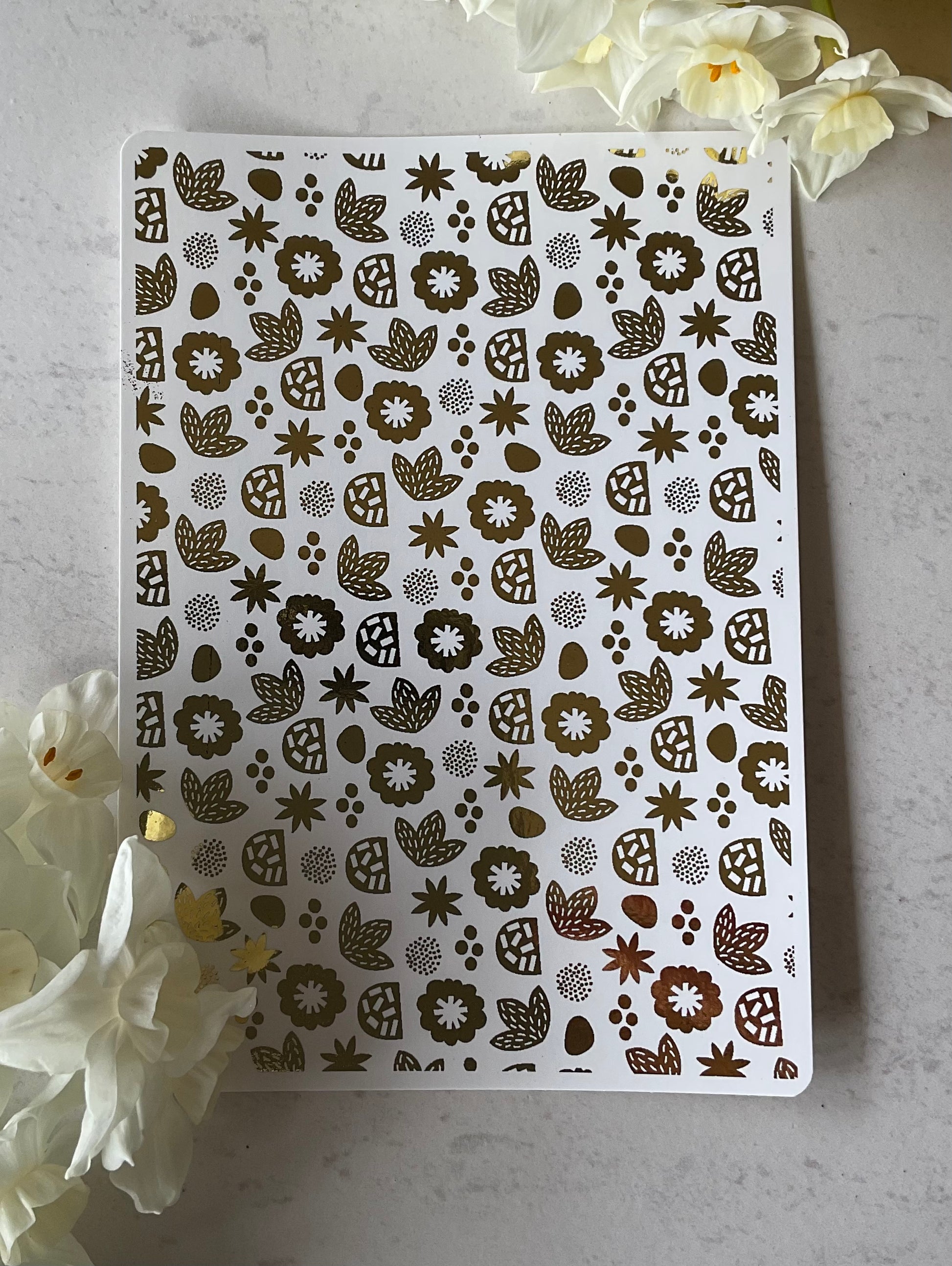 Contemporary Bohemian Florals Gold Foil Water Transfer 085