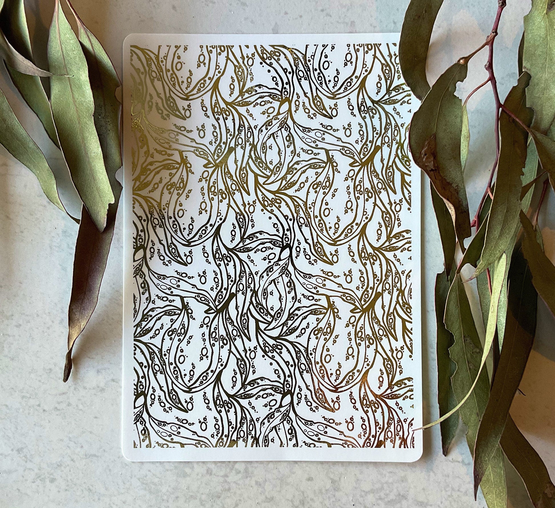 Eucalyptus Leaves Ditsy Print Gold Foil 026