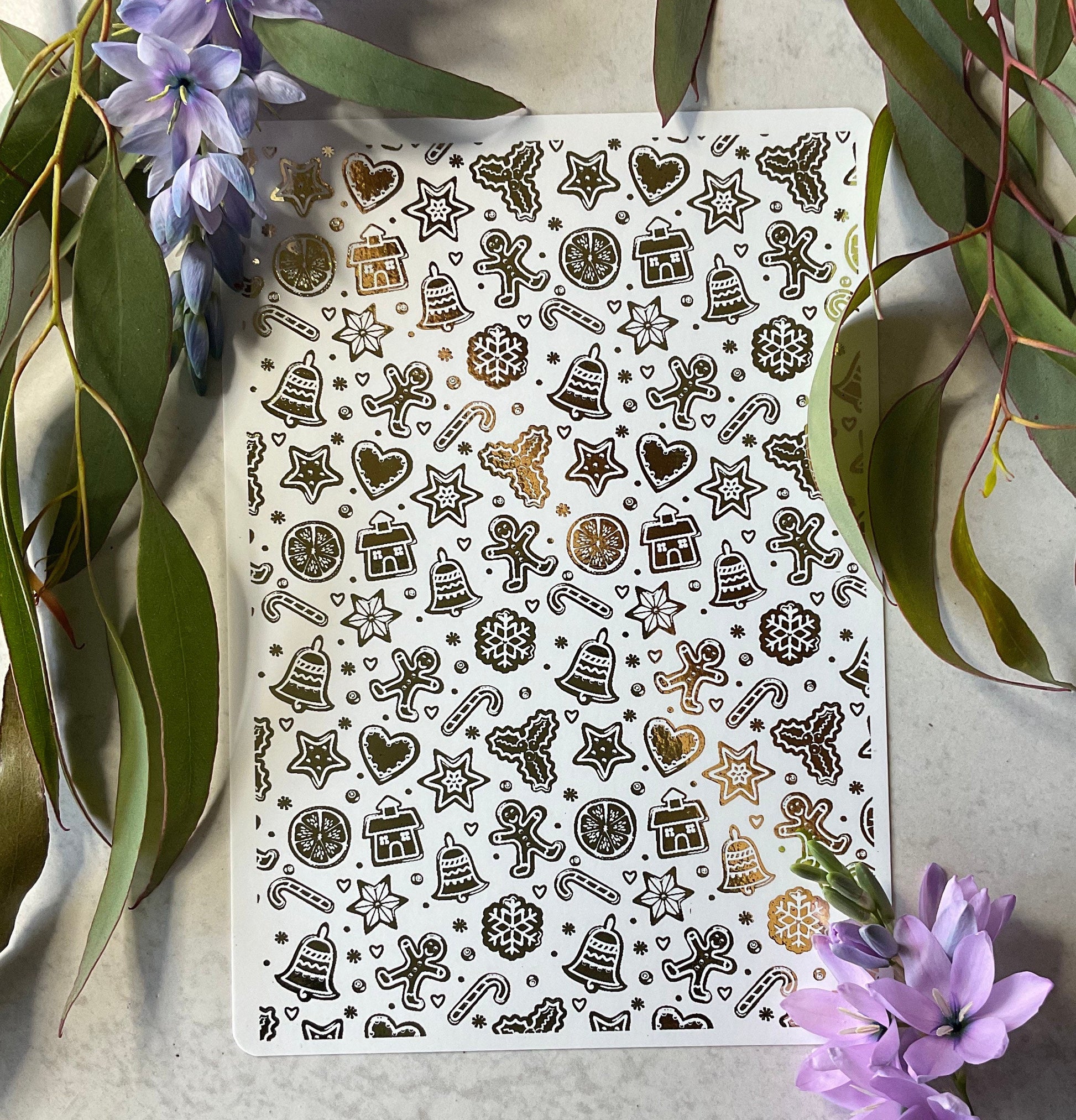 How to use your new Gold Foil Water Transfer: Condition and prepare your polymer clay, cut it out using your favourite cutters. Bake your clay according to manufacturers recommendations. Sand your clay pieces ensuring the surface you wish to place the decal on is smooth and dust free. Turn decal sheet over so you are looking at the backside, trace around your shape (desired decal design side facing the white backing of decal paper). Cut out your shape using your scissors, making sure you cut on the inside of your traced line. Place the decal in clean room temperature water, submerge for 30-60 seconds or until the backing paper slides off easily. Remove the decal from the water. Place the decal on your clay piece being gentle and careful not to tear. Slowly slide the white backing paper from between the clay piece and the image. Using a wet finger very gentle push out any water from behind the decal or any air bubbles. Allow to dry naturally for 3 hours out of direct sunlight.