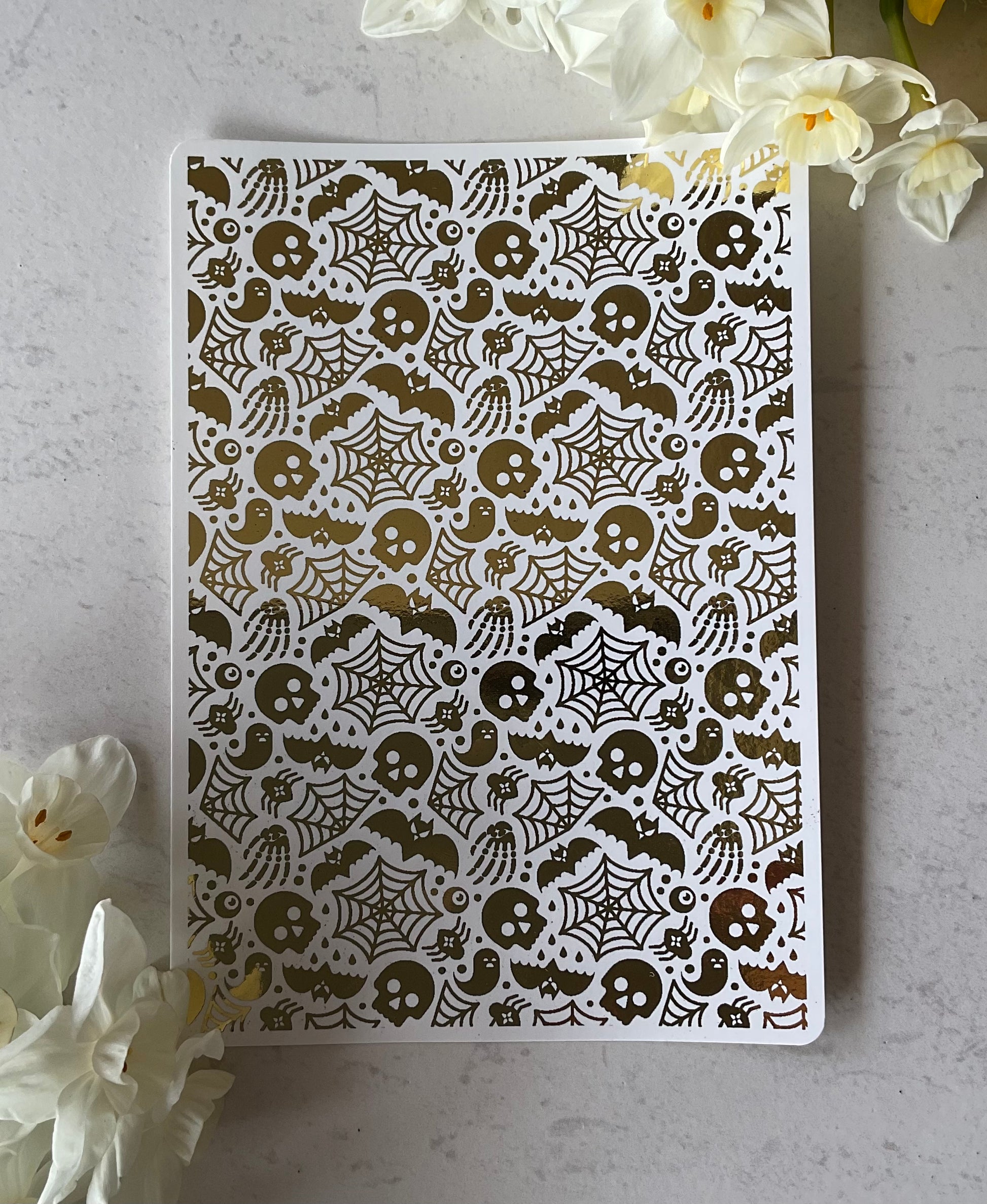 Creepy Halloween Spiders, Skulls & Spiderwebs Gold Foil 074