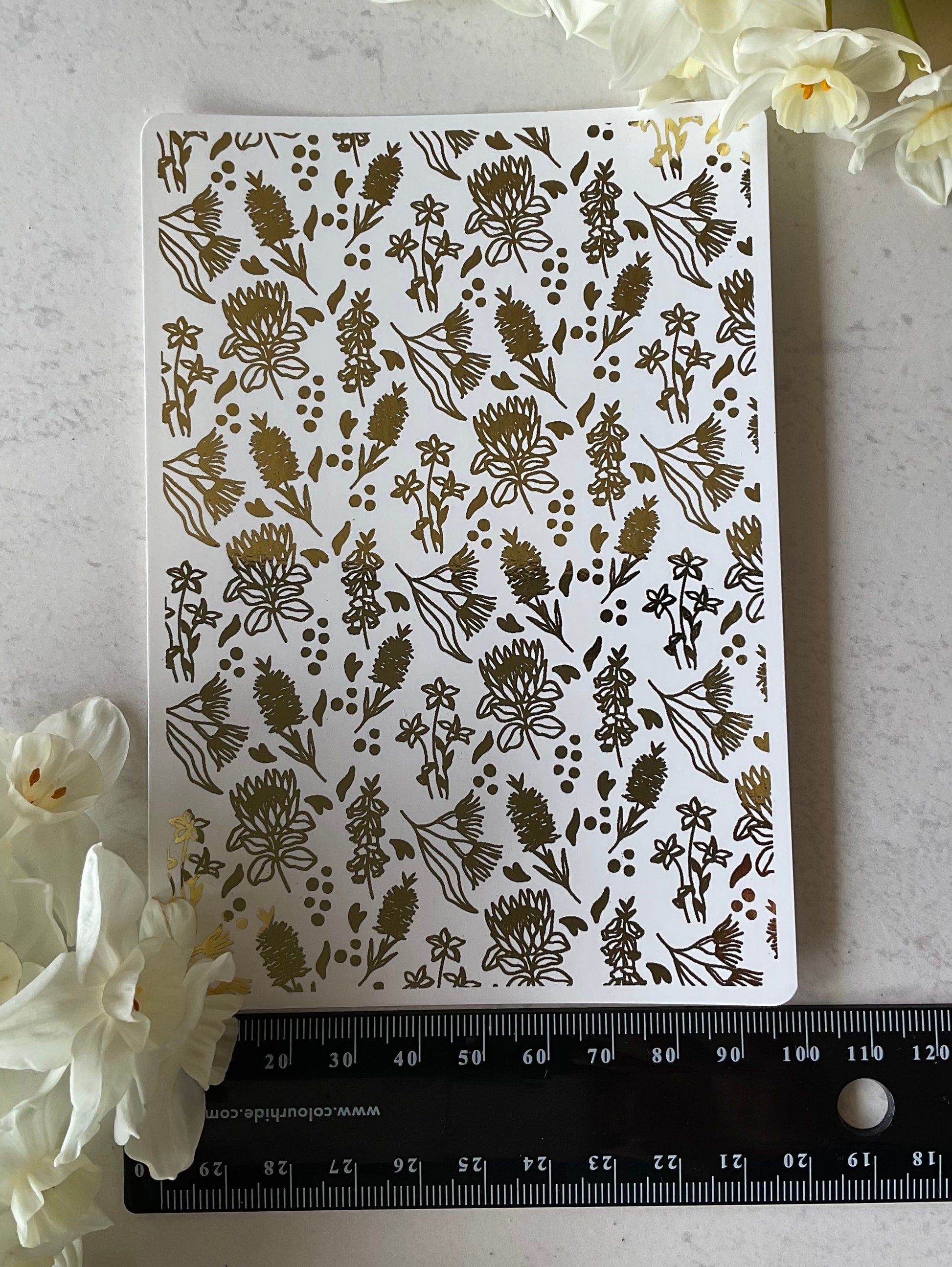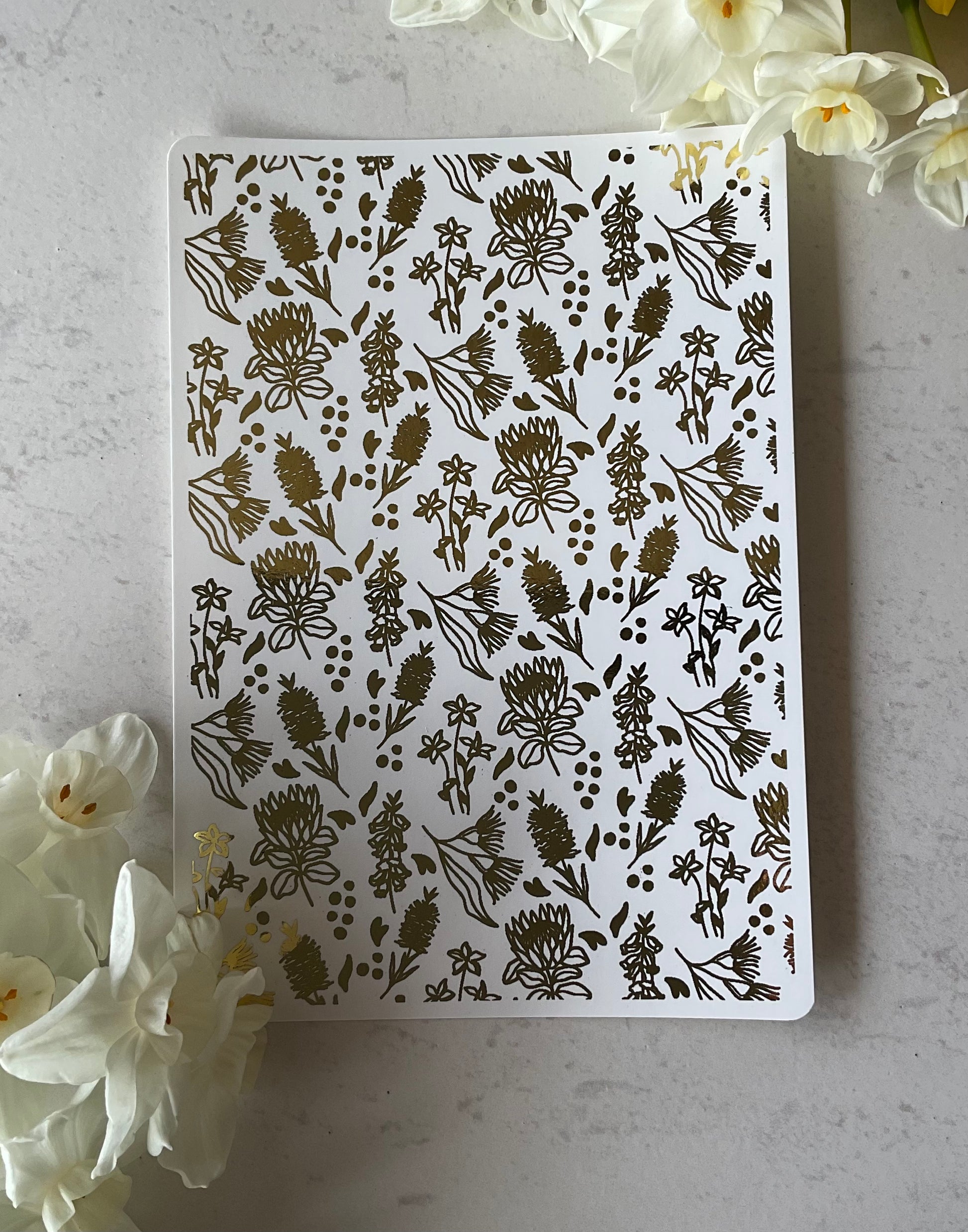 Ditsy Australian Botanicals Bottlebrush & Eucalyptus Blooms Gold Foil 061