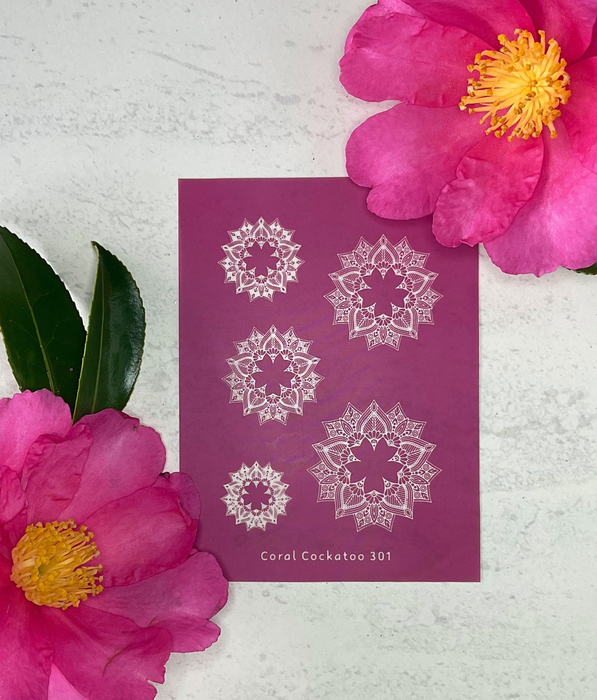 Important Info: Use your unique Coral Cockatoo Silkscreen for anything from earring and jewellery pieces to paper craft and card creations and more! The possibilities are limited only by your imagination and creativity!
