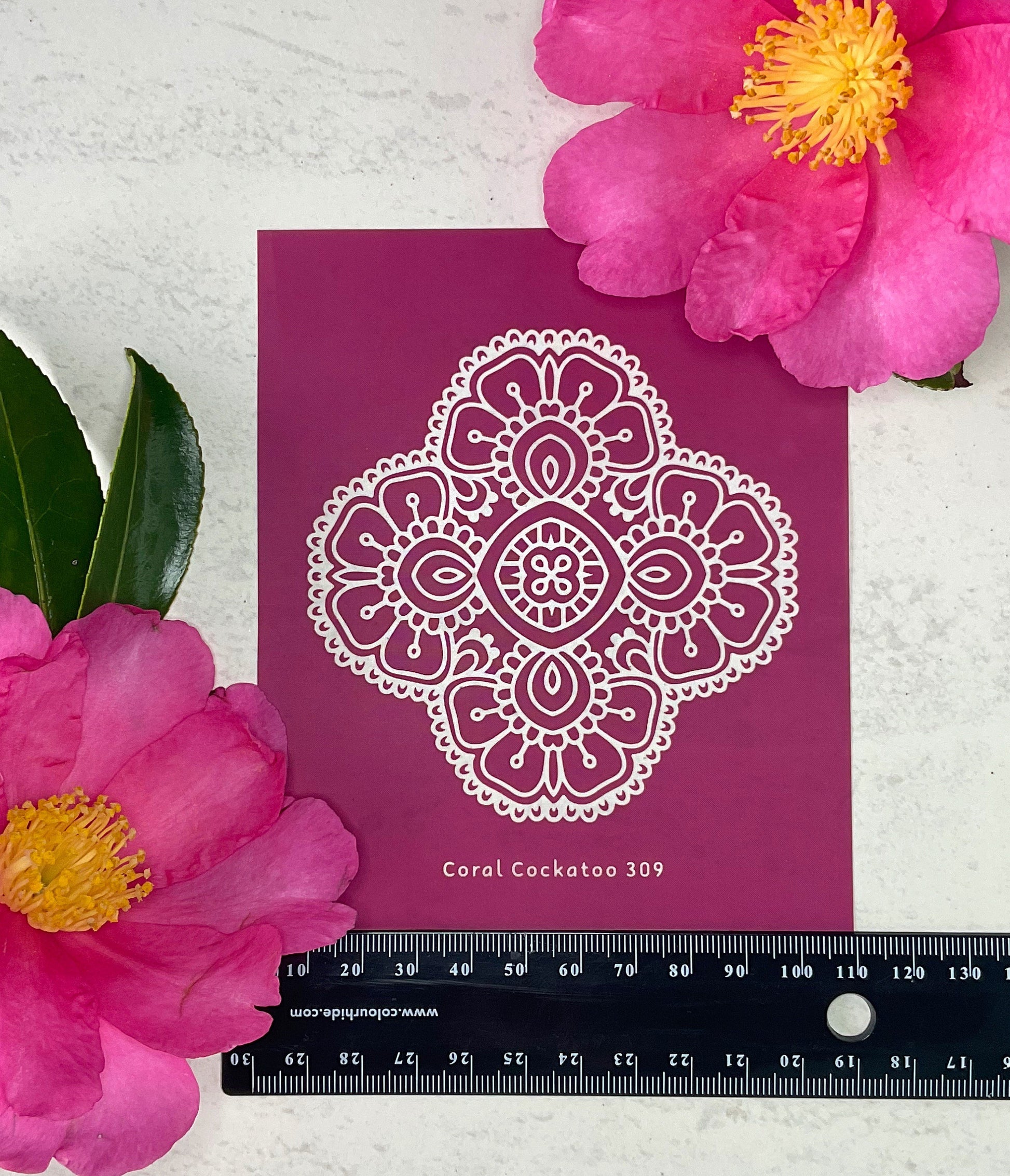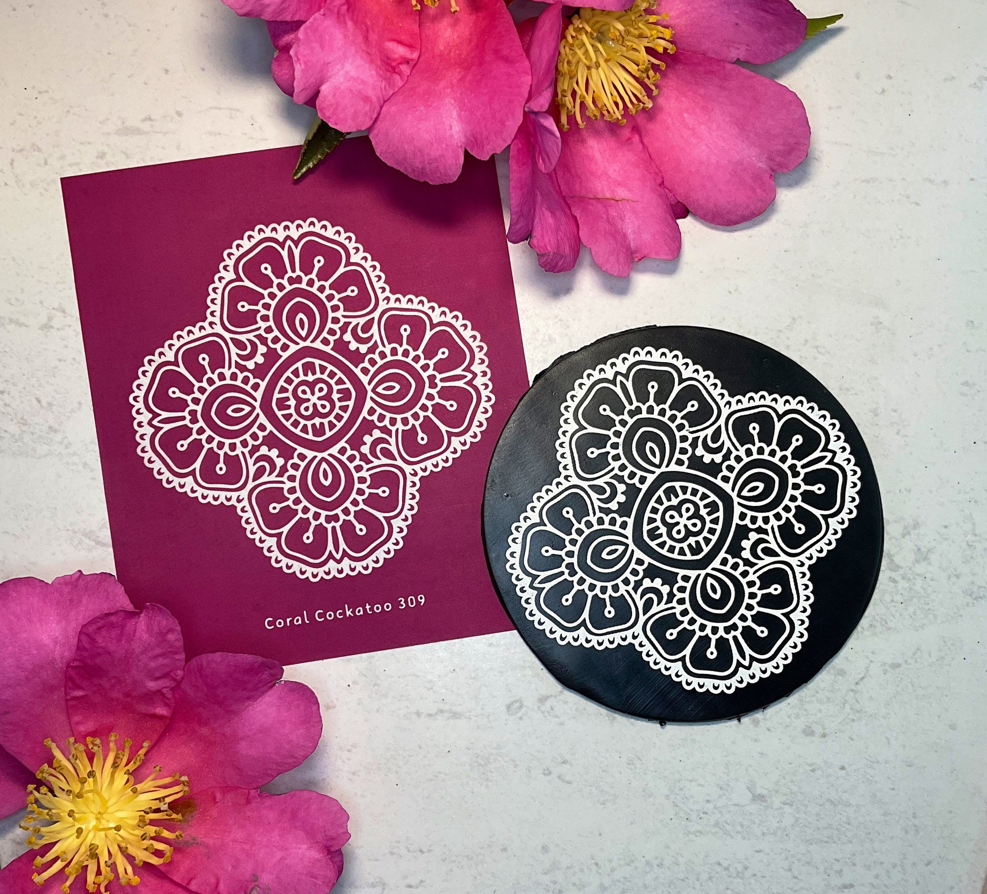 Important Info: Use your unique Coral Cockatoo Silkscreen for anything from earring and jewellery pieces to paper craft and card creations and more! The possibilities are limited only by your imagination and creativity!