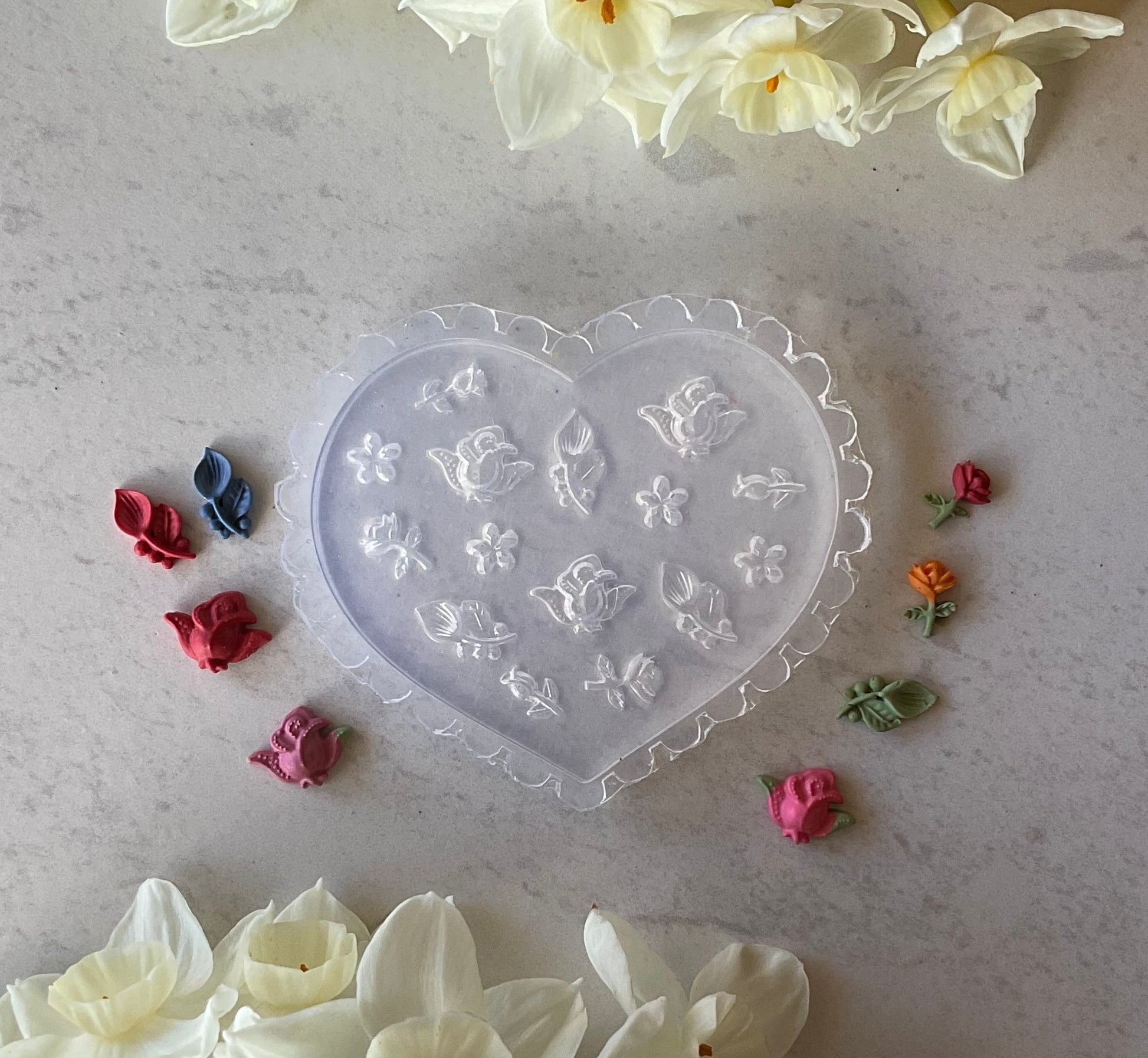 Rose Buds and Leaves Floral Miniature Silicone Mold 006