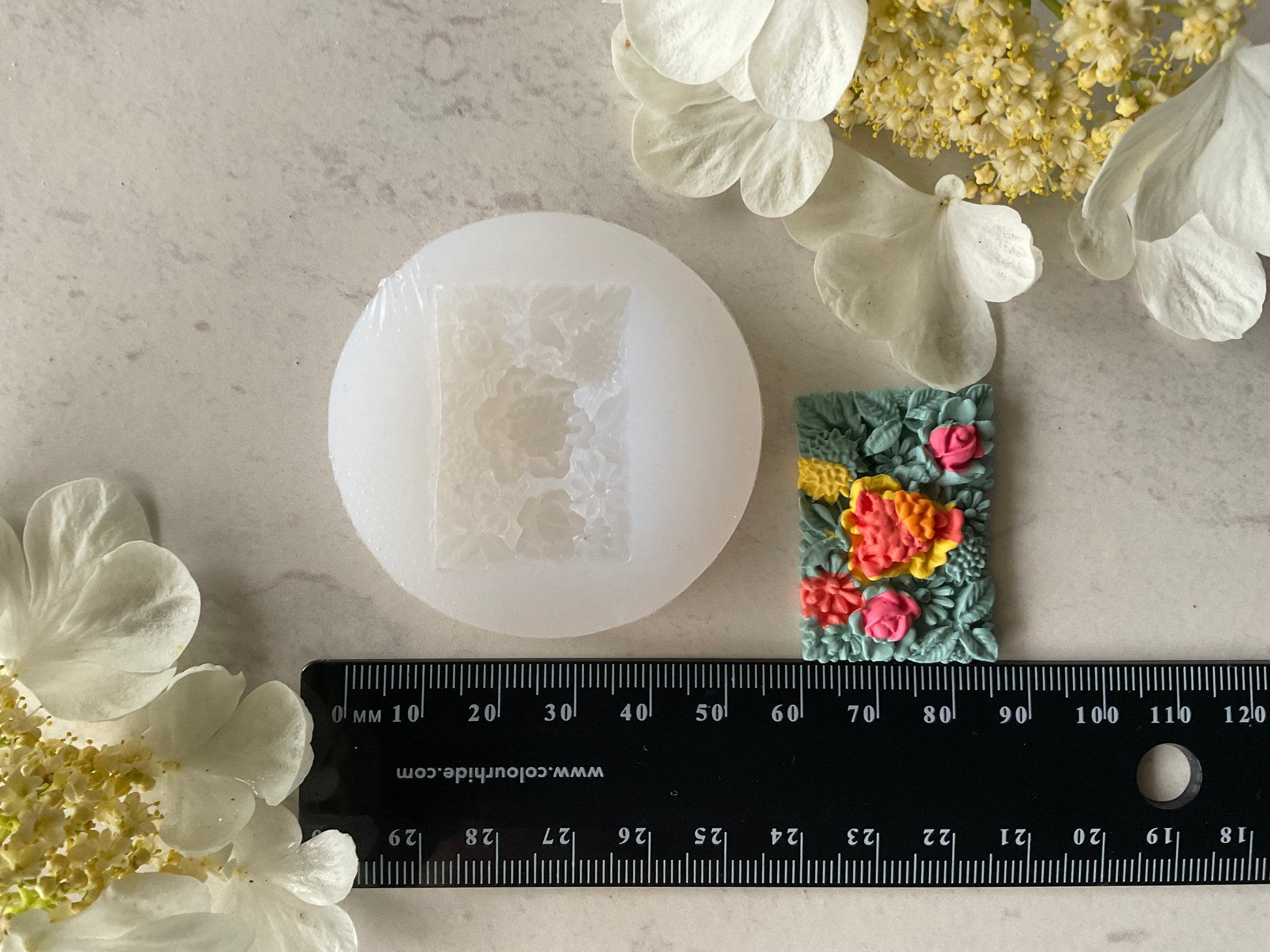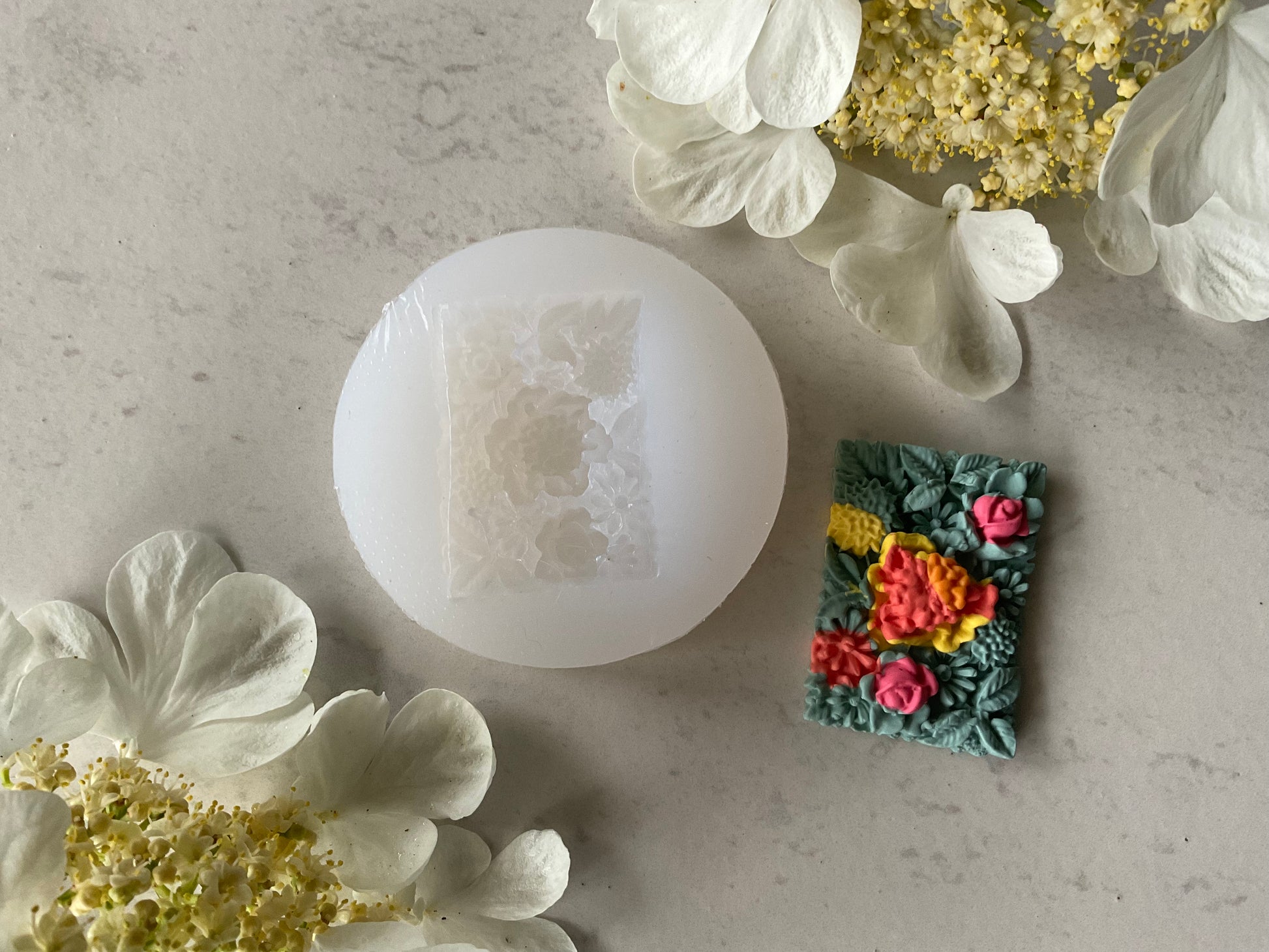 Bring some of Mother Nature's beauty to your creations with this Rose & Daisy Flower Garden Silicone Mold! Crafted with floral accents of various leaves and flowers, this mold can be used with a variety of materials such as polymer clay, UV resin, or liquid clay and they are even oven safe! Hello liquid clay!! So get creative and make some blooming masterpieces that'll last for ages - no green thumb required!