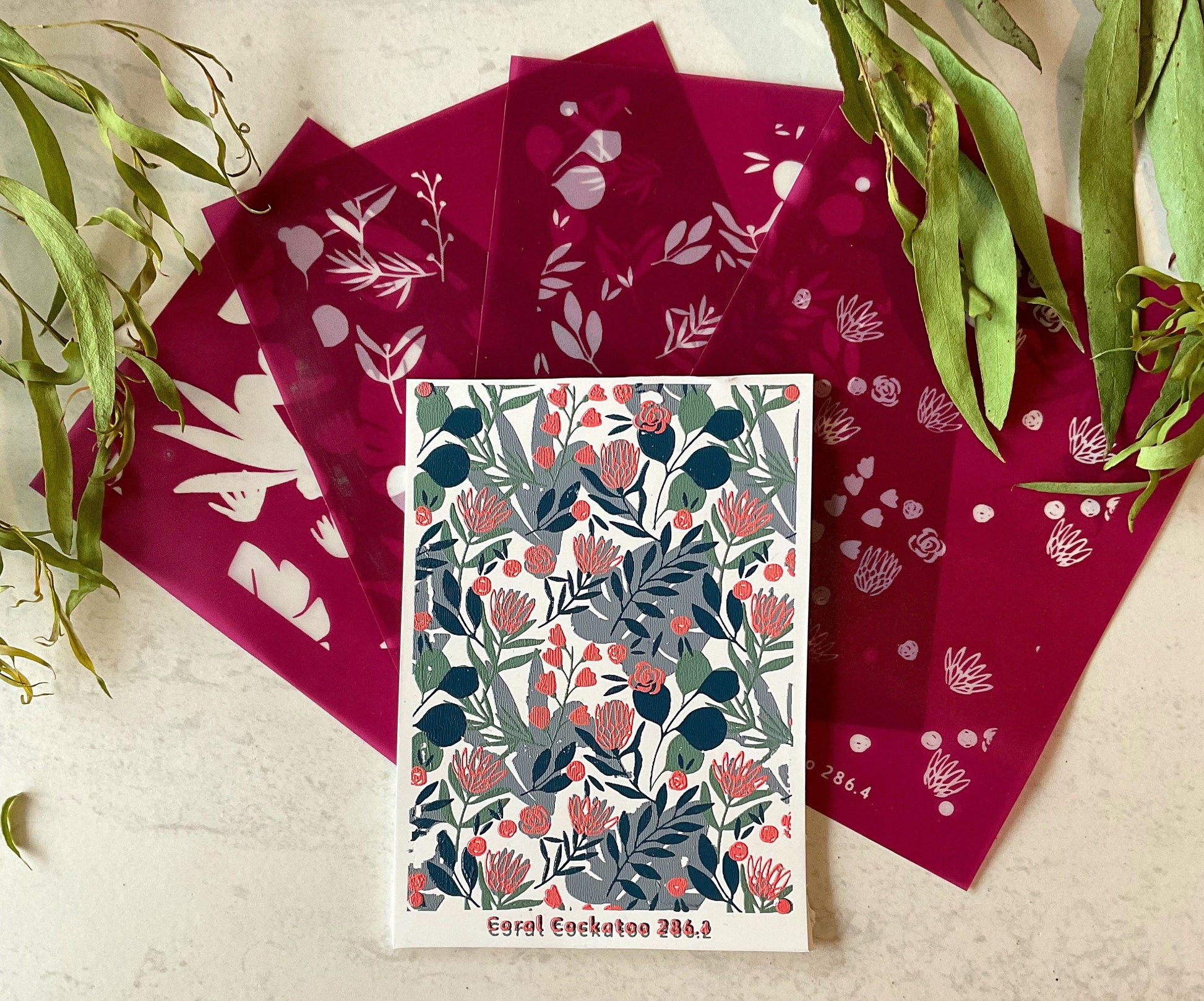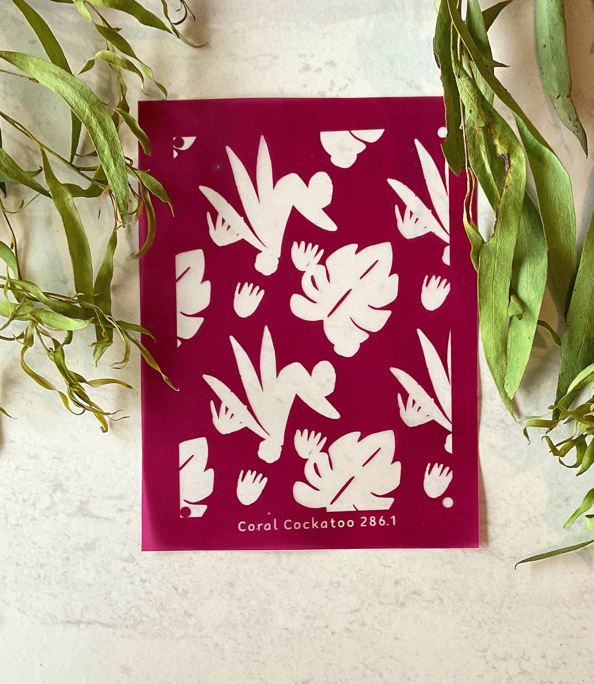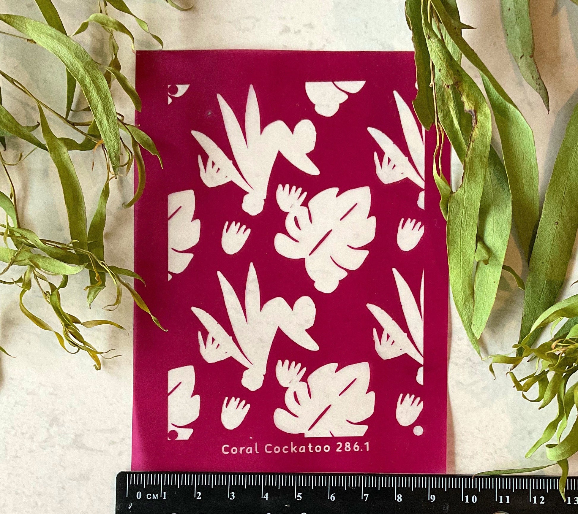 Important Info: Use your unique Coral Cockatoo Silkscreen for anything from earring and jewellery pieces to paper craft and card creations and more! The possibilities are limited only by your imagination and creativity!