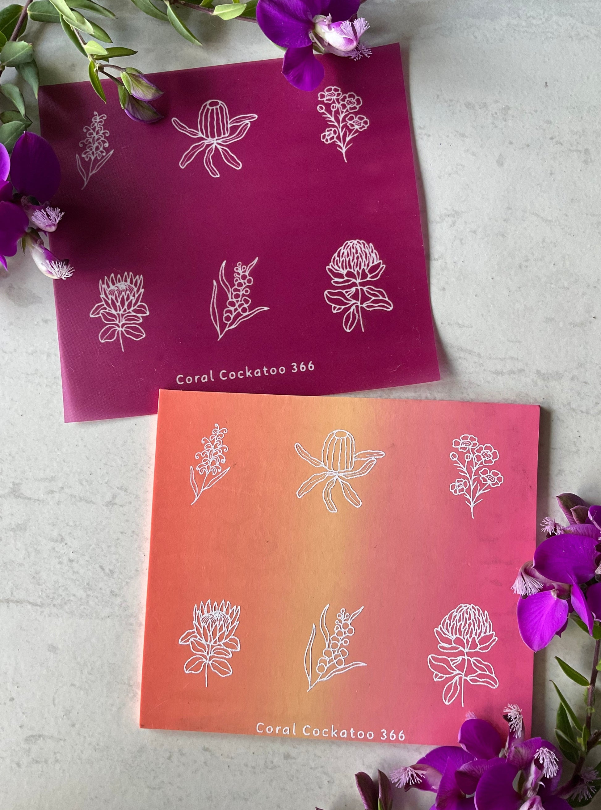 Important Info: Use your unique Coral Cockatoo Silkscreen for anything from earring and jewellery pieces to paper craft and card creations and more! The possibilities are limited only by your imagination and creativity!