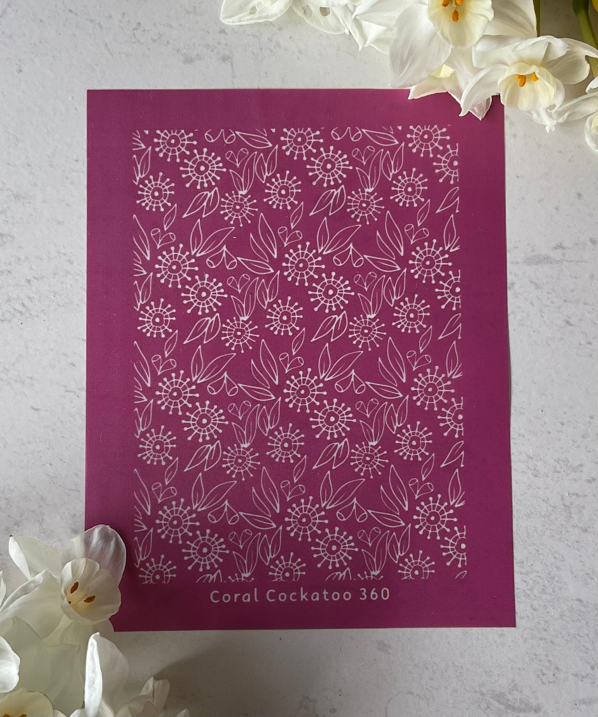 Important Info: Use your unique Coral Cockatoo Silkscreen for anything from earring and jewellery pieces to paper craft and card creations and more! The possibilities are limited only by your imagination and creativity!