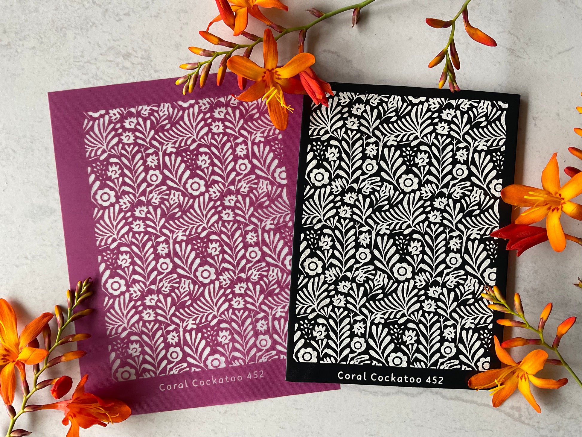 Important Info: Use your unique Coral Cockatoo Silkscreen for anything from earring and jewellery pieces to paper craft and card creations and more! The possibilities are limited only by your imagination and creativity!