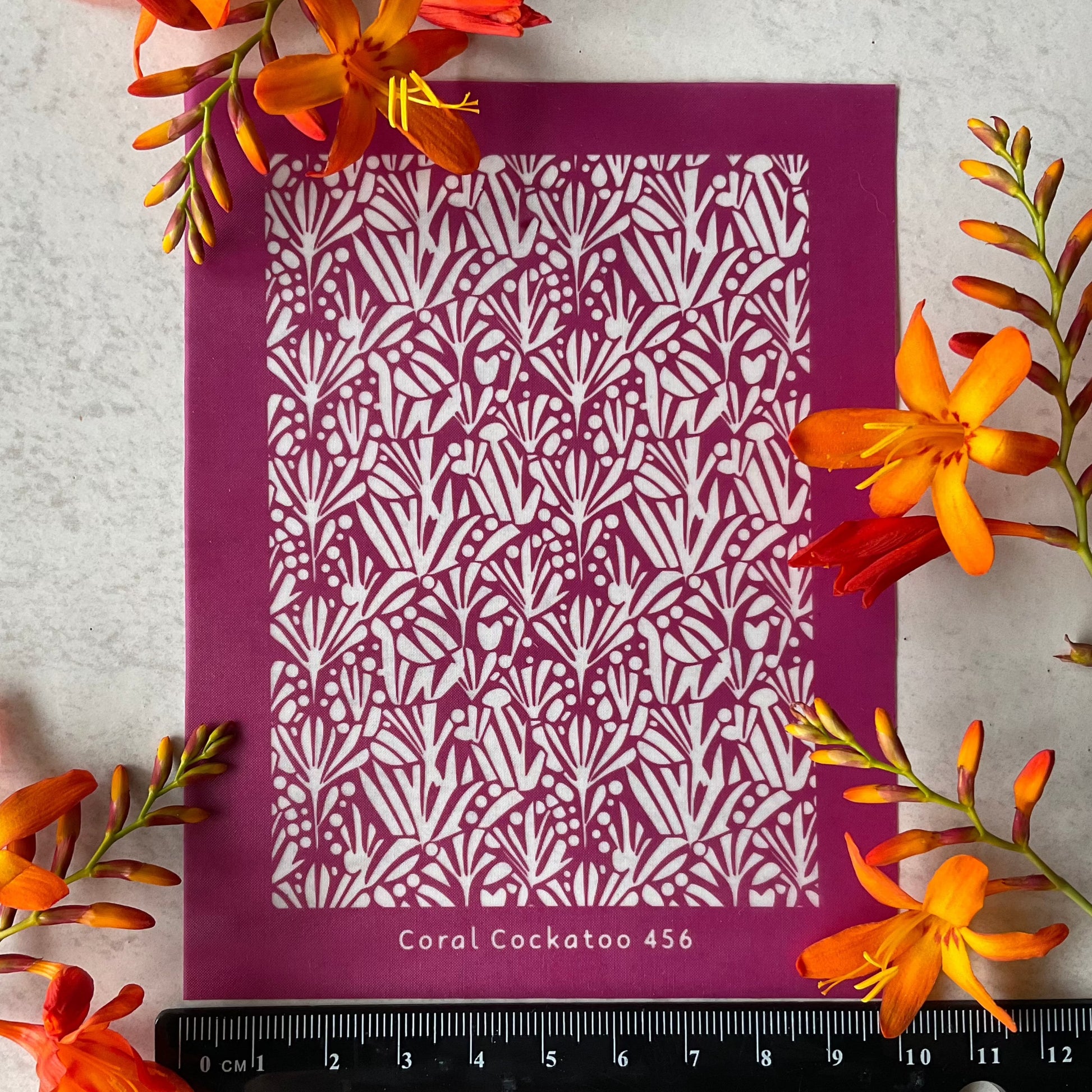 Important Info: Use your unique Coral Cockatoo Silkscreen for anything from earring and jewellery pieces to paper craft and card creations and more! The possibilities are limited only by your imagination and creativity!