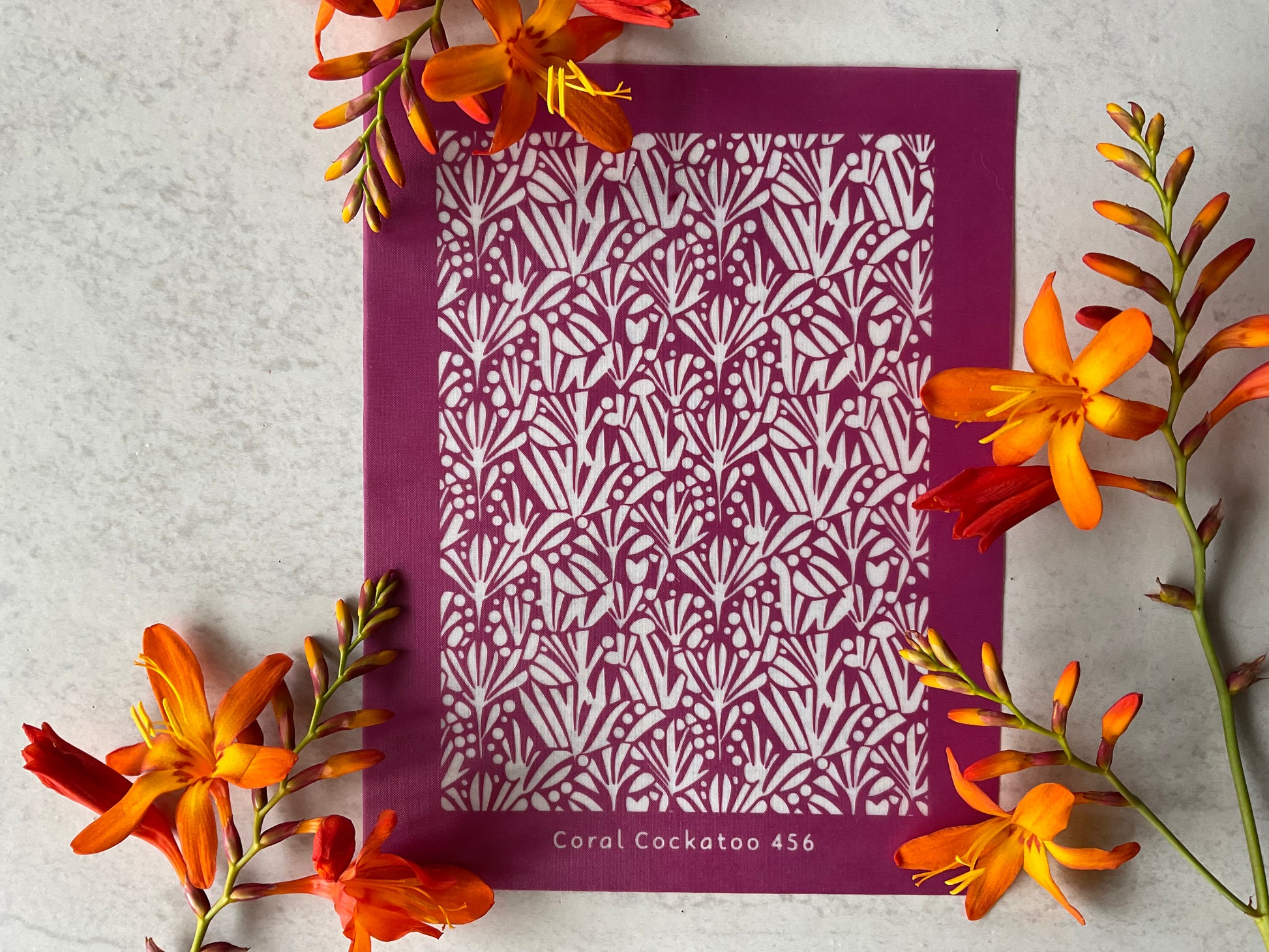 Recommendations: Coral Cockatoo recommends that you use your new Coral Cockatoo Silkscreen with a good quality highly pigmented Artists Acrylic Paint.