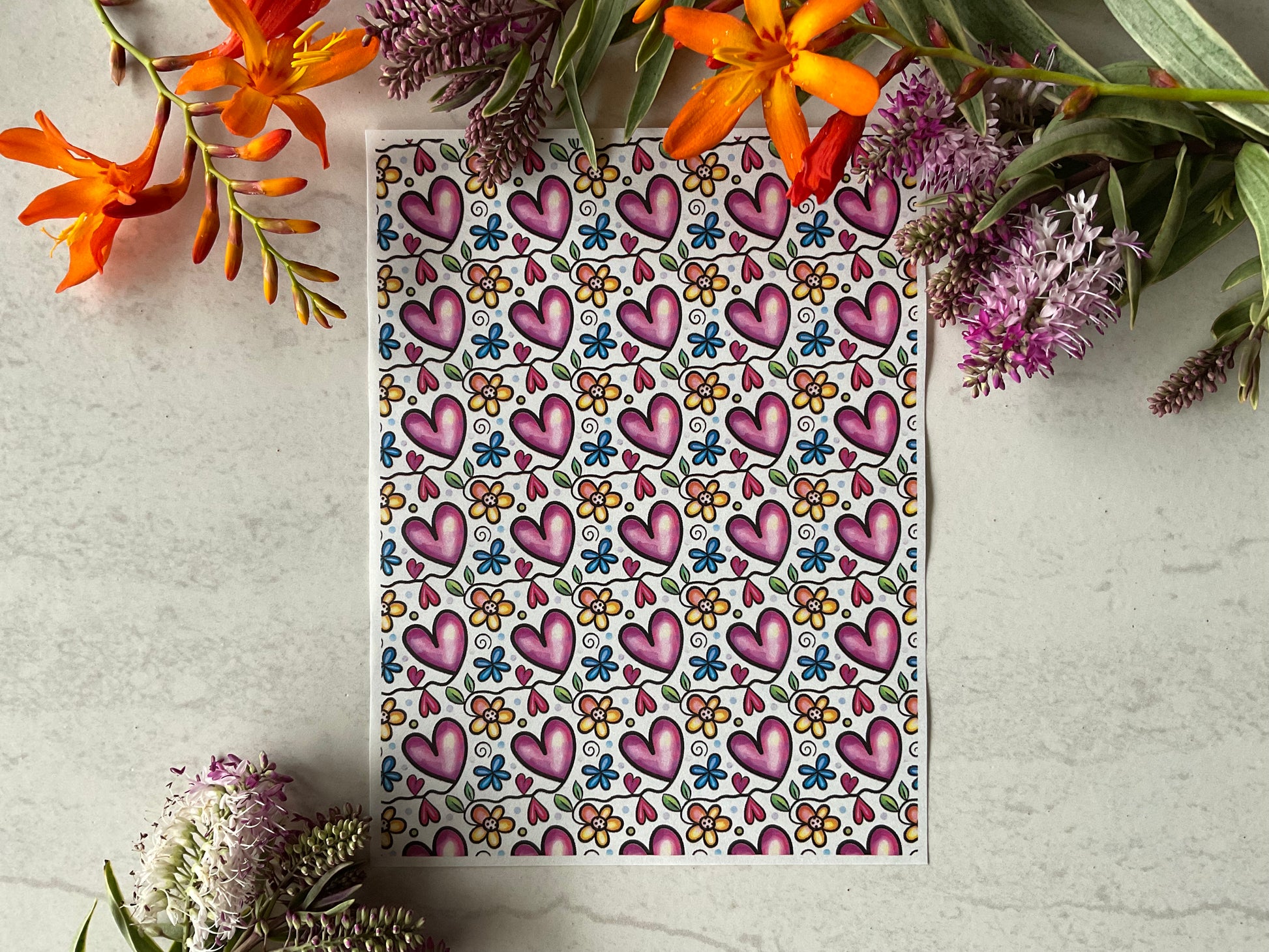Doodle Hearts One Patterns Colour Water Soluble Transfer 024