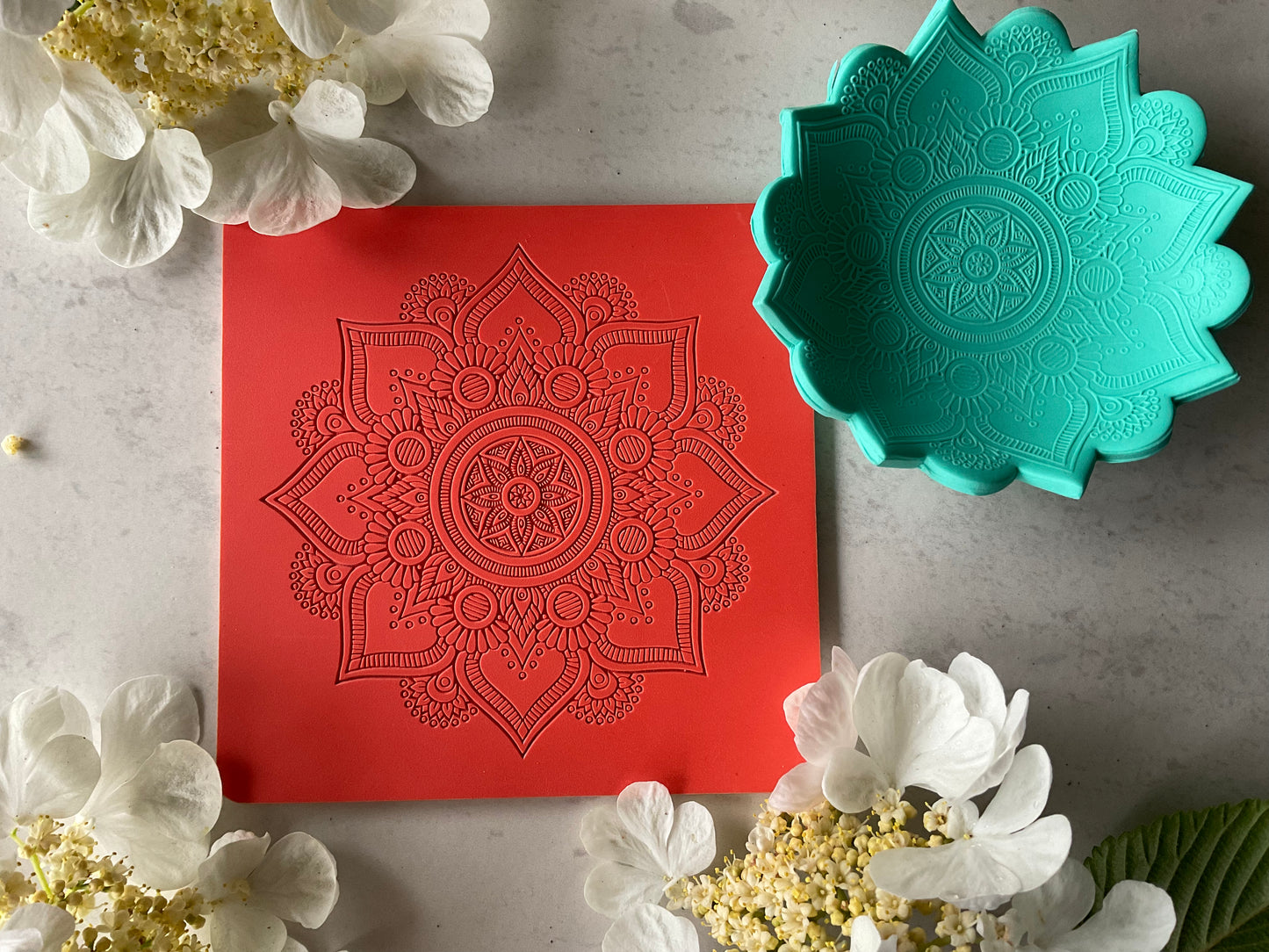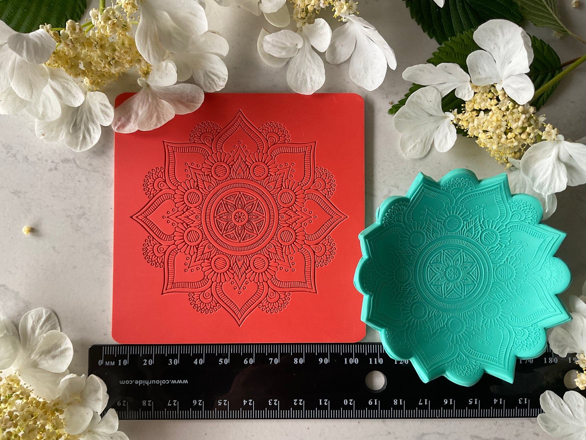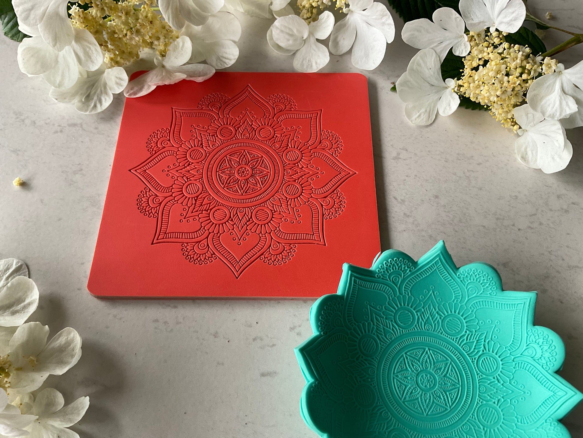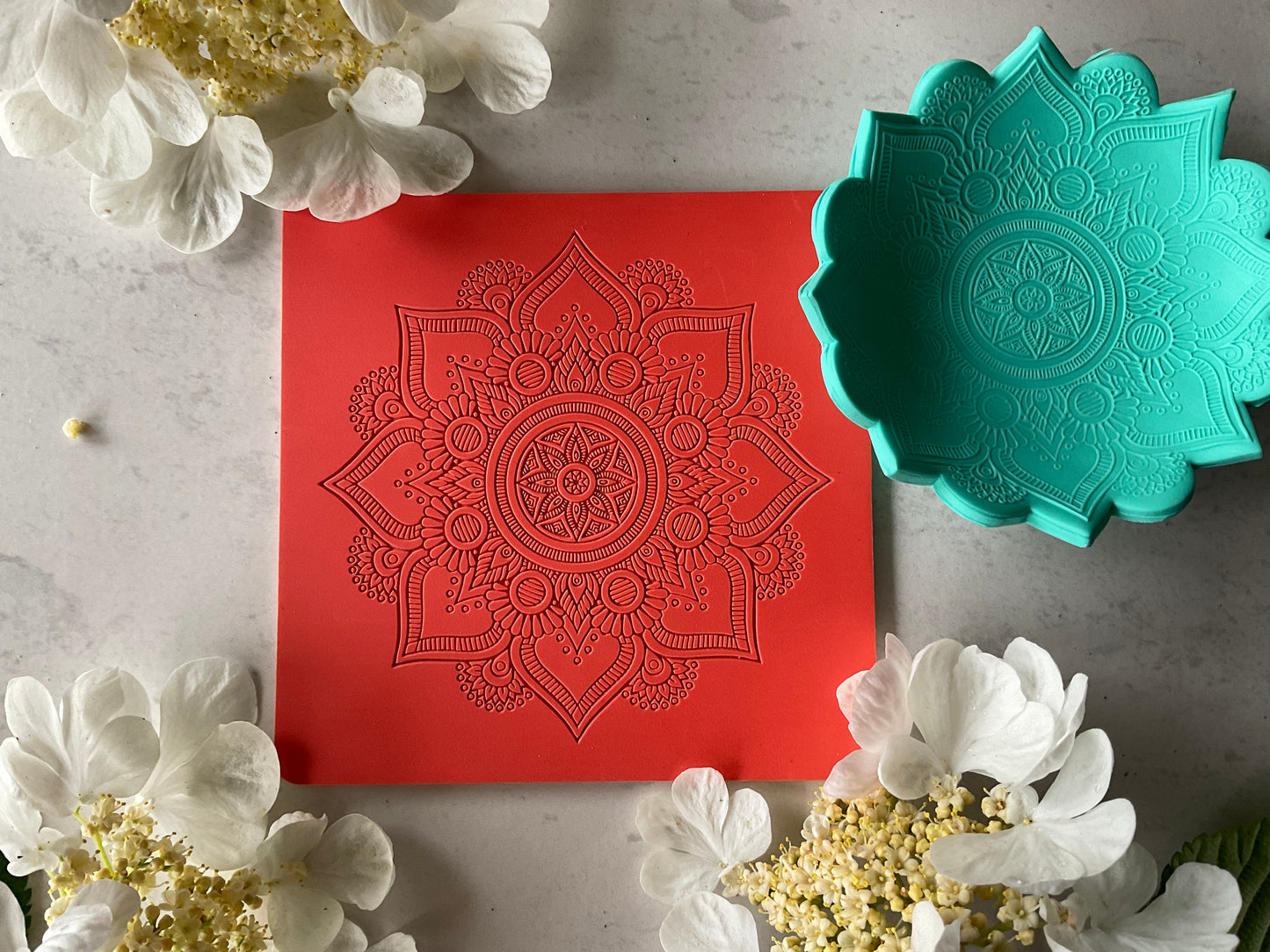 This Intricate Mandala Texture will fit inside your existing trinket and décor cutters from My Clay Co for the intricate mandala silkscreen and the amazing round décor cutter!