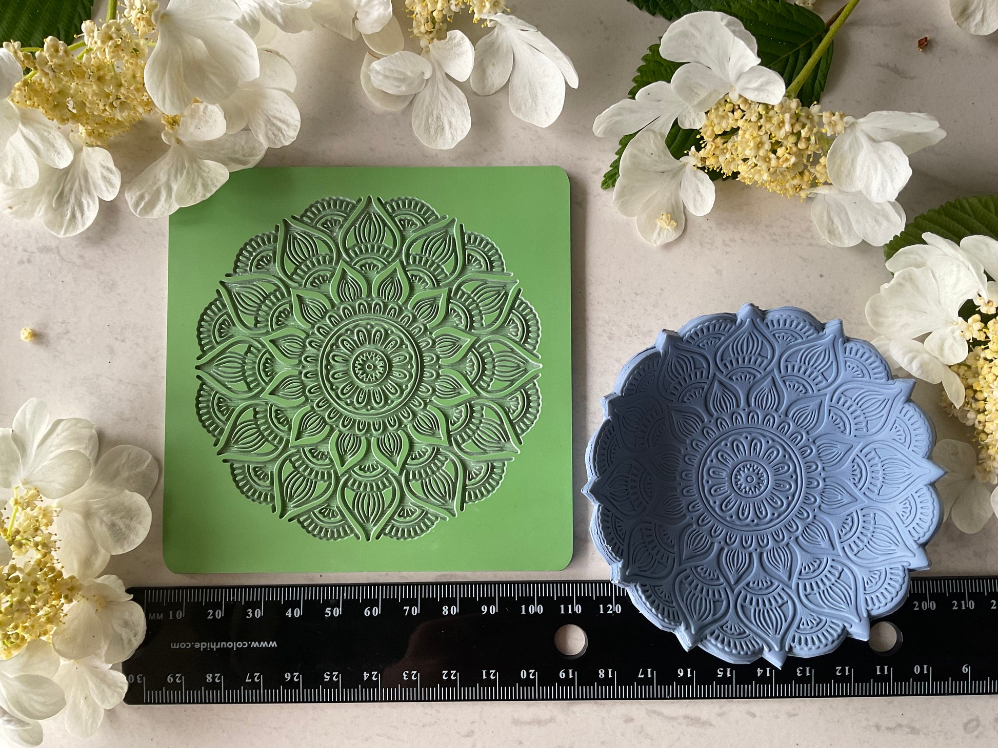This Mandala Texture will fit inside your existing trinket and décor cutters from My Clay Co for the mandala silkscreen and the amazing round décor cutter!