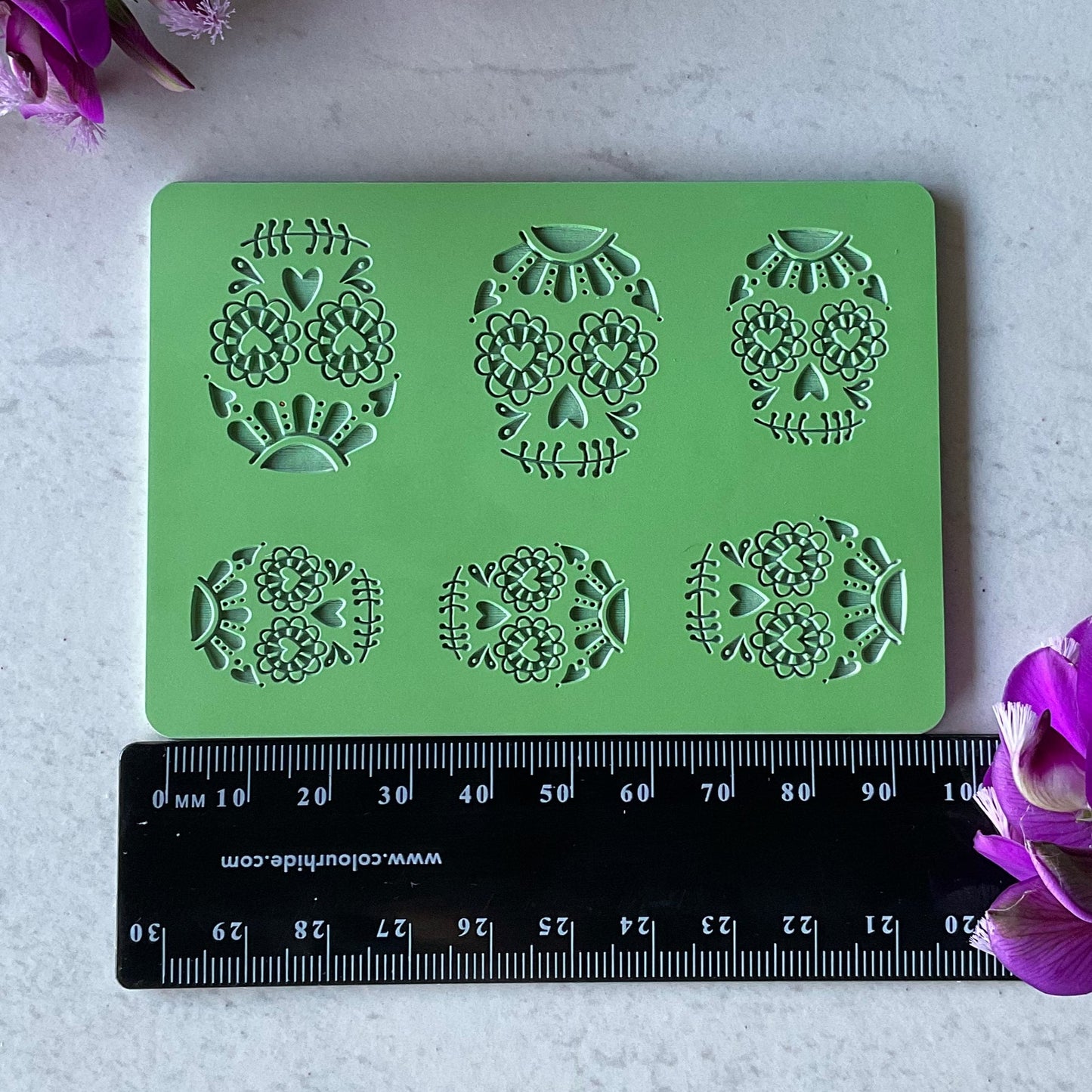 Create your own unique Calaveras Sugar Skulls with Coral Cockatoo's Sugar Skull Love Stitches Texture Mat! Perfectly designed to match My Clay Cos Skull cutters (25mm, 30mm, 35mm), this texture mat will help you take your polymer clay-crafting to new heights. Make your own pairs of matching skulls and show off your own style! Already have your amazing skull cutters from My Clay Co get the texture mat on its own or with the cutters!! Make it your own style with the addition of micas, glitters and foil or with the addition of small flowers from one of our Mini Silicone Flower Molds!!