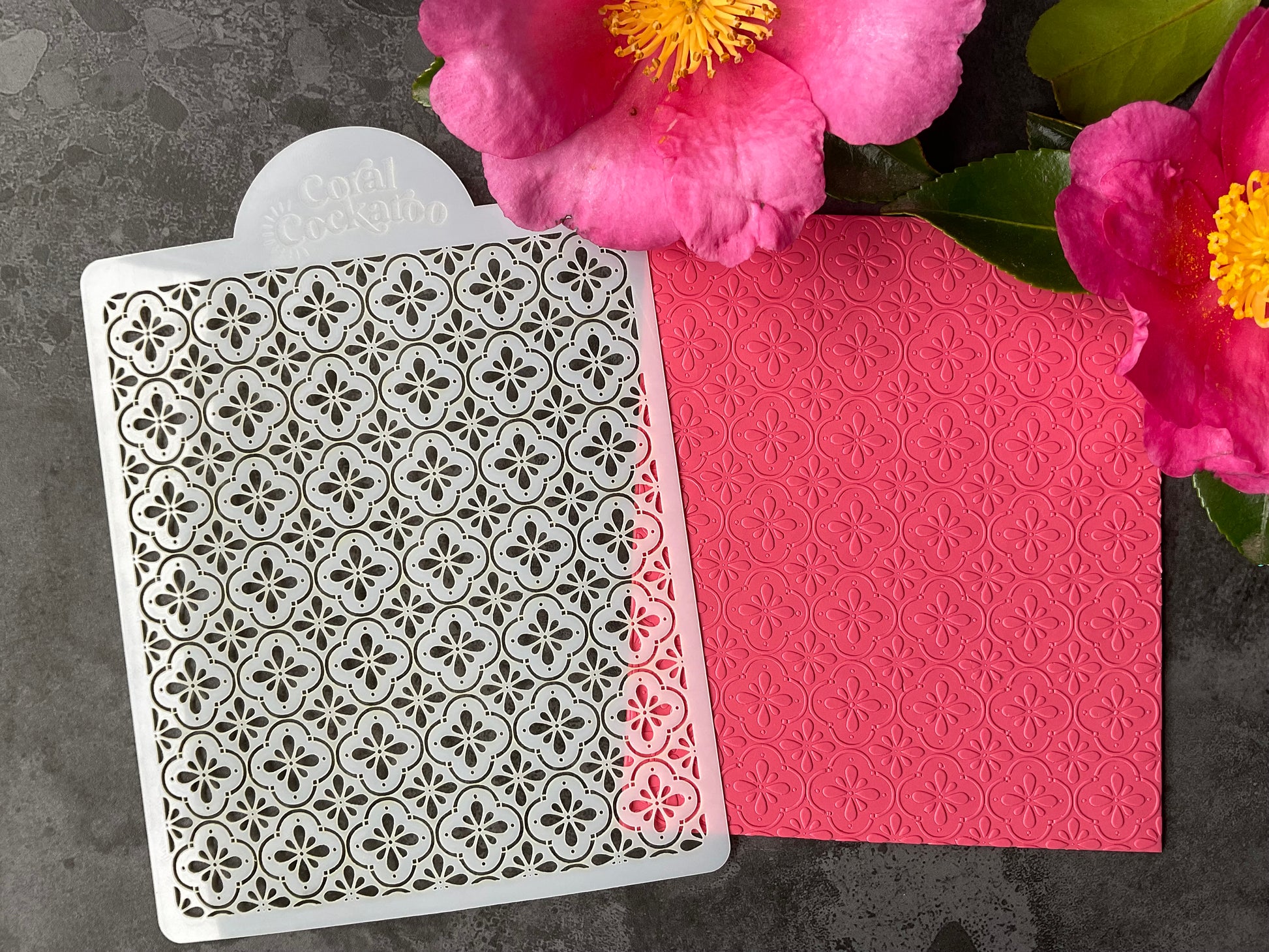 Place the stencil on top of your polymer clay, apply some pressure with a roller so you start to get an embossing effect, it doesn’t matter which side you use 😊. Apply your colour in the form of acrylic paint (or experiment with micas!) gently cover the design in paint across the stencil with an old card or sponge, lift up the stencil by gently starting with the bottom right hand corner and and move in a diagonal direction slowly allowing the clay the separate from the stencil. Wash the stencil gently in cool water with a small amount of gentle hand soap or gently use a wet wipe. It is important to note that some paints and micas with heavy pigment may stain your stencil, this will not affect its use. Once rinsed, allow to dry and then it is ready to be used again!