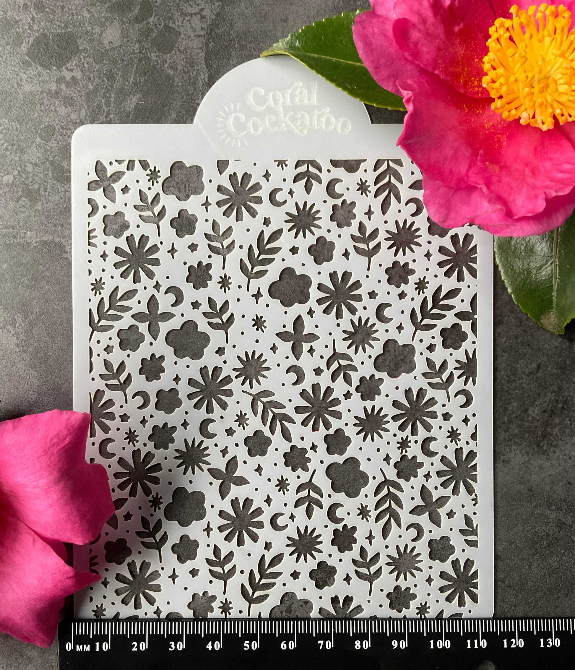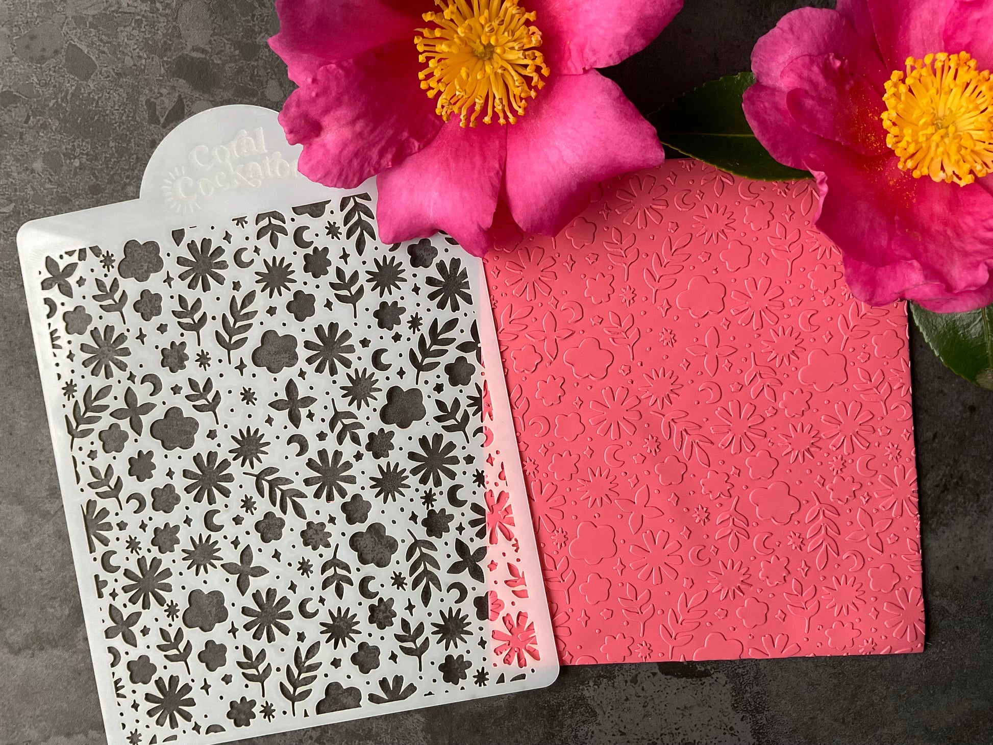 Place the stencil on top of your polymer clay, apply some pressure with a roller so you start to get an embossing effect, it doesn’t matter which side you use 😊. Apply your colour in the form of acrylic paint (or experiment with micas!) gently cover the design in paint across the stencil with an old card or sponge, lift up the stencil by gently starting with the bottom right hand corner and and move in a diagonal direction slowly allowing the clay the separate from the stencil. Wash the stencil gently in cool water with a small amount of gentle hand soap or gently use a wet wipe. It is important to note that some paints and micas with heavy pigment may stain your stencil, this will not affect its use. Once rinsed, allow to dry and then it is ready to be used again!