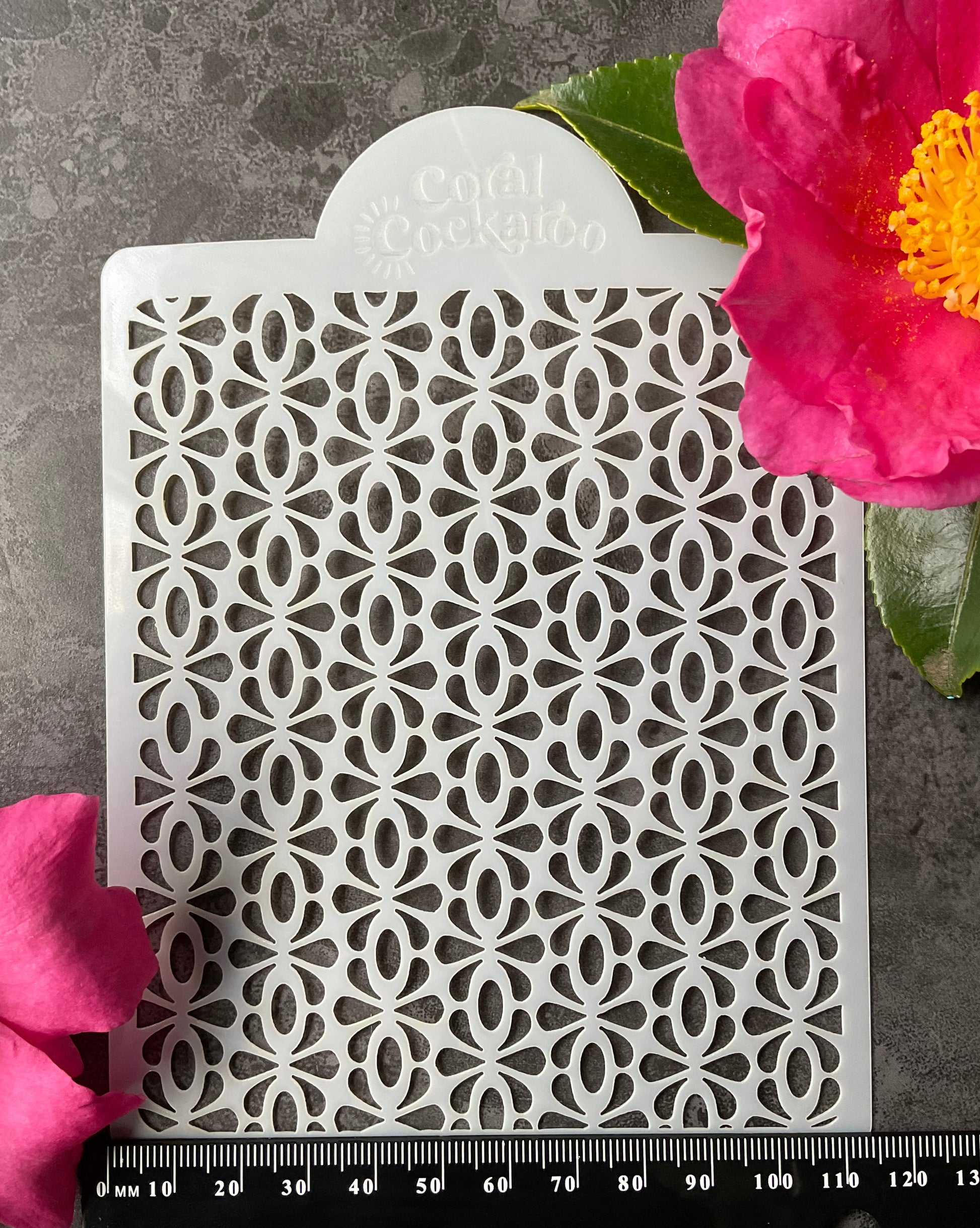 Place the stencil on top of your polymer clay, apply some pressure with a roller so you start to get an embossing effect, it doesn’t matter which side you use 😊. Apply your colour in the form of acrylic paint (or experiment with micas!) gently cover the design in paint across the stencil with an old card or sponge, lift up the stencil by gently starting with the bottom right hand corner and and move in a diagonal direction slowly allowing the clay the separate from the stencil. Wash the stencil gently in cool water with a small amount of gentle hand soap or gently use a wet wipe. It is important to note that some paints and micas with heavy pigment may stain your stencil, this will not affect its use. Once rinsed, allow to dry and then it is ready to be used again!