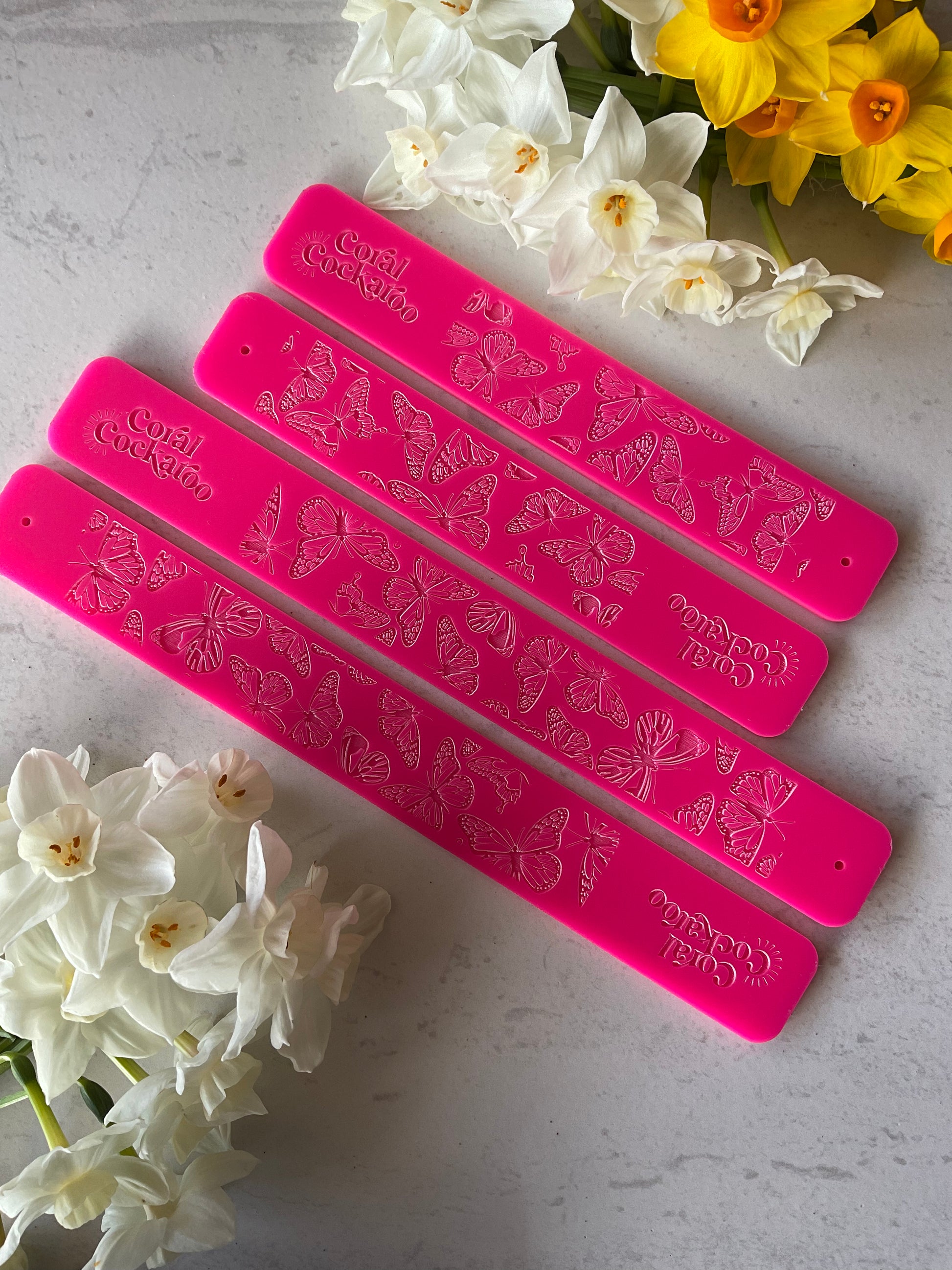 Make a statement with this *LIMITED EDITION* PINK Coral Cockatoo Magic Multi Tool - Mini Size, featuring a gorgeous ditsy butterfly design! Perfect for making earrings, its 3mm depth guide and butterfly engraving will help you achieve a professional-looking finish in no time. With an earring try on hole at the top, you'll be able to add the perfect finishing touch with ease! And you can use the edge or rounded corners to help you peel off the protective paper from all of your new Acrylic Stamps and findings!! Unleash your butterflies and let them flutter across your earrings and projects!