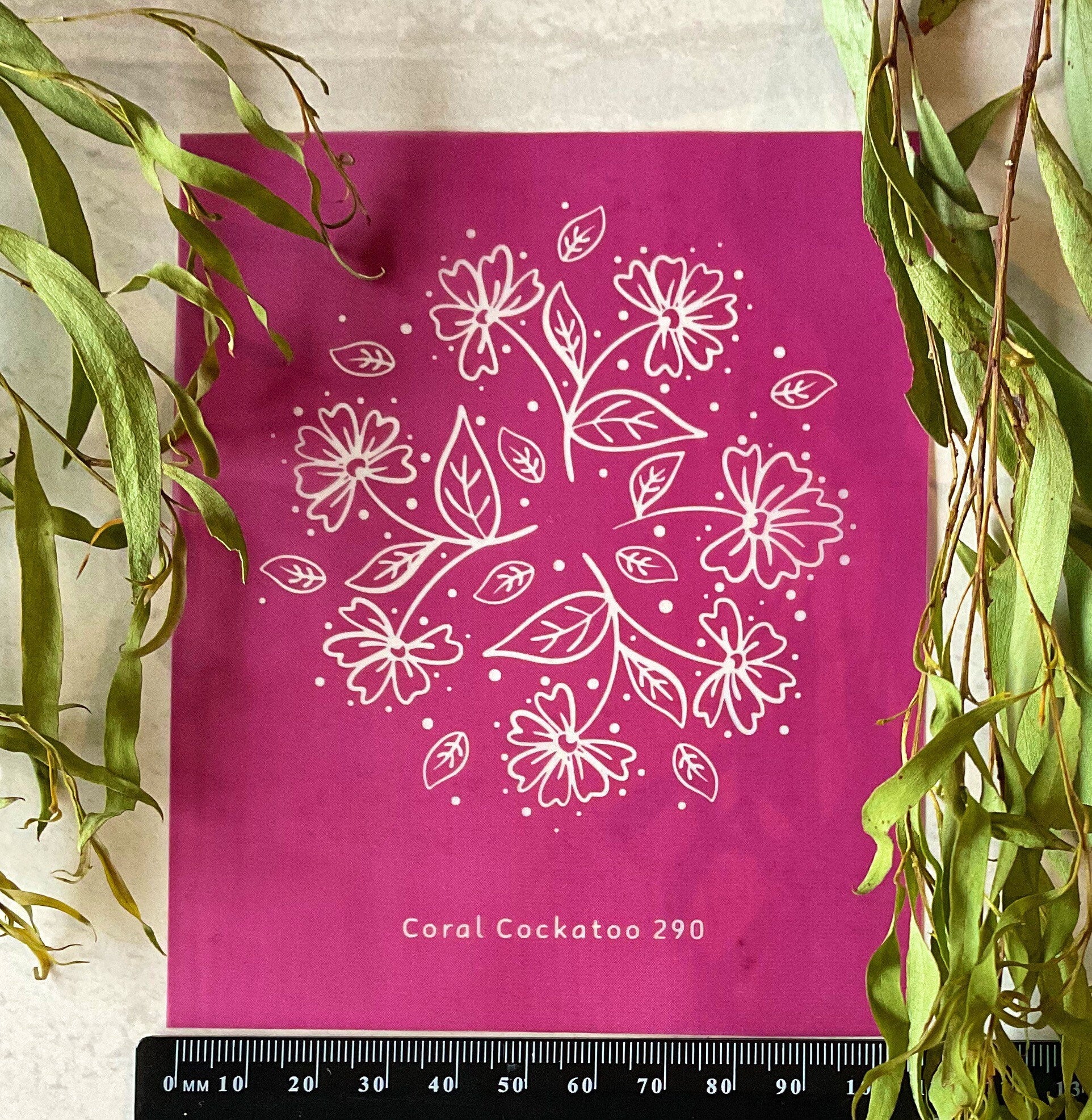 Important Info: Use your unique Coral Cockatoo Silkscreen for anything from earring and jewellery pieces to paper craft and card creations and more! The possibilities are limited only by your imagination and creativity!