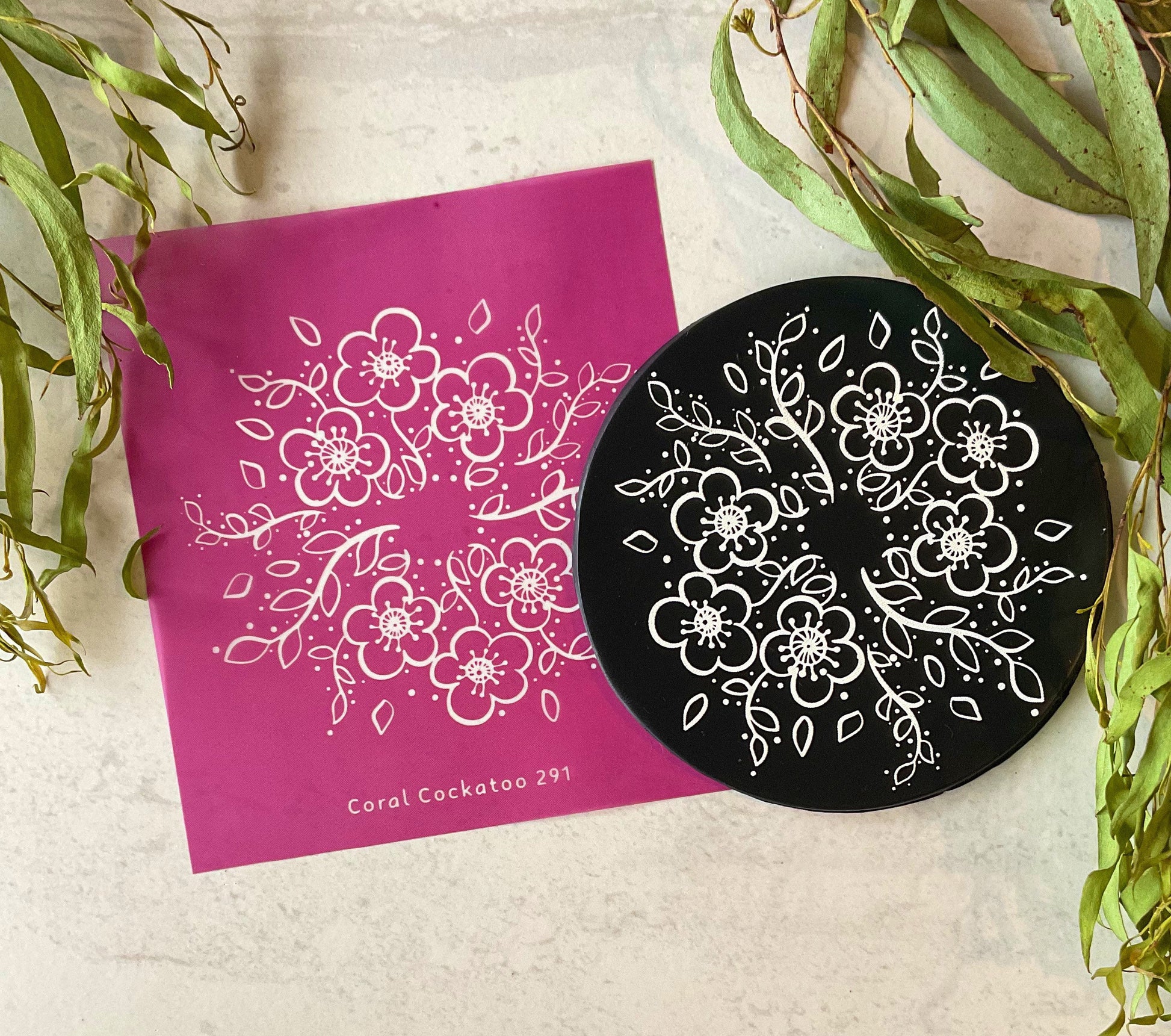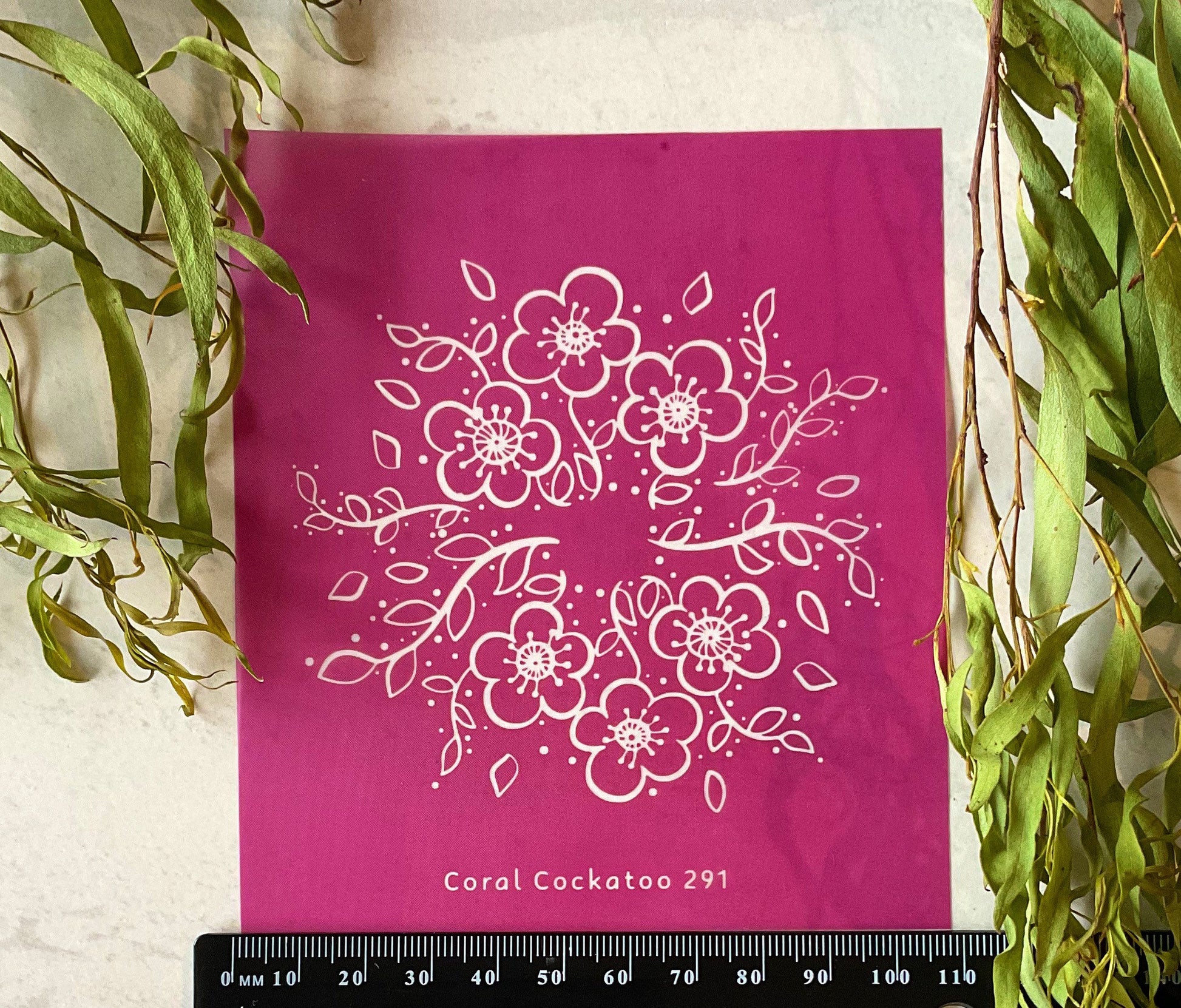 Important Info: Use your unique Coral Cockatoo Silkscreen for anything from earring and jewellery pieces to paper craft and card creations and more! The possibilities are limited only by your imagination and creativity!