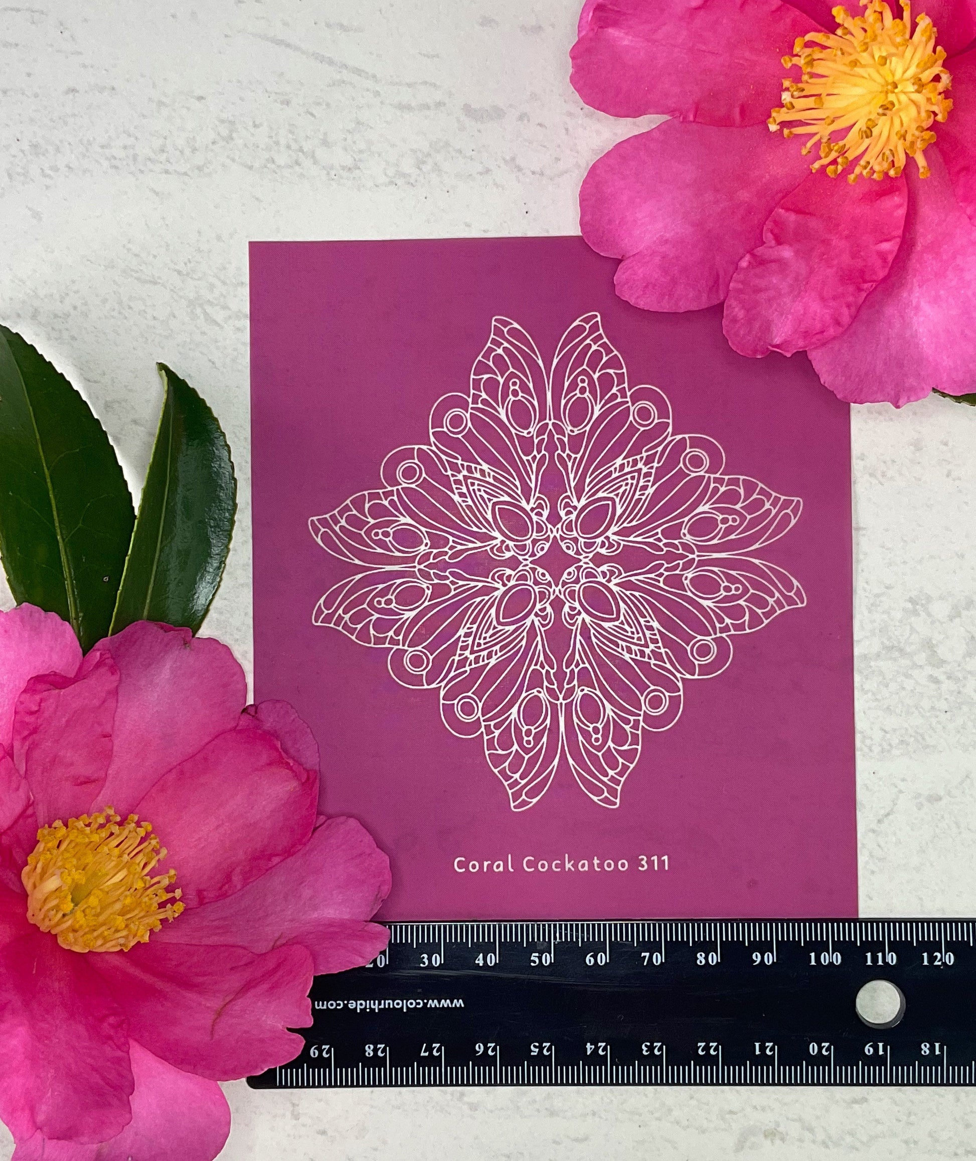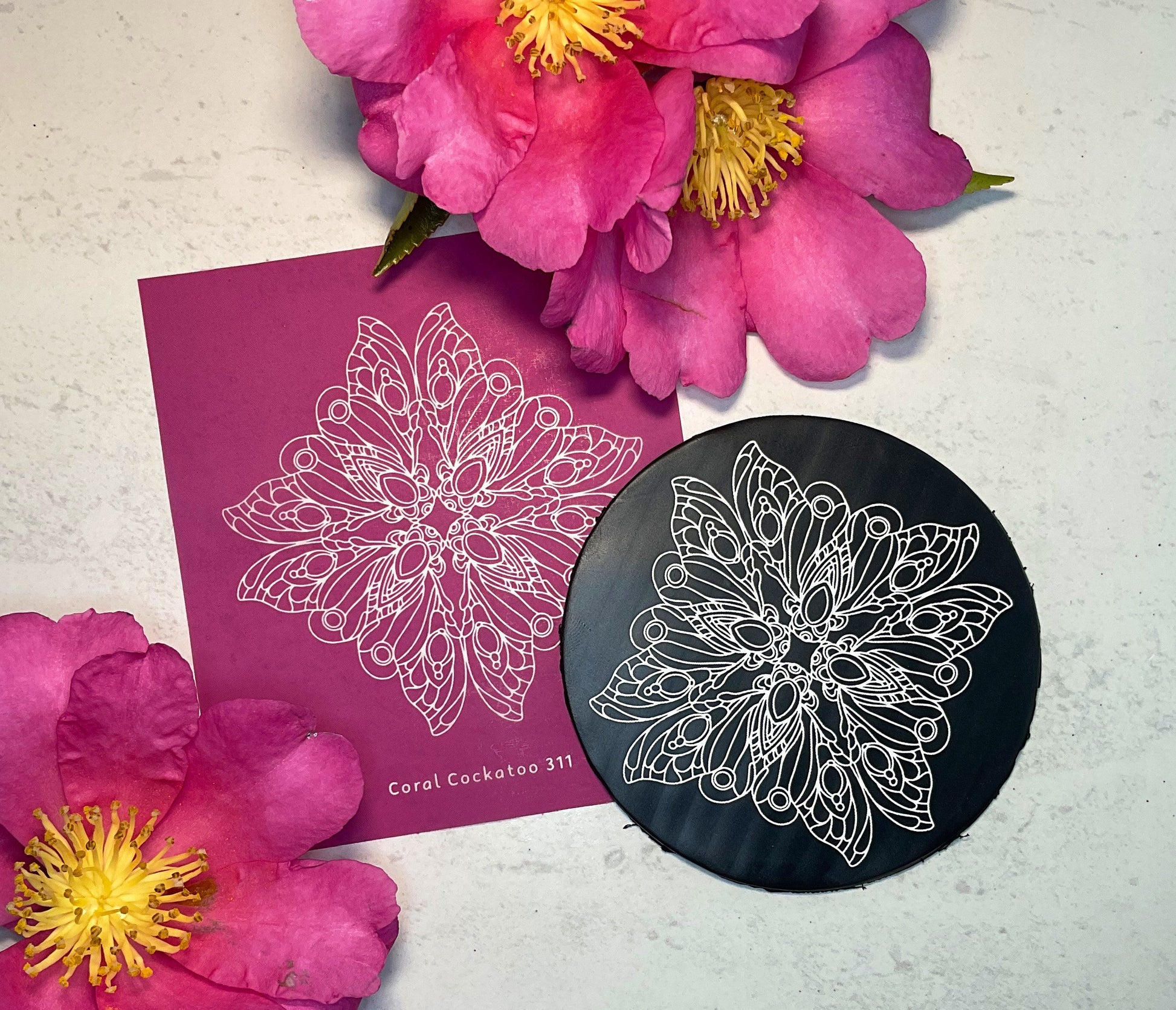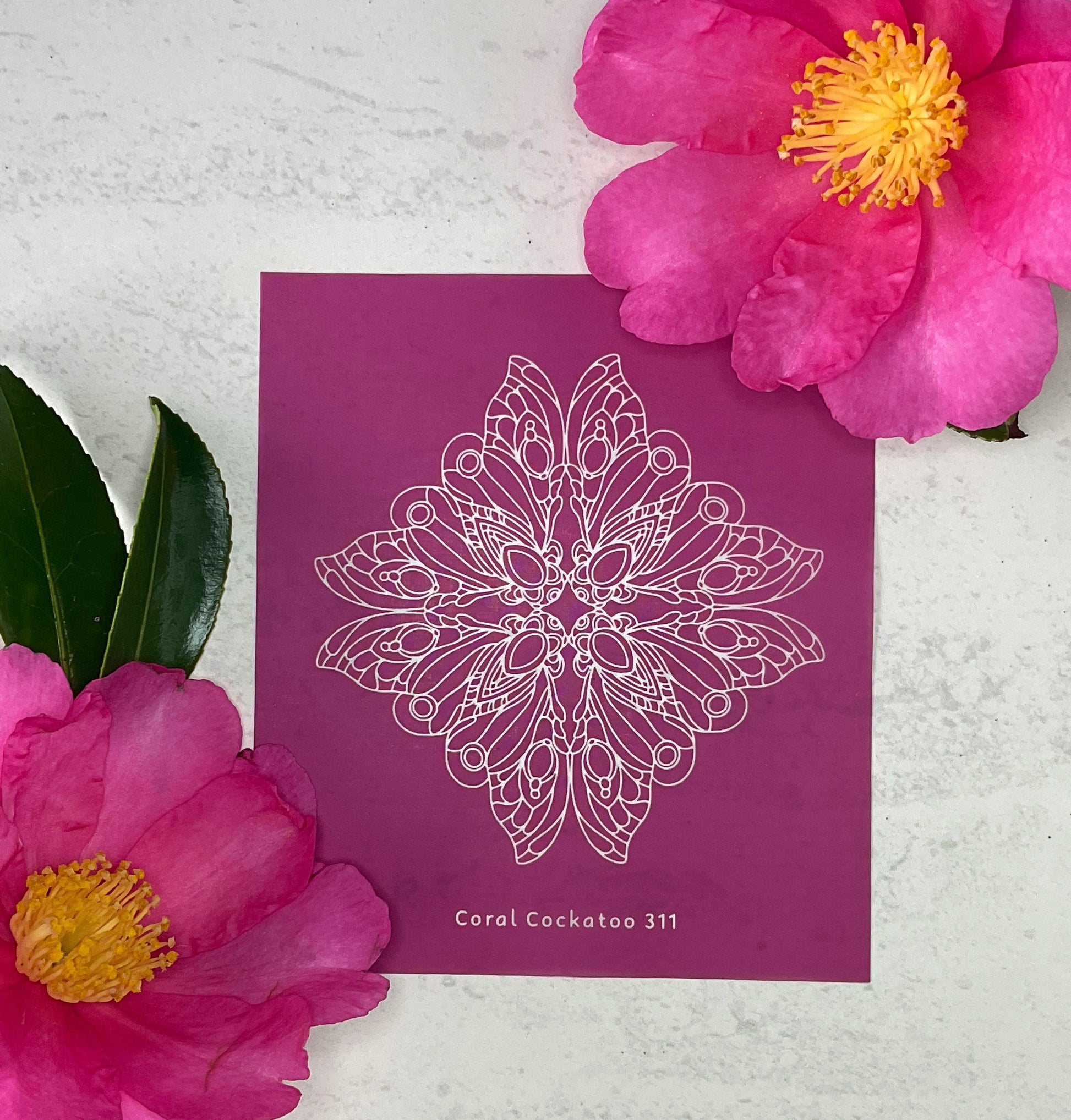 Important Info: Use your unique Coral Cockatoo Silkscreen for anything from earring and jewellery pieces to paper craft and card creations and more! The possibilities are limited only by your imagination and creativity!