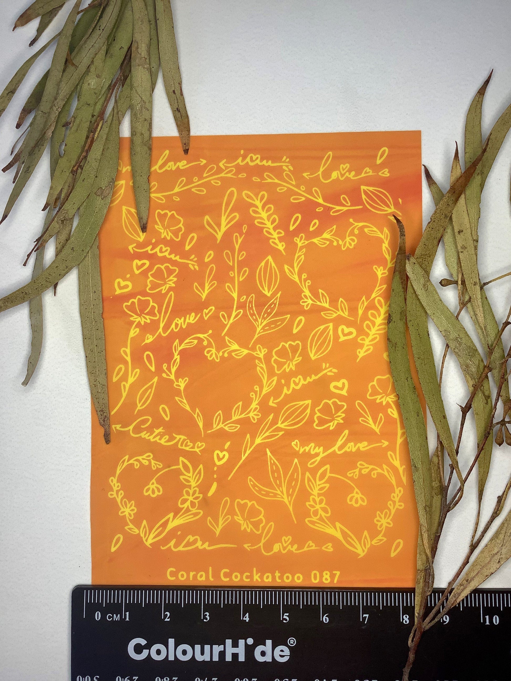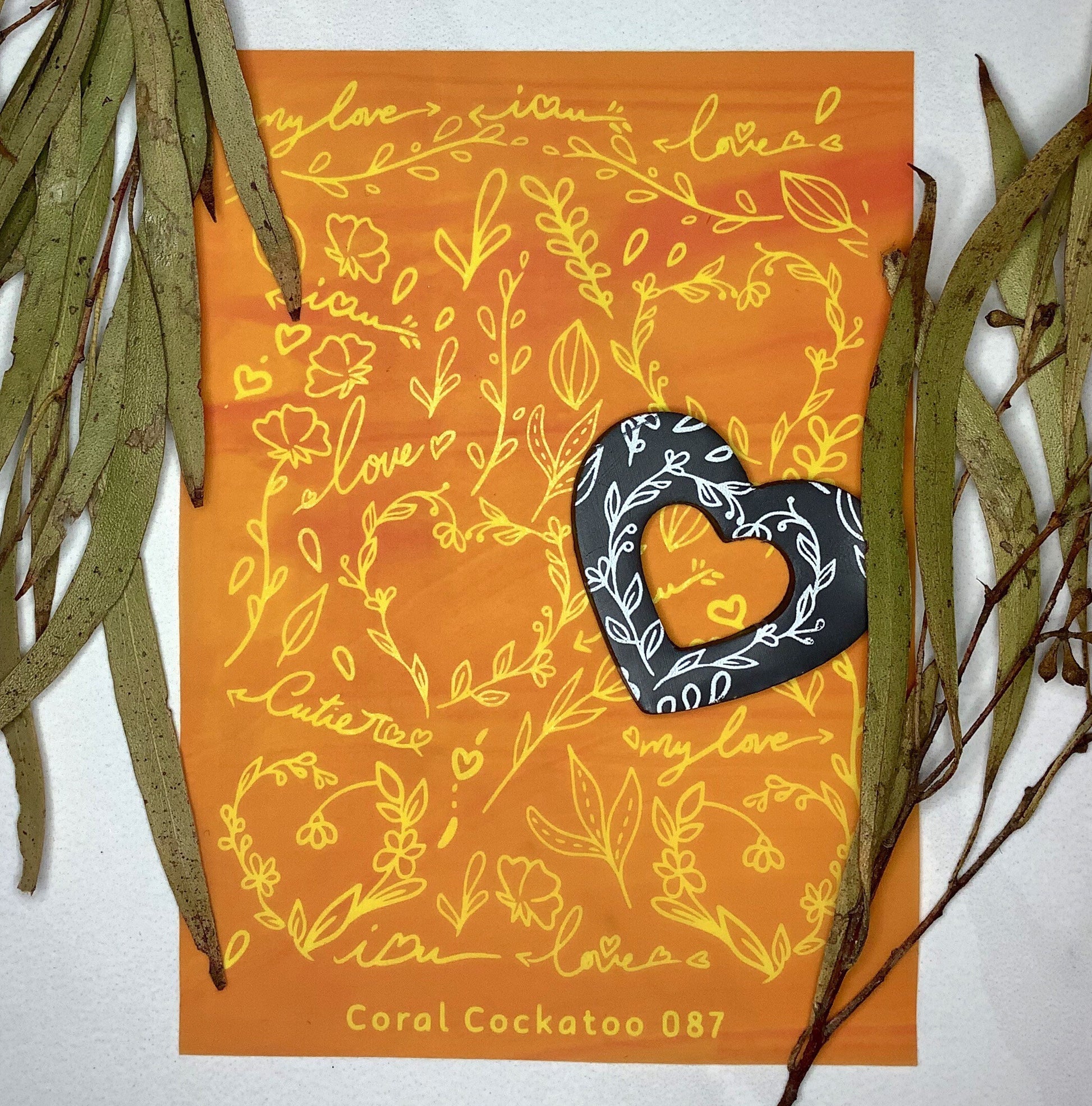 Important Info: Use your unique Coral Cockatoo Silkscreen for anything from earring and jewellery pieces to paper craft and card creations and more! The possibilities are limited only by your imagination and creativity!