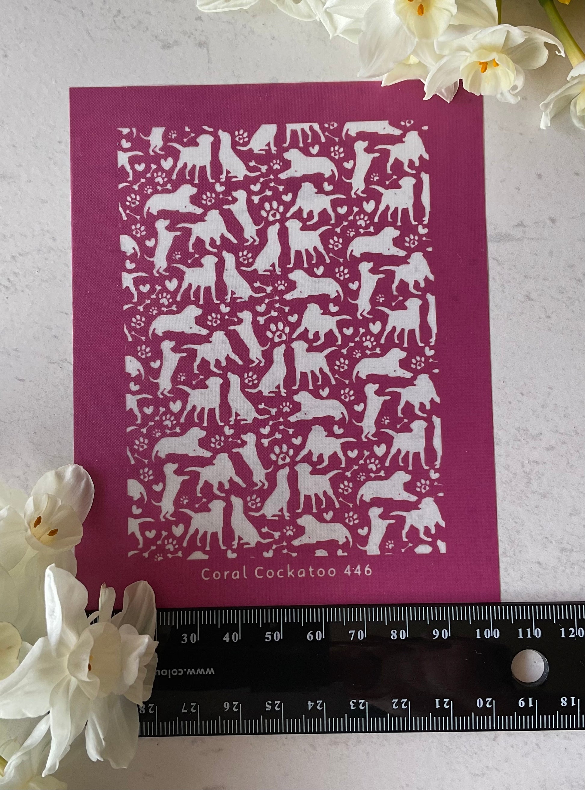How to use your new Coral Cockatoo Silkscreen: Place the silk screen on top of your polymer clay or other decorative surface, make sure you can read the Coral Cockatoo Logo, it is facing the right way up. Apply your colour in the form of a good quality Artists Acrylic paint, gently swipe the paint across the silkscreen with a squeegee, scraper or old card, hold the squeegee at a 45 degree angle and pull towards you gently, pulling the paint across the silk screen. Once adequately spread through the design, lift up the silk screen by gently starting with the bottom right hand corner.