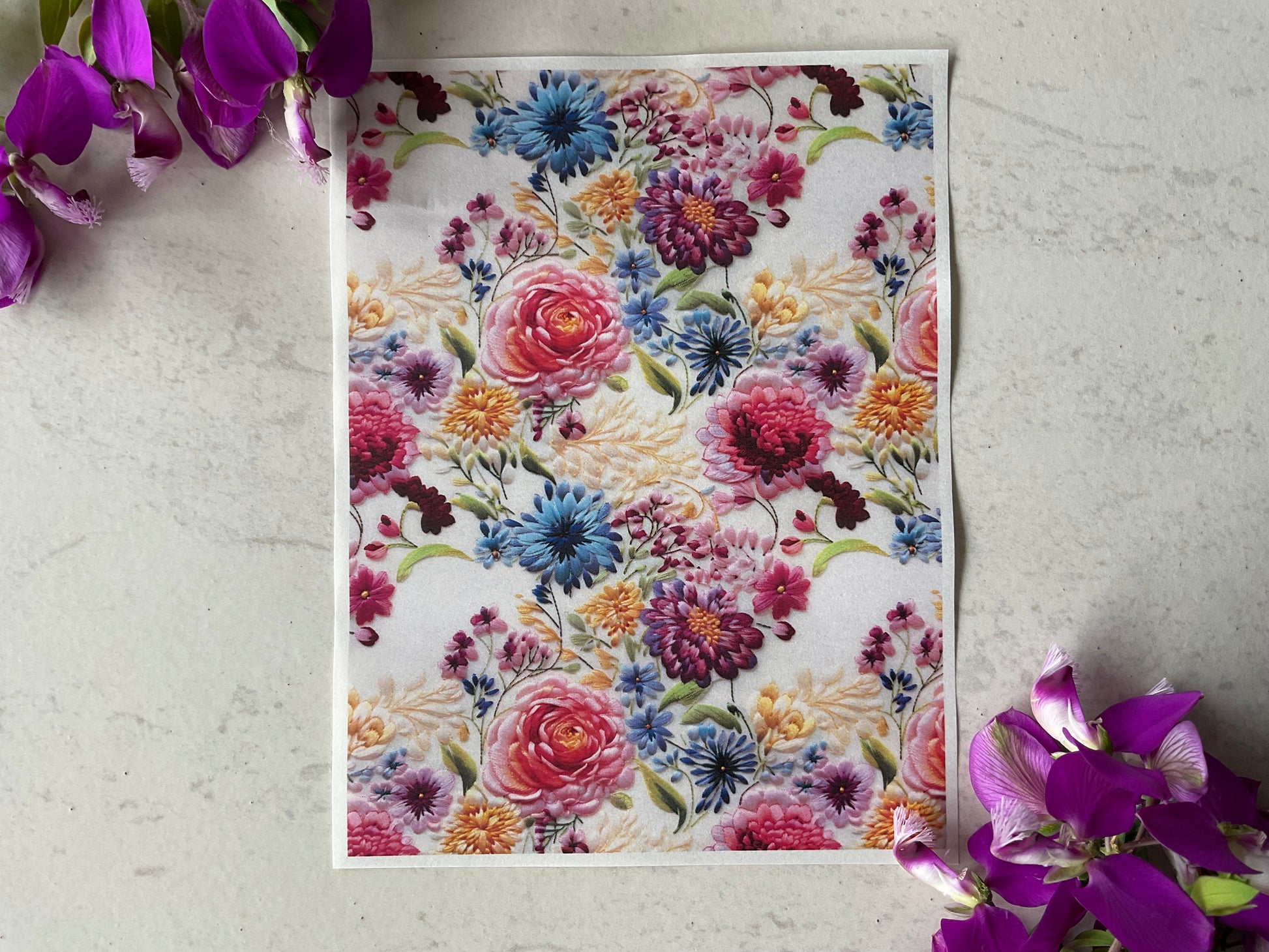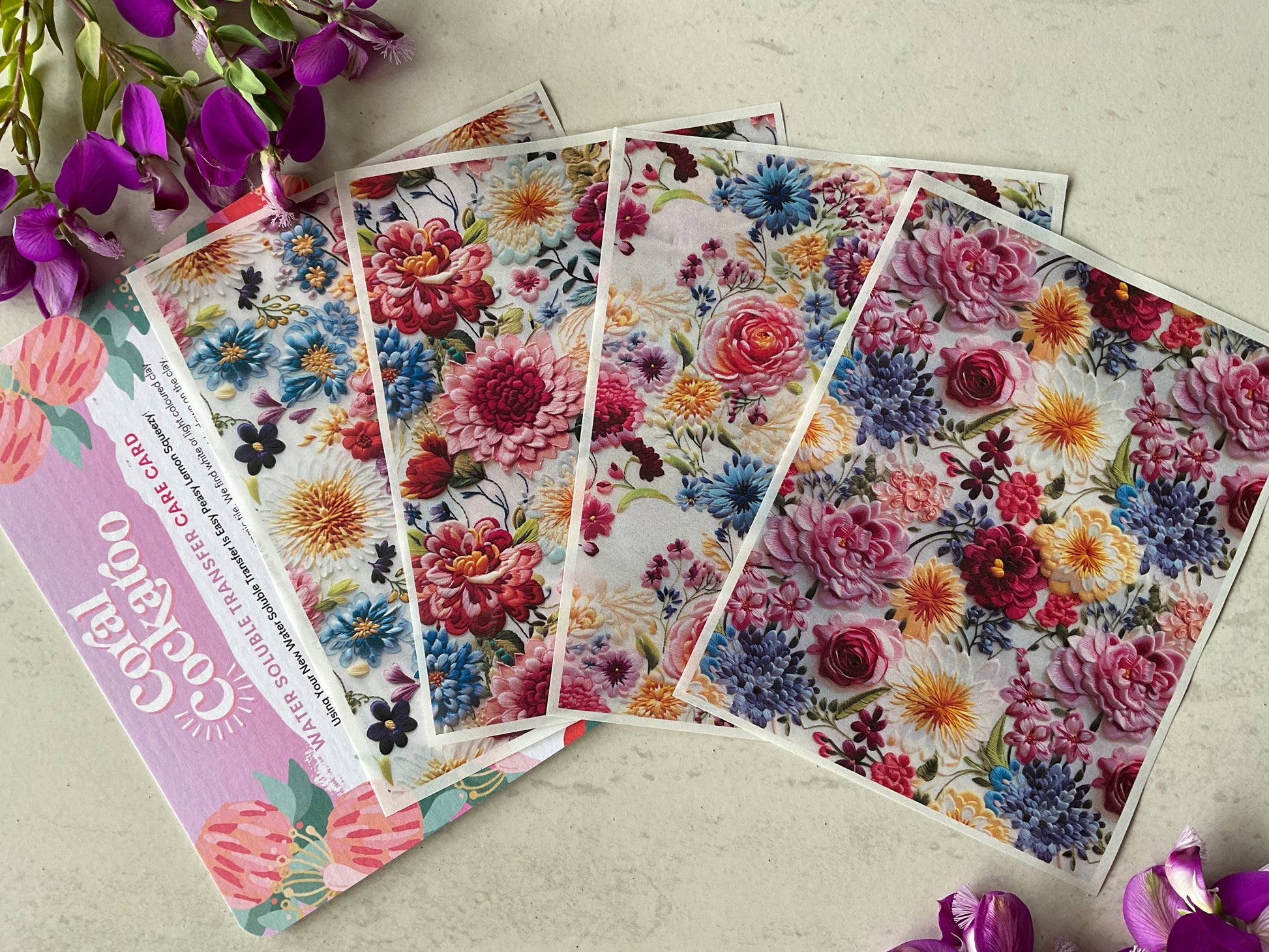 How to use your new Coloured Water Soluble Transfer: Condition your Polymer Clay well and roll onto a ceramic tile. We find white or light coloured clay gives the best crisp image transfer. Place the transfer design sheet image side down on the clay. Smooth over gently with your fingers or a roller to remove air bubbles. Leave the transfer on your Polymer Clay for 15 minutes. Place the entire clay slab under gently flowing water and the transfer paper will start to dissolve. You can gently use your fingers to remove the excess transfer paper but don’t worry, excess transfer fluff can be removed after baking. Gently pat with paper towel or leave to air dry. When dry cut your clay with your favourite cutters and bake as per Polymer Clay instructions. You may find colours vary slightly after baking depending on clay used and your baking process, we recommend tenting your pieces while baking to protect them.
