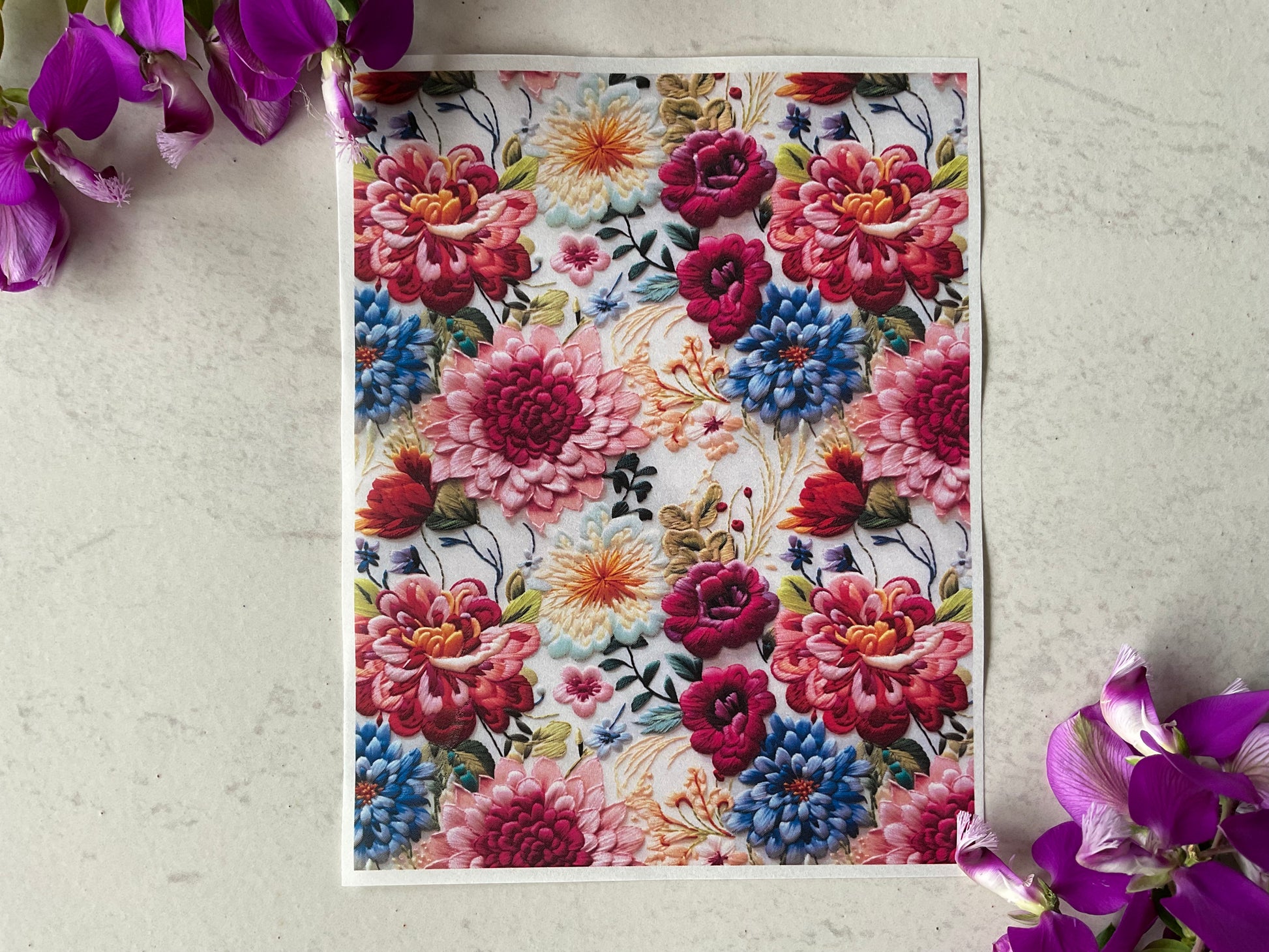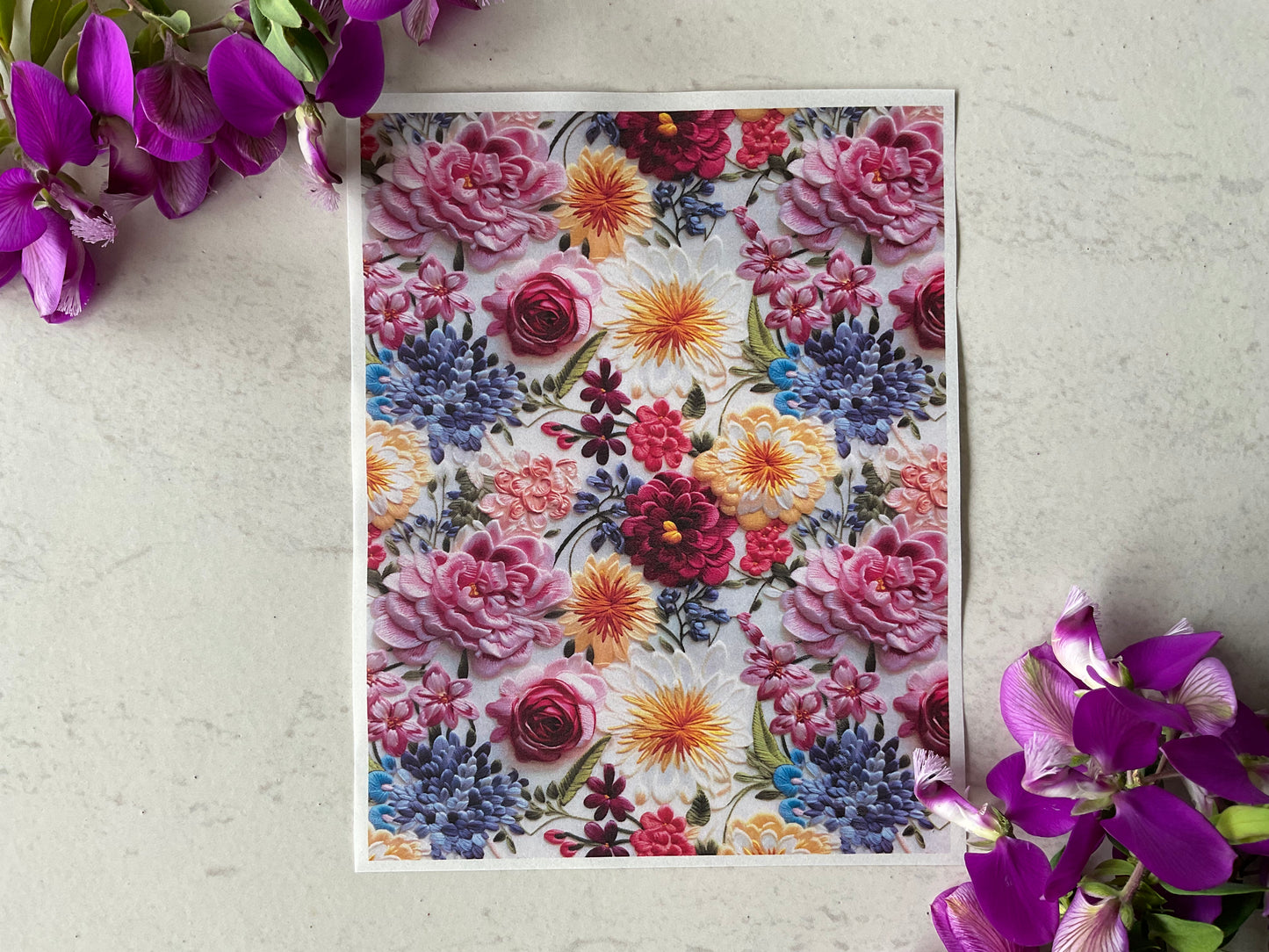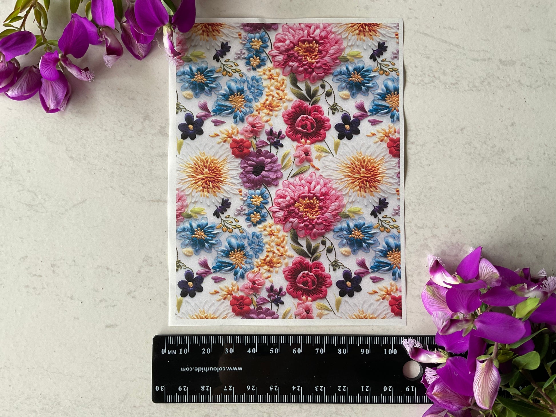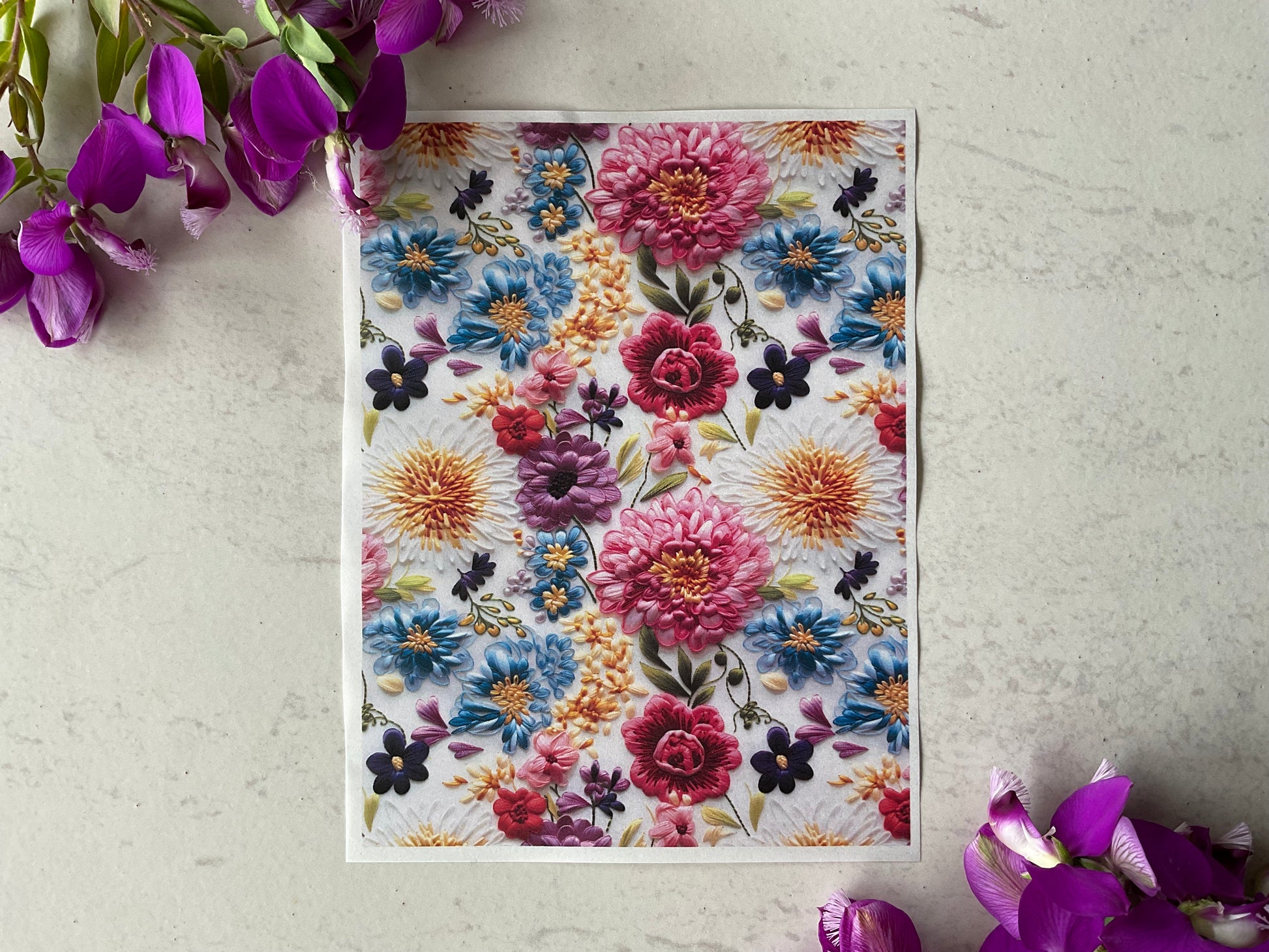 Embroidered Wildflowers Colour Water Soluble Transfer 014