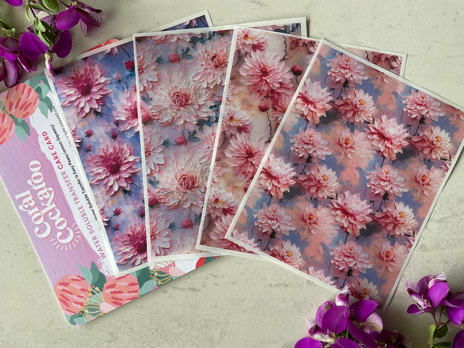 How to use your new Coloured Water Soluble Transfer: Condition your Polymer Clay well and roll onto a ceramic tile. We find white or light coloured clay gives the best crisp image transfer. Place the transfer design sheet image side down on the clay. Smooth over gently with your fingers or a roller to remove air bubbles. Leave the transfer on your Polymer Clay for 15 minutes. Place the entire clay slab under gently flowing water and the transfer paper will start to dissolve. You can gently use your fingers to remove the excess transfer paper but don’t worry, excess transfer fluff can be removed after baking. Gently pat with paper towel or leave to air dry. When dry cut your clay with your favourite cutters and bake as per Polymer Clay instructions. You may find colours vary slightly after baking depending on clay used and your baking process, we recommend tenting your pieces while baking to protect them.