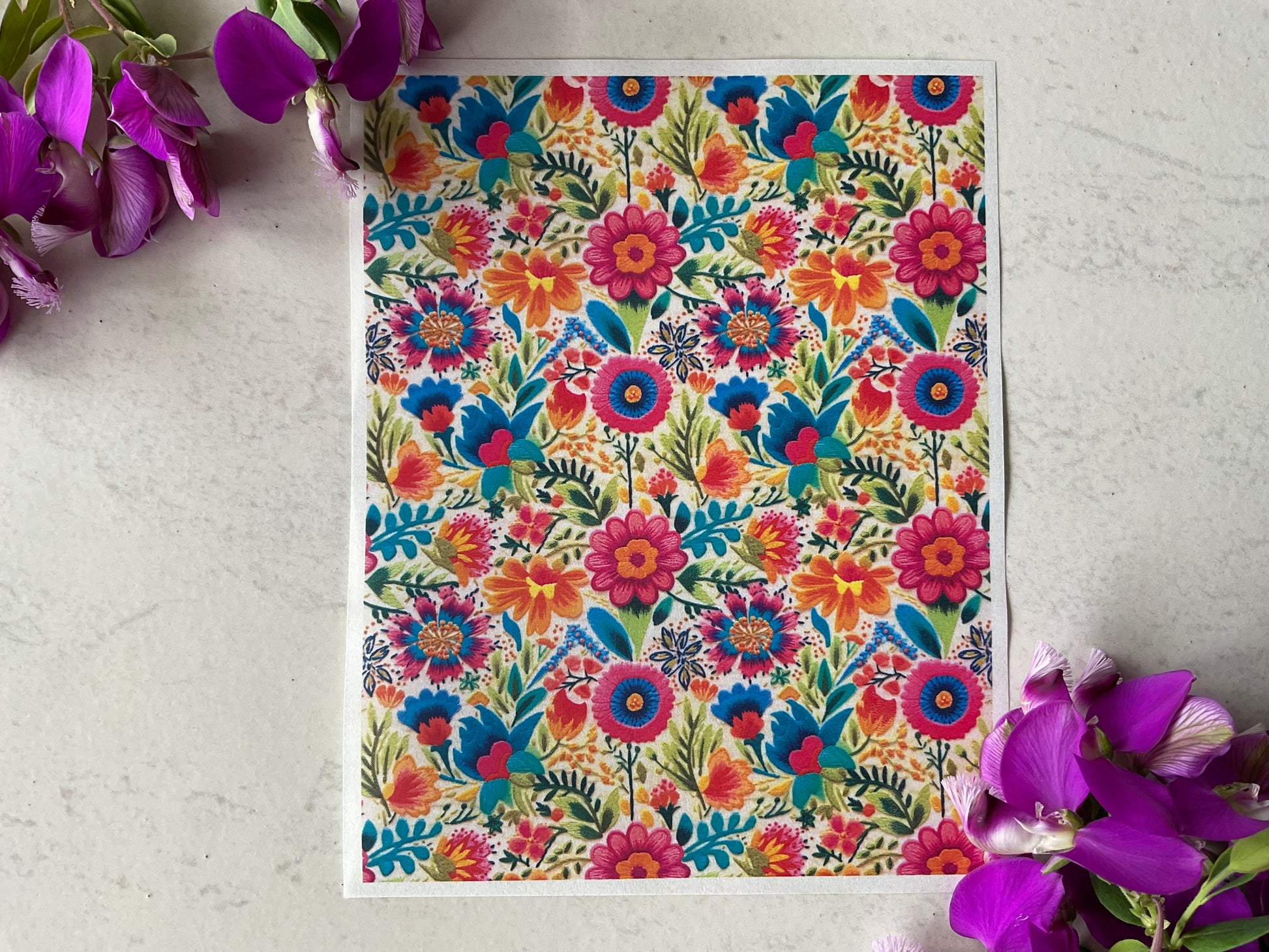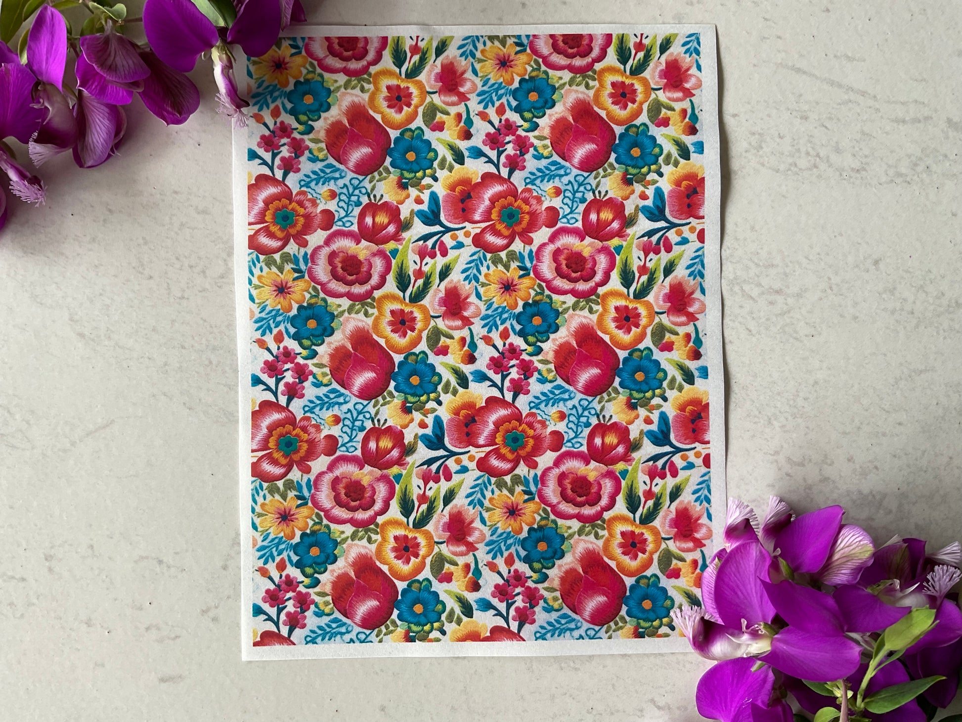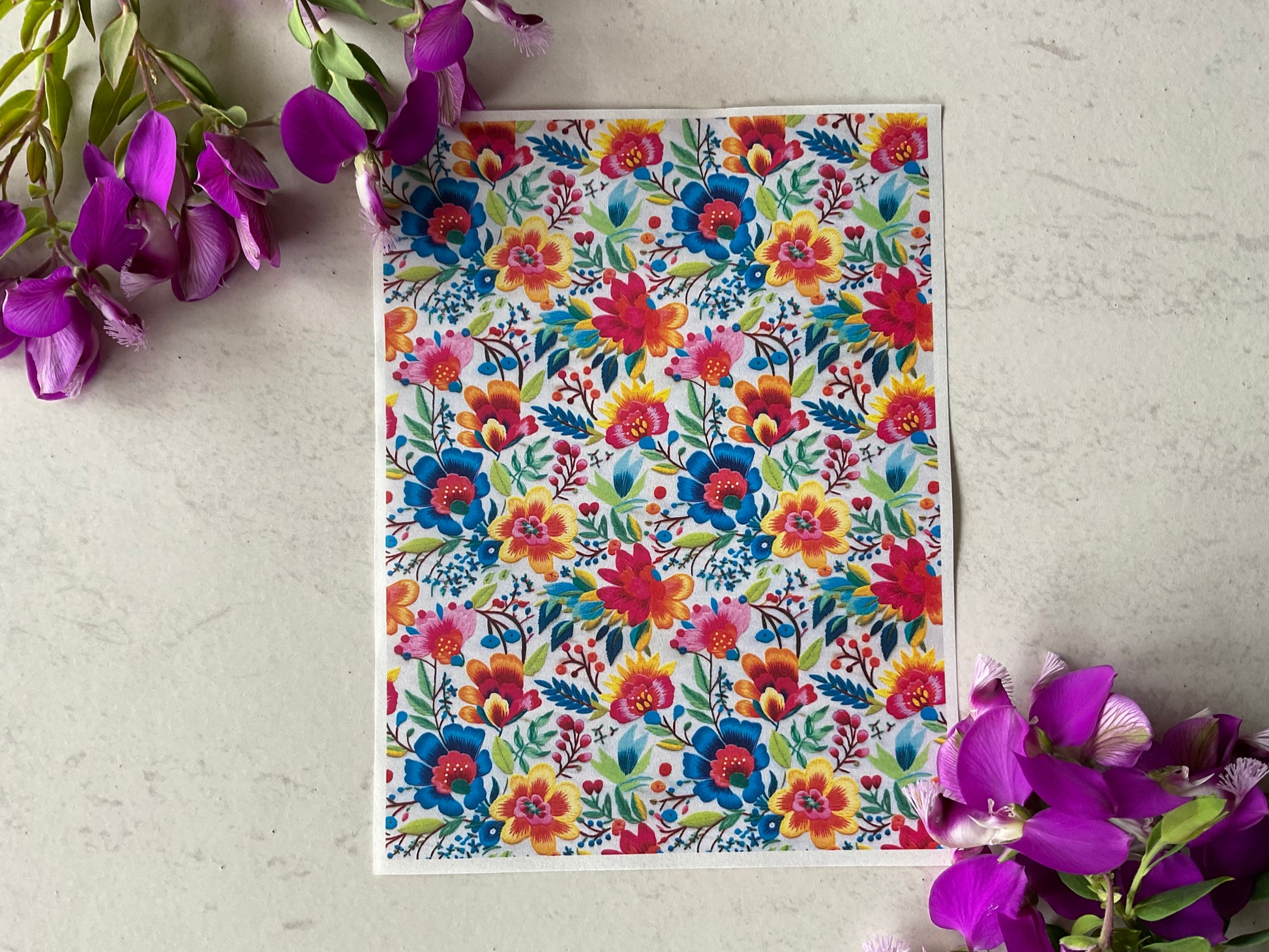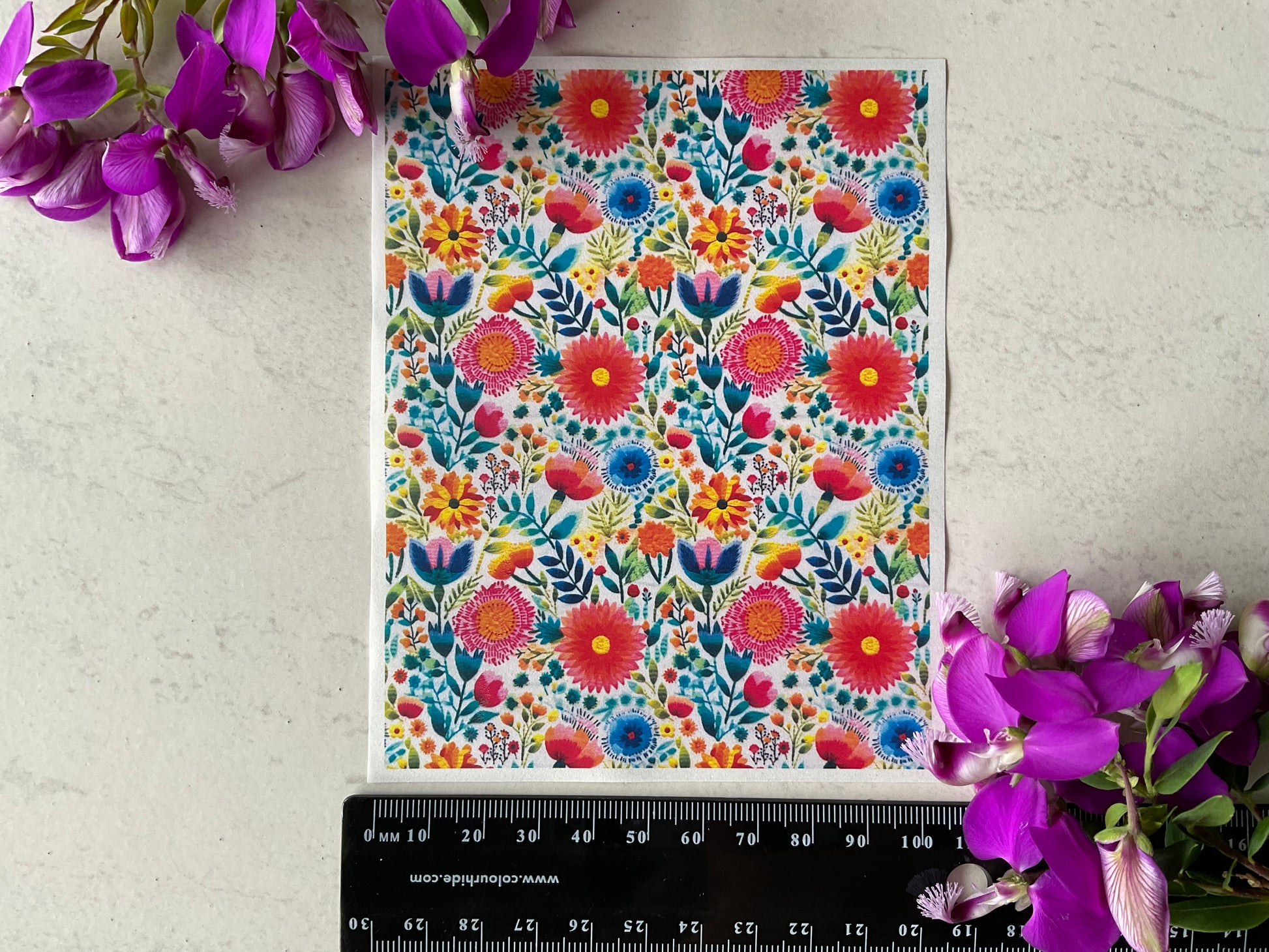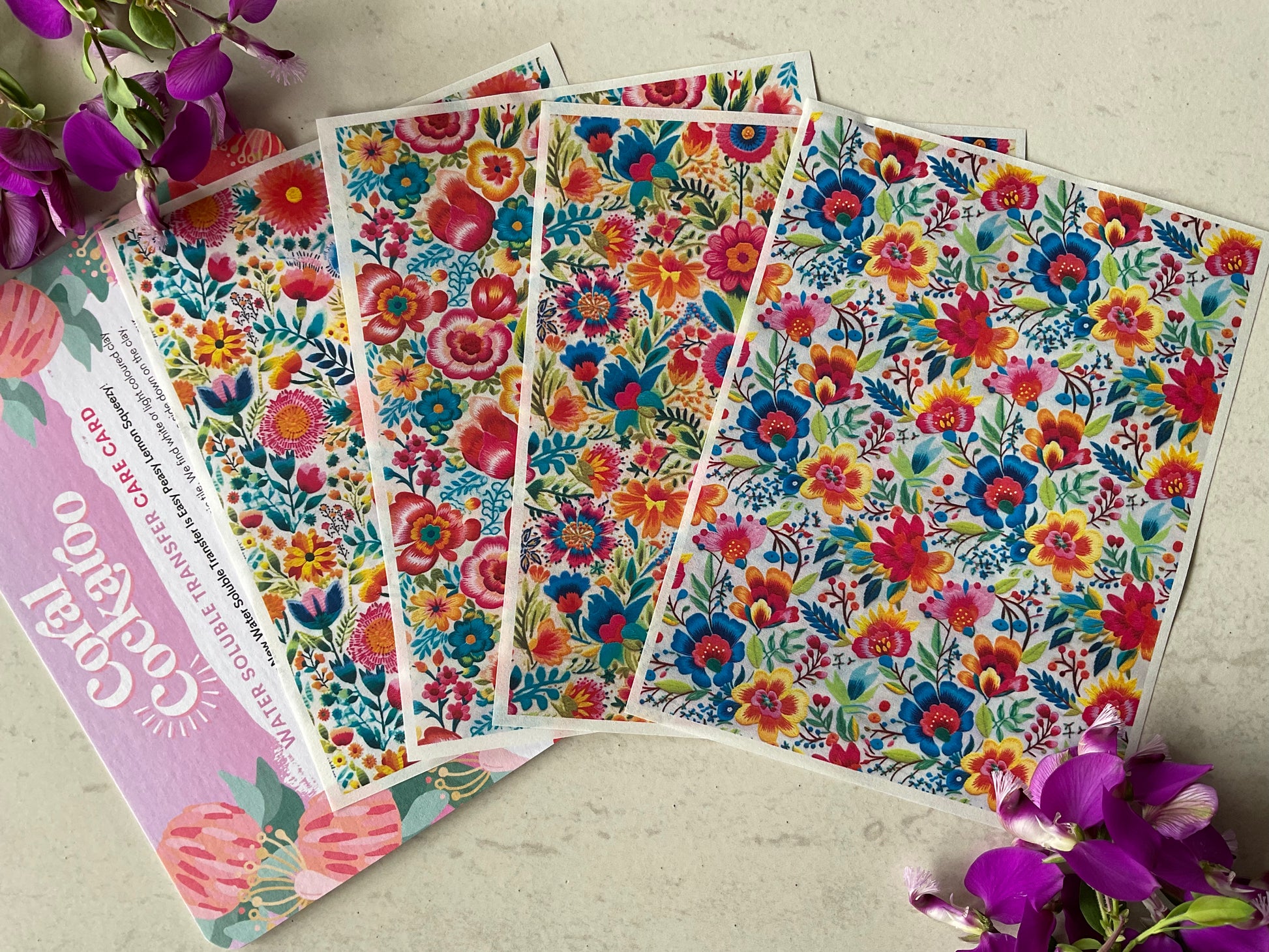 How to use your new Coloured Water Soluble Transfer: Condition your Polymer Clay well and roll onto a ceramic tile. We find white or light coloured clay gives the best crisp image transfer. Place the transfer design sheet image side down on the clay. Smooth over gently with your fingers or a roller to remove air bubbles. Leave the transfer on your Polymer Clay for 15 minutes. Place the entire clay slab under gently flowing water and the transfer paper will start to dissolve. You can gently use your fingers to remove the excess transfer paper but don’t worry, excess transfer fluff can be removed after baking. Gently pat with paper towel or leave to air dry. When dry cut your clay with your favourite cutters and bake as per Polymer Clay instructions. You may find colours vary slightly after baking depending on clay used and your baking process, we recommend tenting your pieces while baking to protect them.