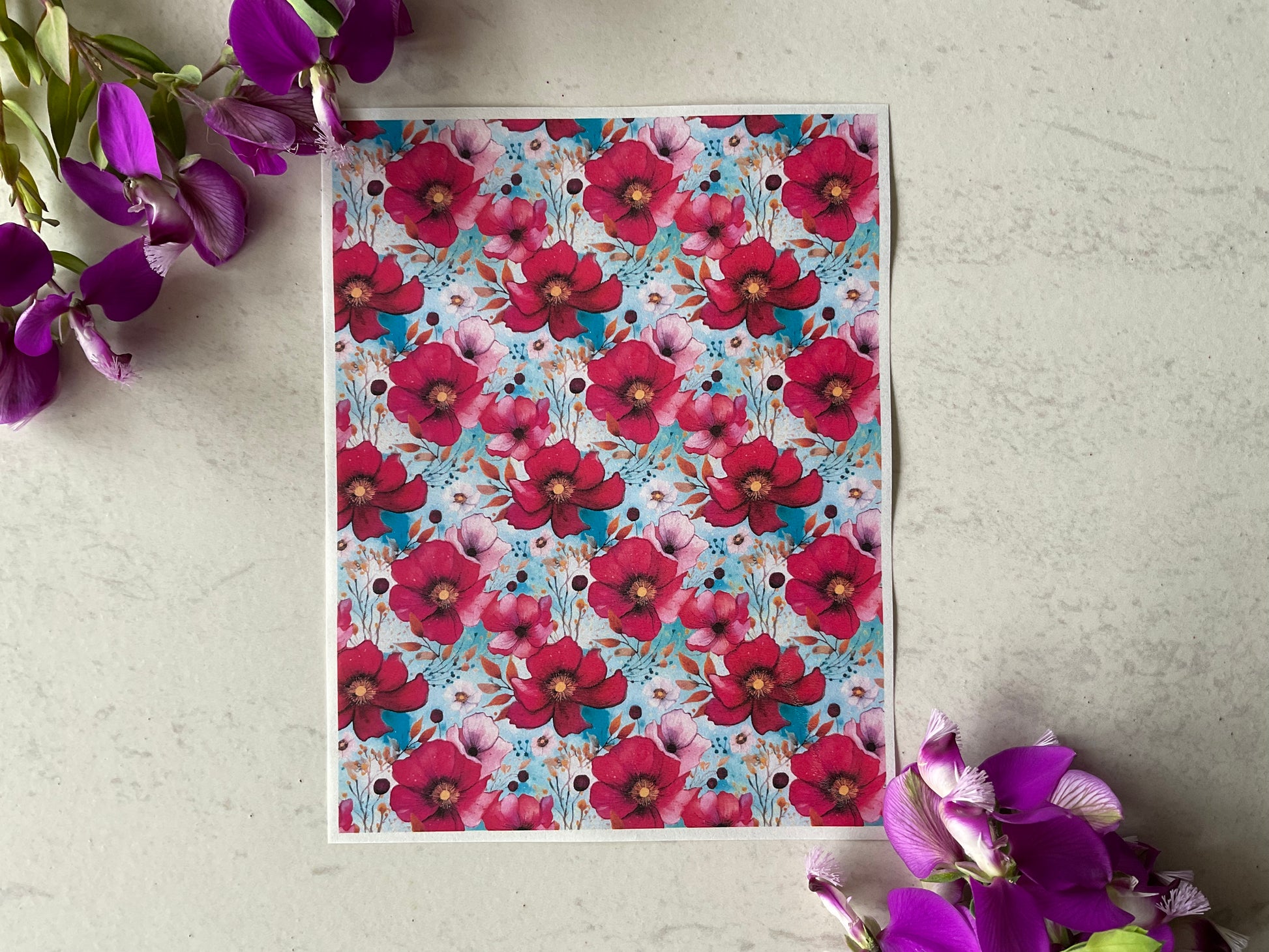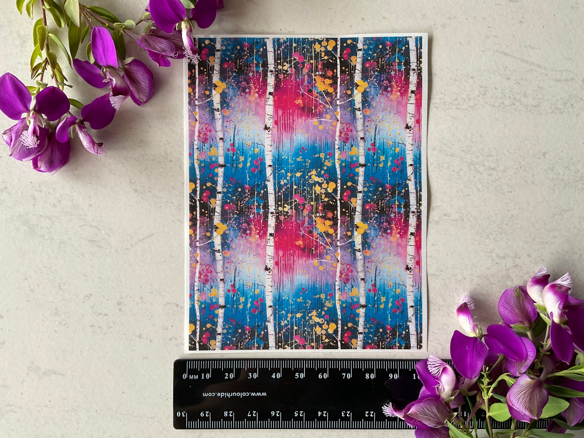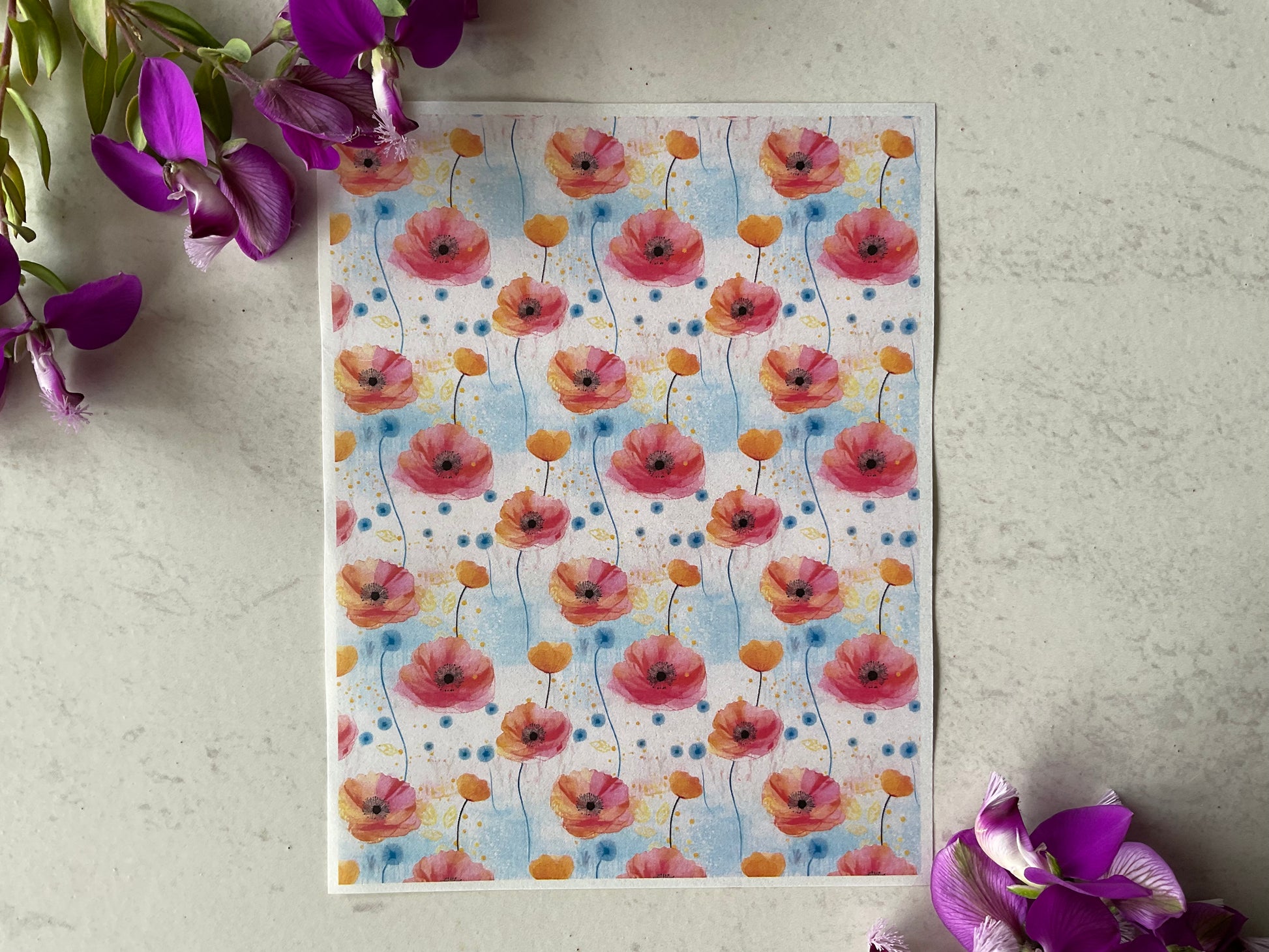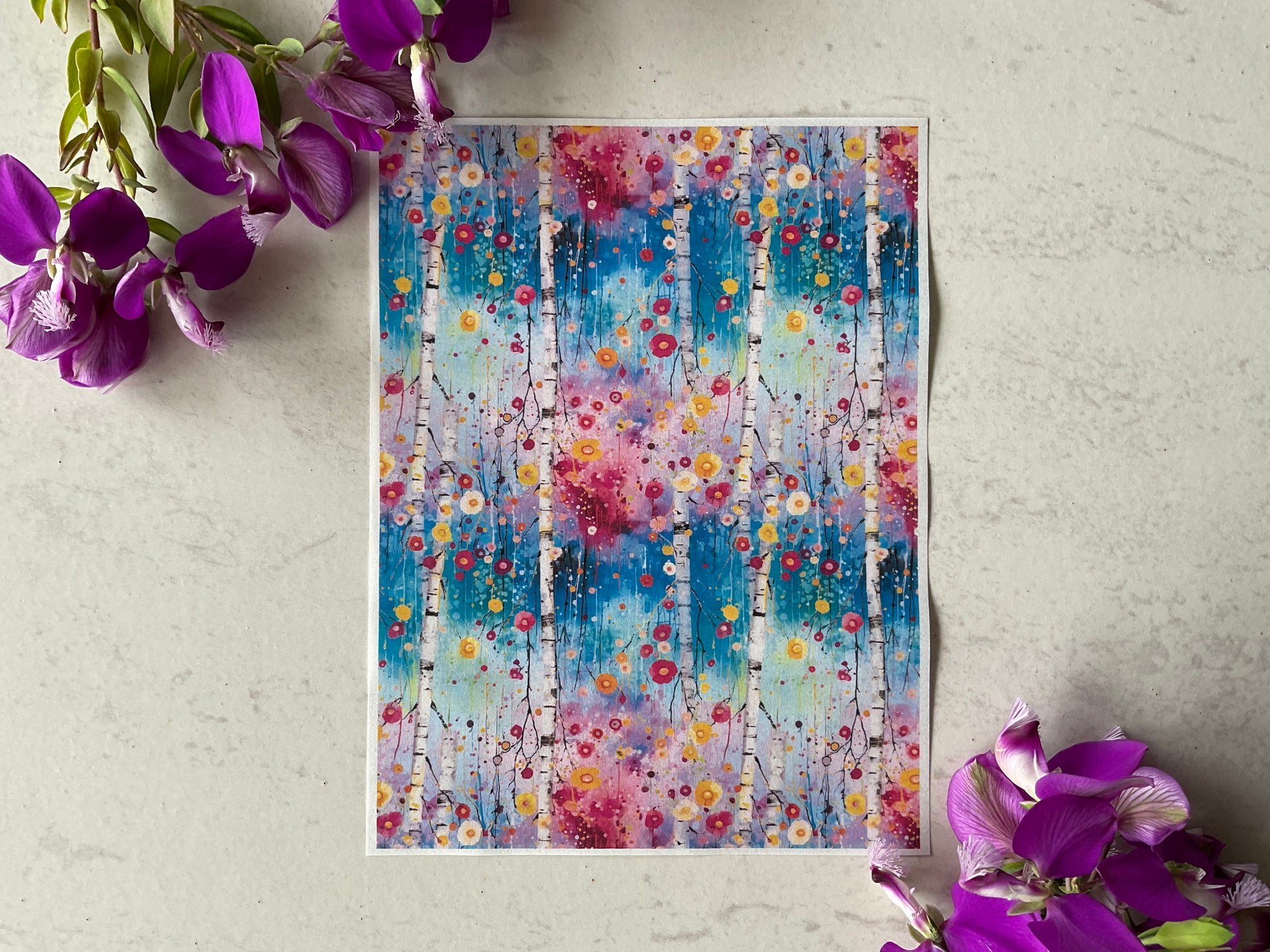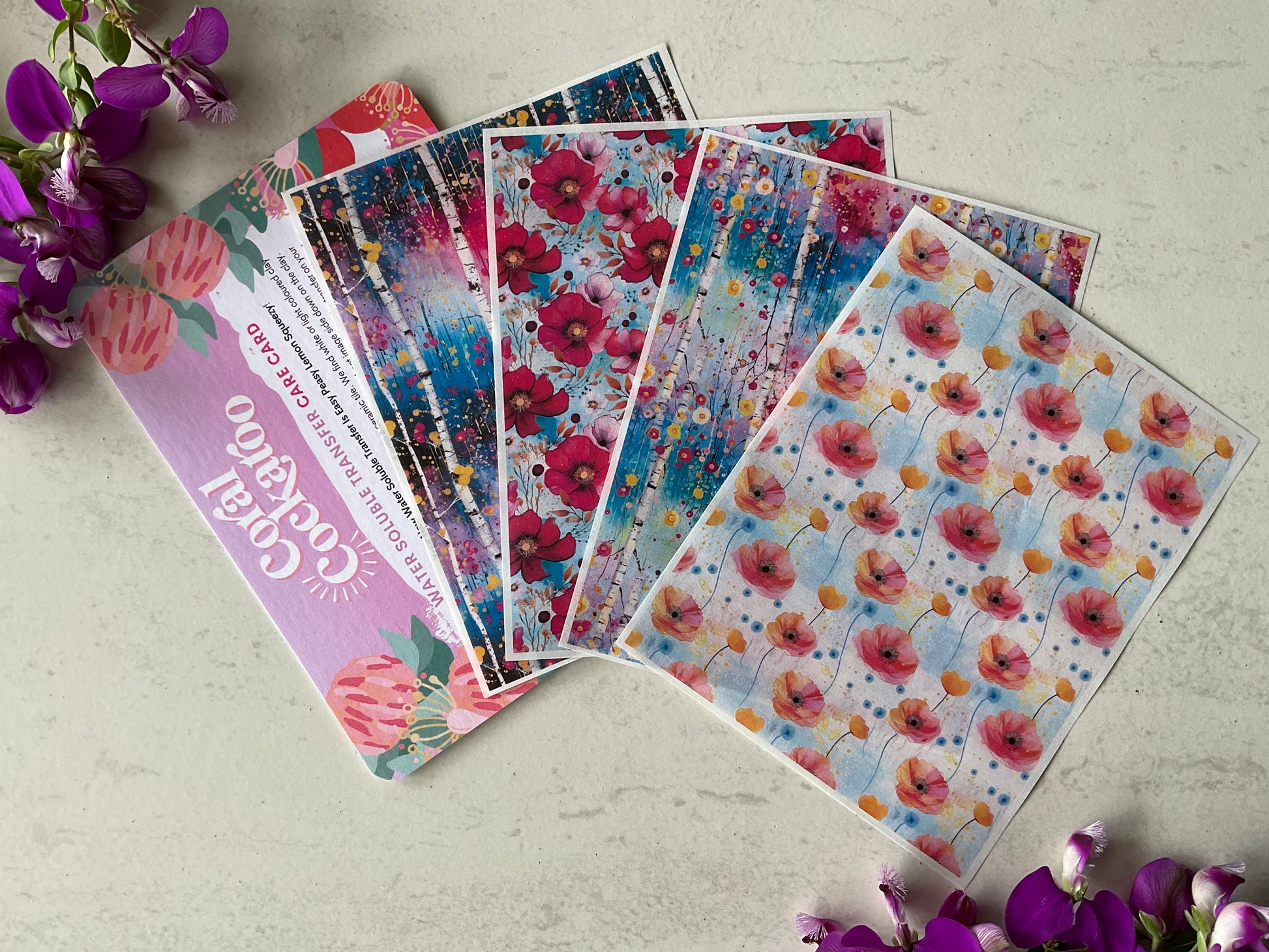 Silver Birches & Poppies Colour Water Soluble Transfer 002