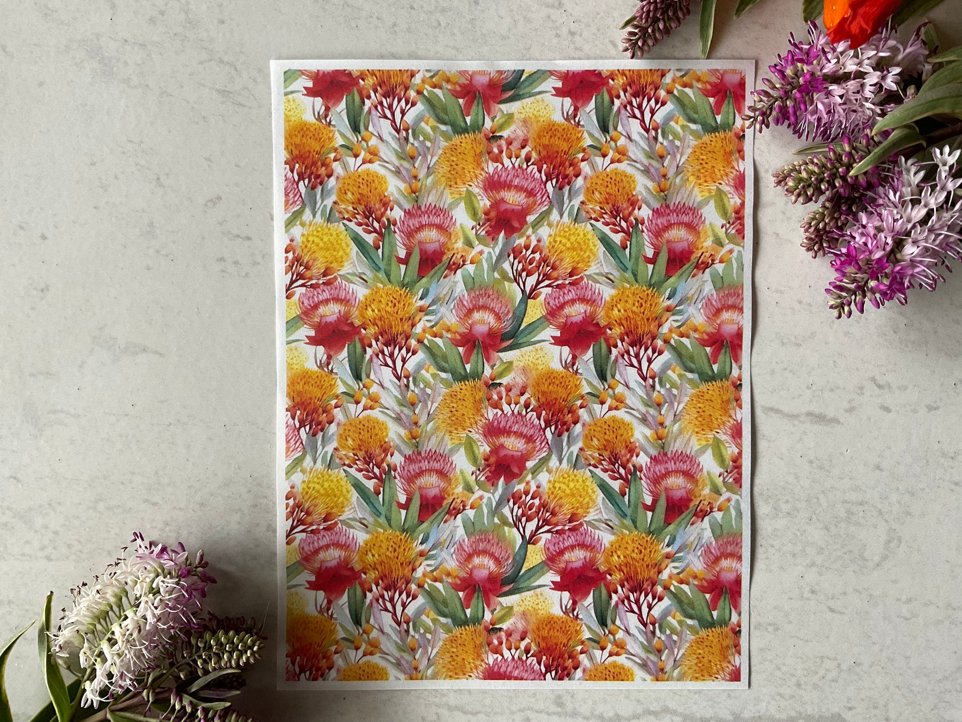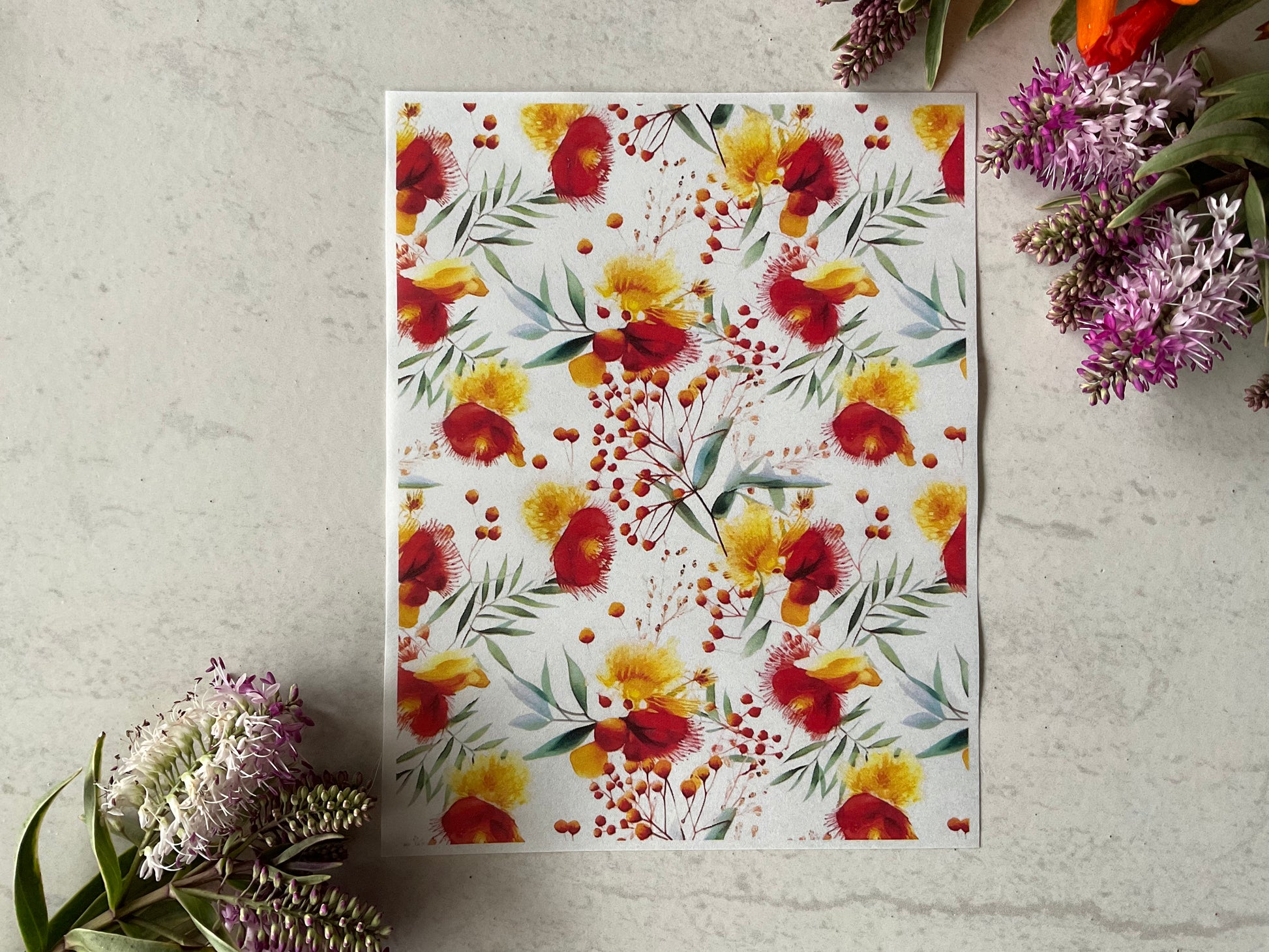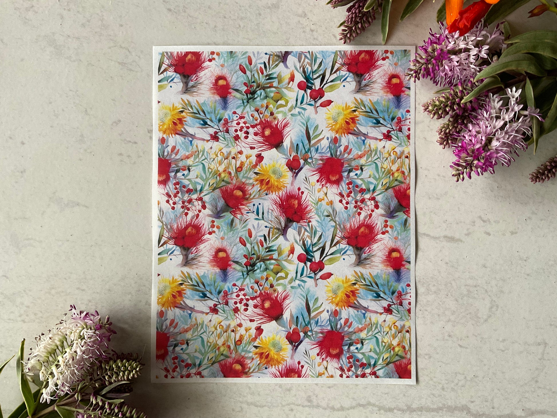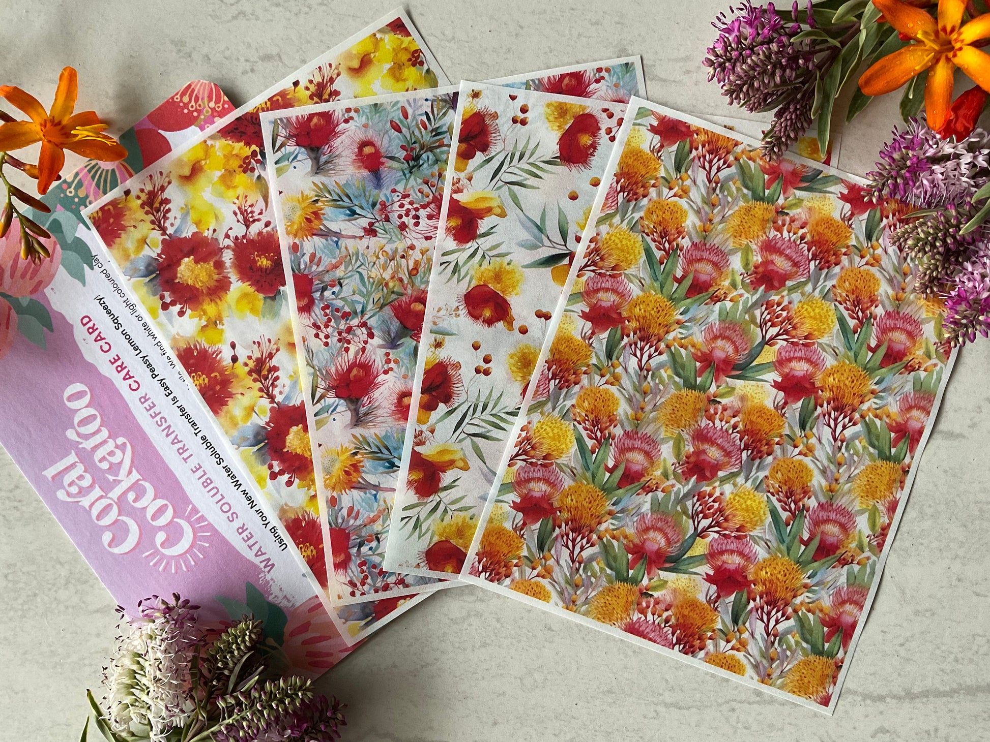 Watercolour Australian Botanicals Patterns - Bold- Colour Water Soluble Transfer 029