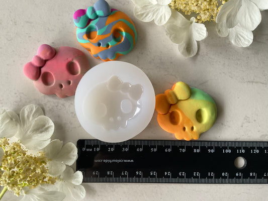 Large Cute Kawaii Skull With Bow Silicone Mold