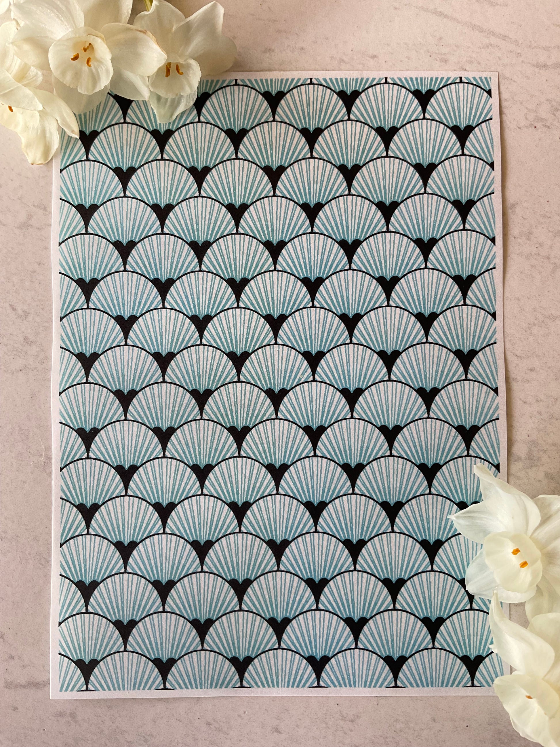 Art Deco Fan Scallops Only in Sky Blue Collab Colour Water Soluble Transfer - Me Oh My Graphics x Coral Cockatoo 30