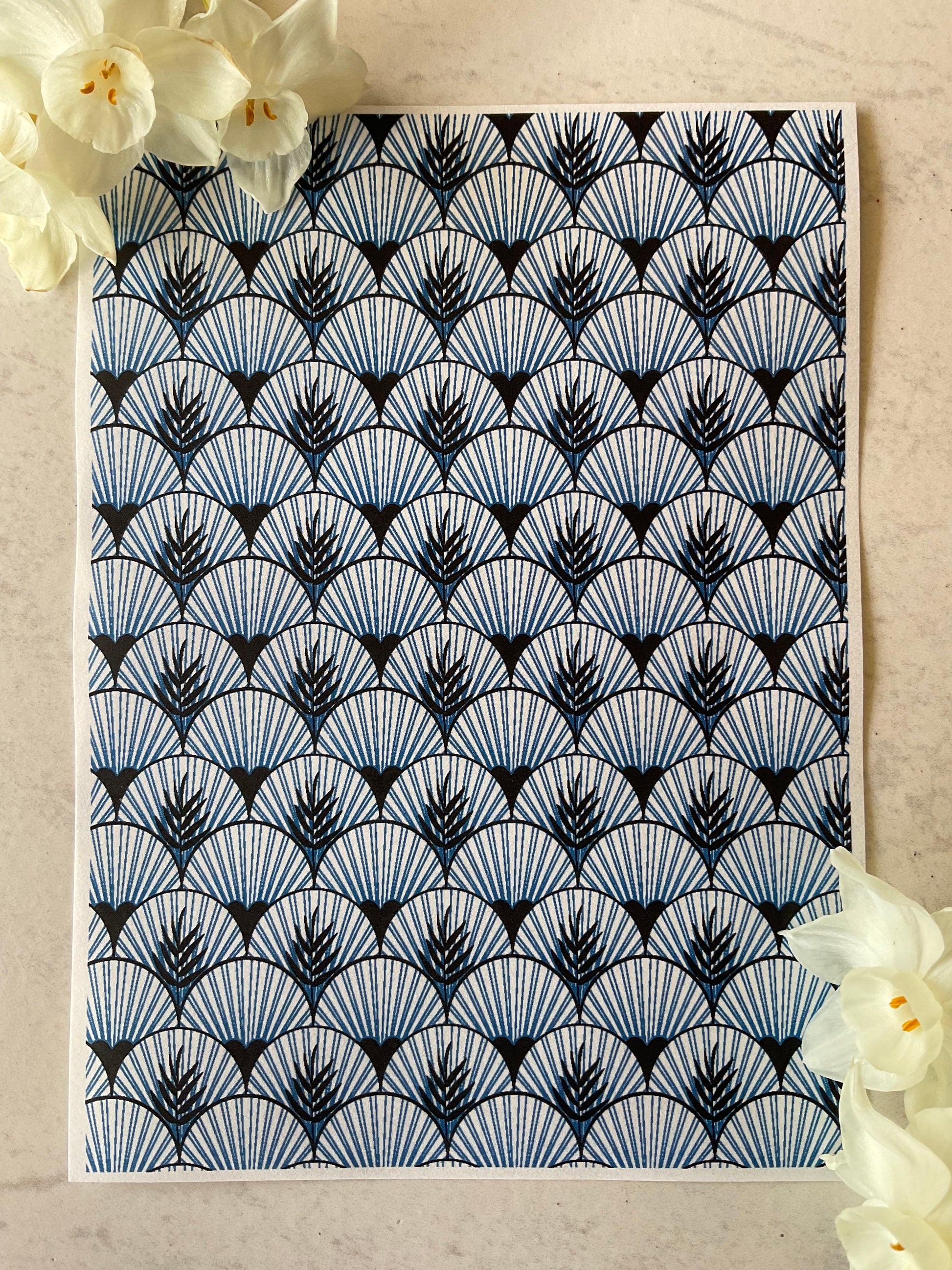 Art Deco Palms & Fans Scallops in Denim Blue Collab Colour Water Soluble Transfer - Me Oh My Graphics x Coral Cockatoo 21