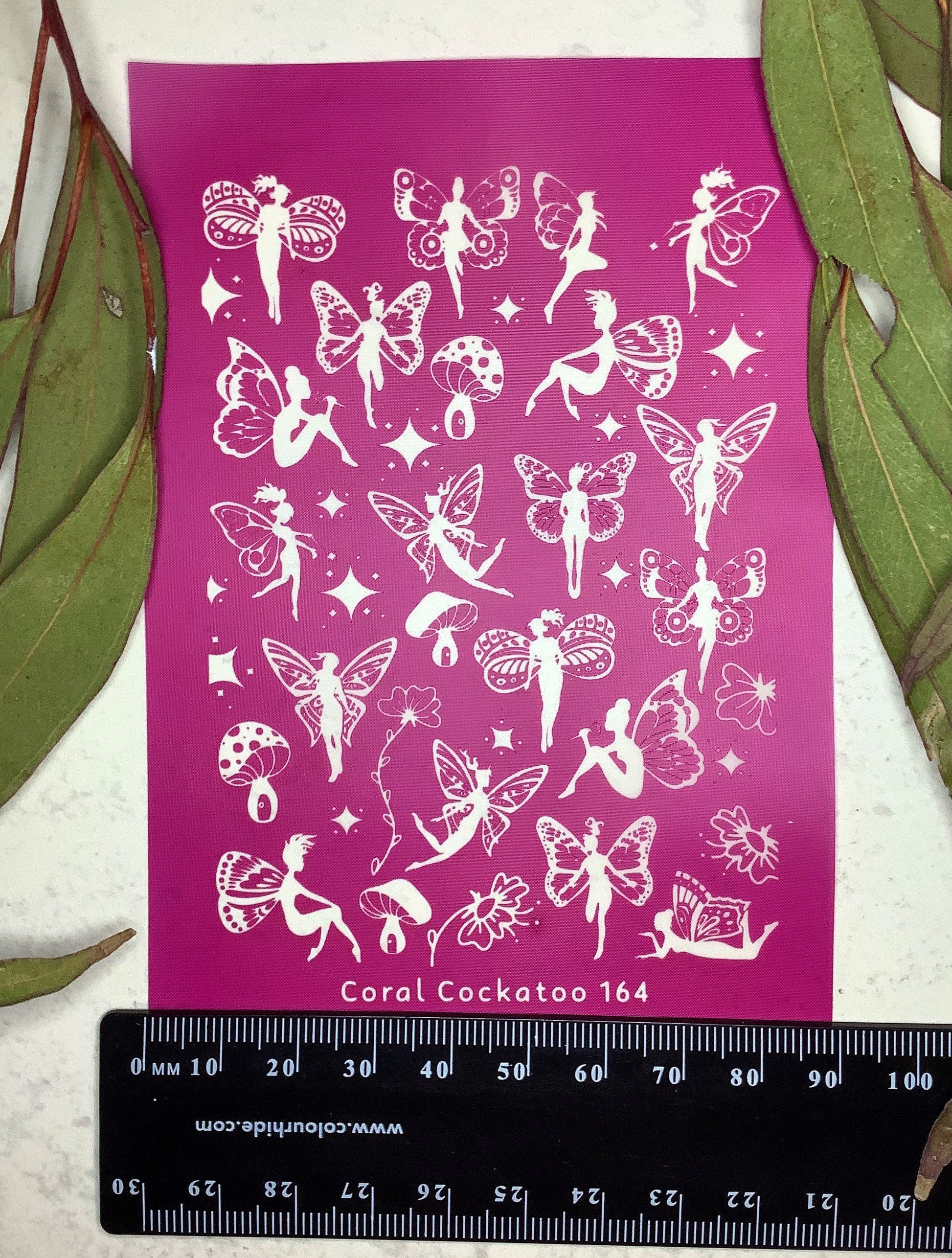 How to use your new Coral Cockatoo Silkscreen: Place the silk screen on top of your polymer clay or other decorative surface, make sure you can read the Coral Cockatoo Logo, it is facing the right way up. Apply your colour in the form of a good quality Artists Acrylic paint, gently swipe the paint across the silkscreen with a squeegee, scraper or old card, hold the squeegee at a 45 degree angle and pull towards you gently, pulling the paint across the silk screen. Once adequately spread through the design, lift up the silk screen by gently starting with the bottom right hand corner.