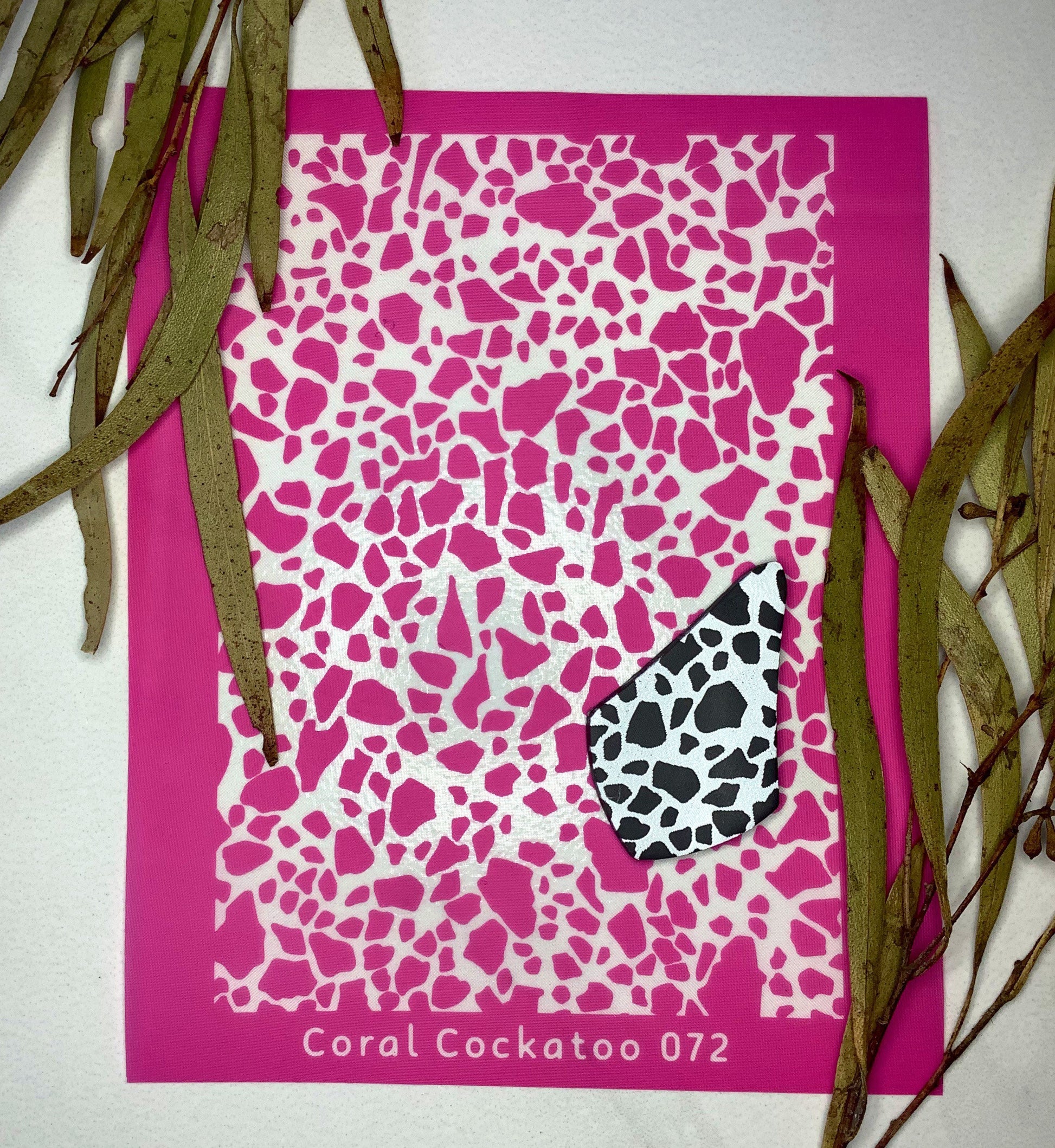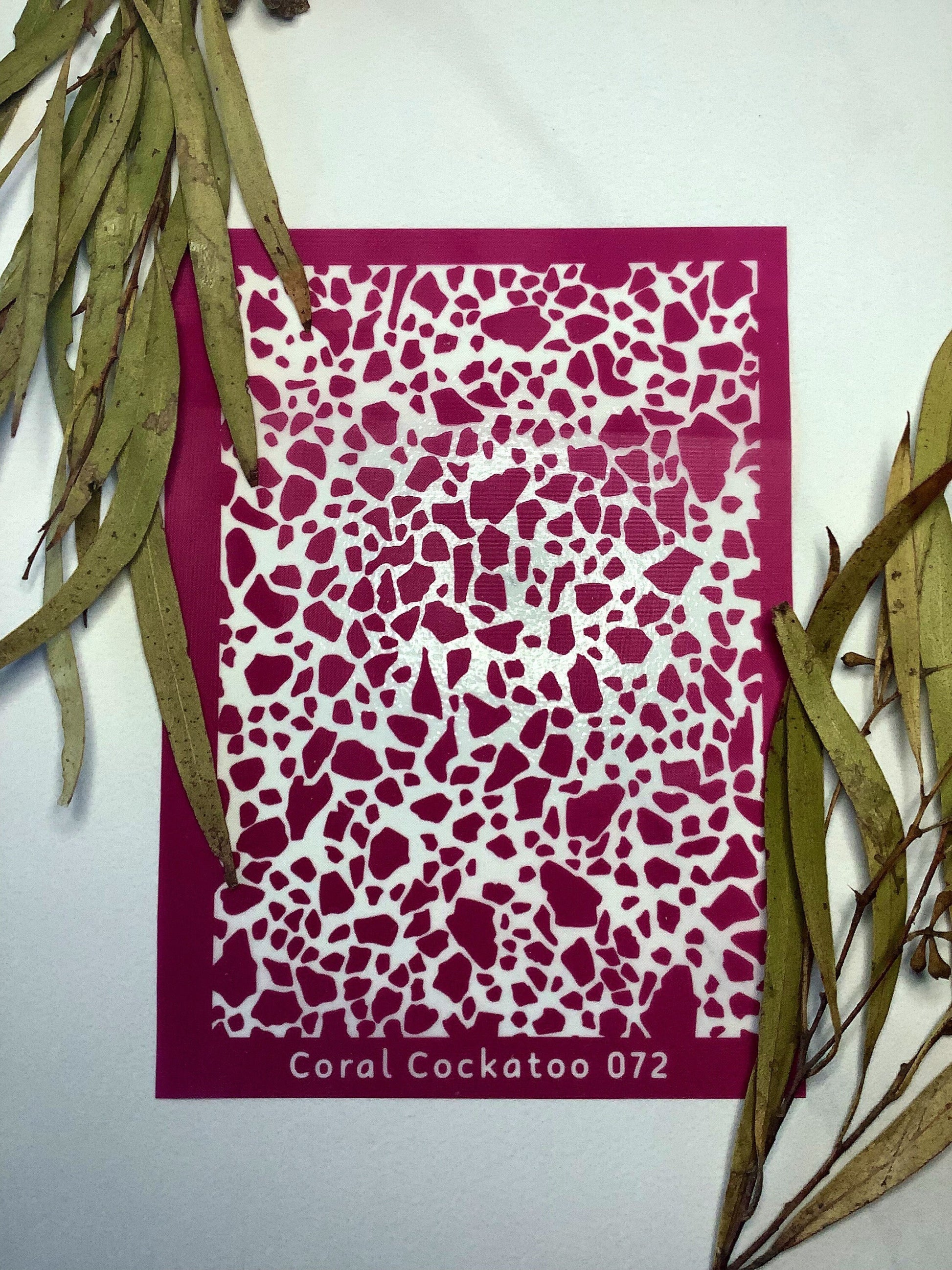 Important Info: Use your unique Coral Cockatoo Silkscreen for anything from earring and jewellery pieces to paper craft and card creations and more! The possibilities are limited only by your imagination and creativity!