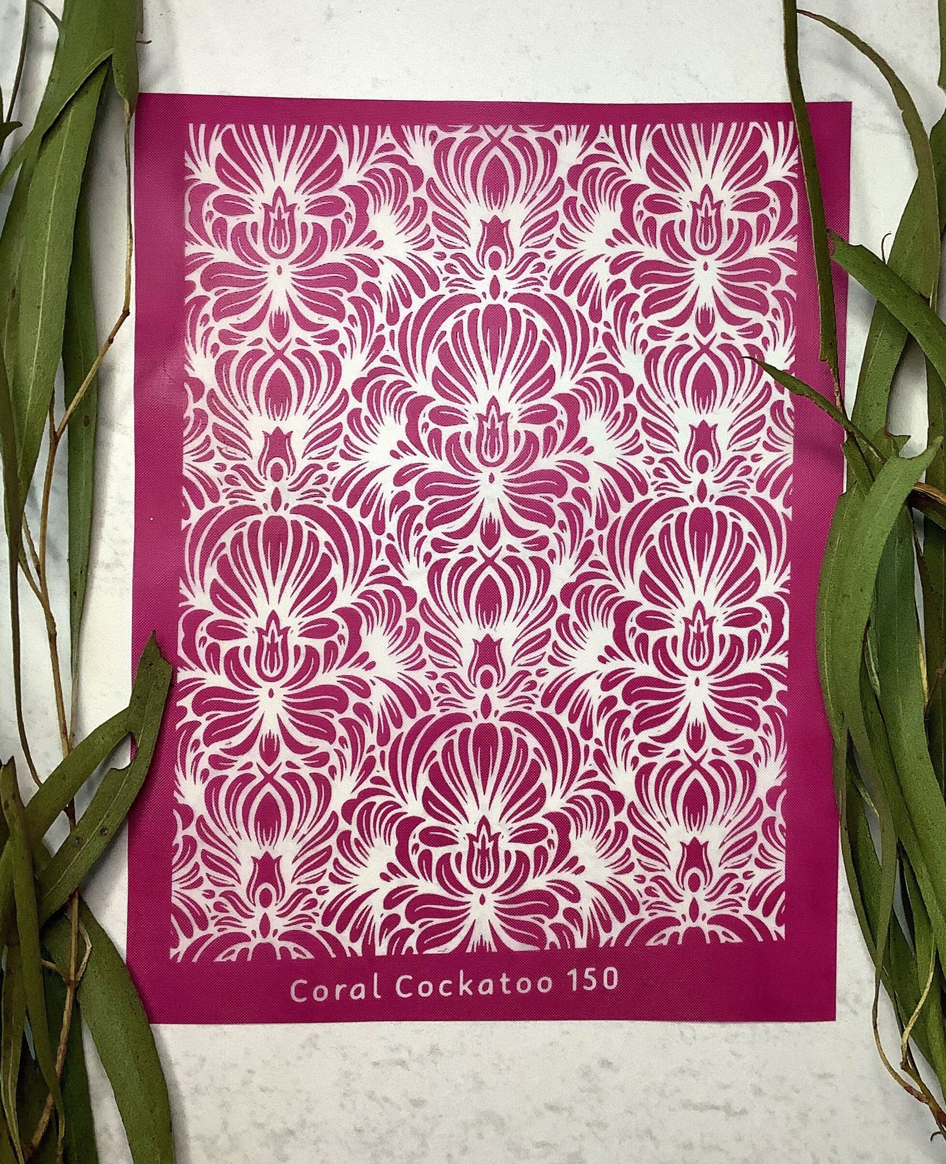 Recommendations: Coral Cockatoo recommends that you use your new Coral Cockatoo Silkscreen with a good quality highly pigmented Artists Acrylic Paint.