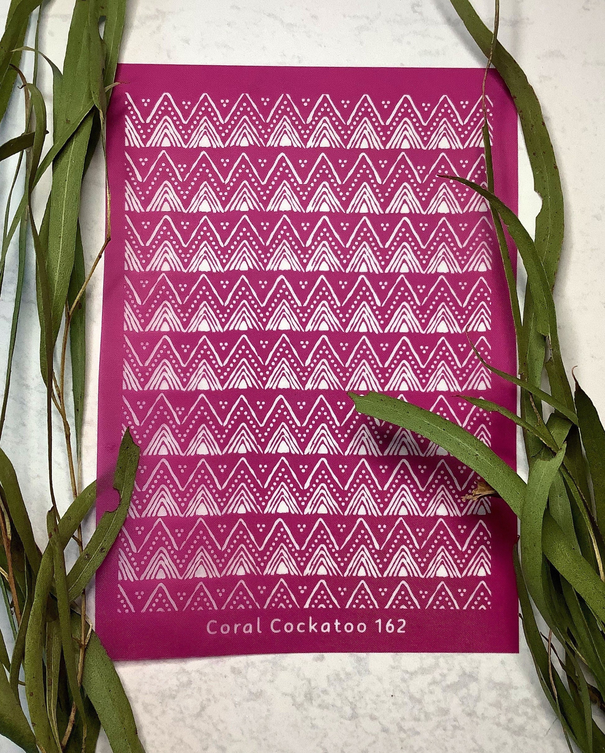 Recommendations: Coral Cockatoo recommends that you use your new Coral Cockatoo Silkscreen with a good quality highly pigmented Artists Acrylic Paint.