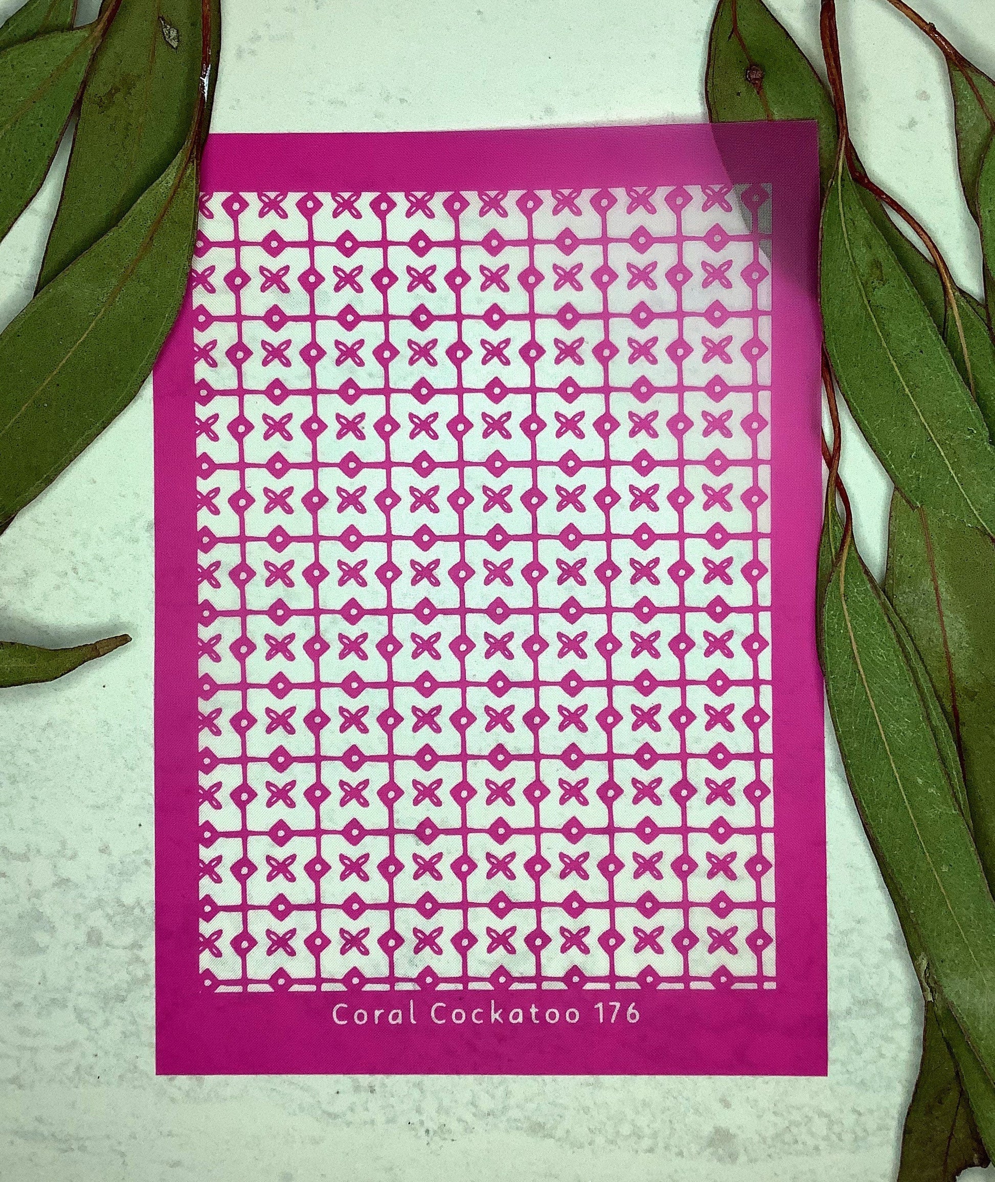 Important Info: Use your unique Coral Cockatoo Silkscreen for anything from earring and jewellery pieces to paper craft and card creations and more! The possibilities are limited only by your imagination and creativity!