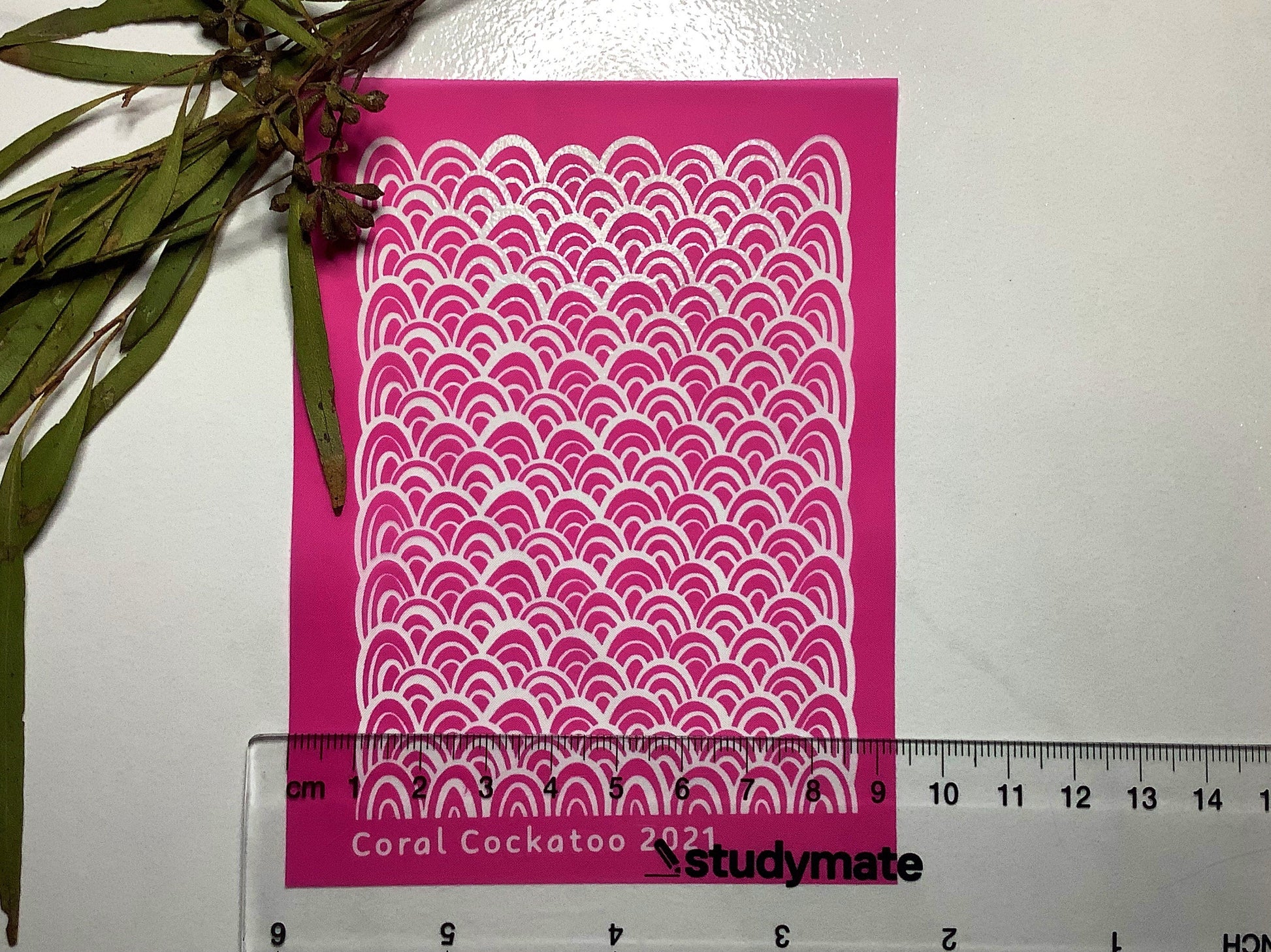 Important Info: Use your unique Coral Cockatoo Silkscreen for anything from earring and jewellery pieces to paper craft and card creations and more! The possibilities are limited only by your imagination and creativity!