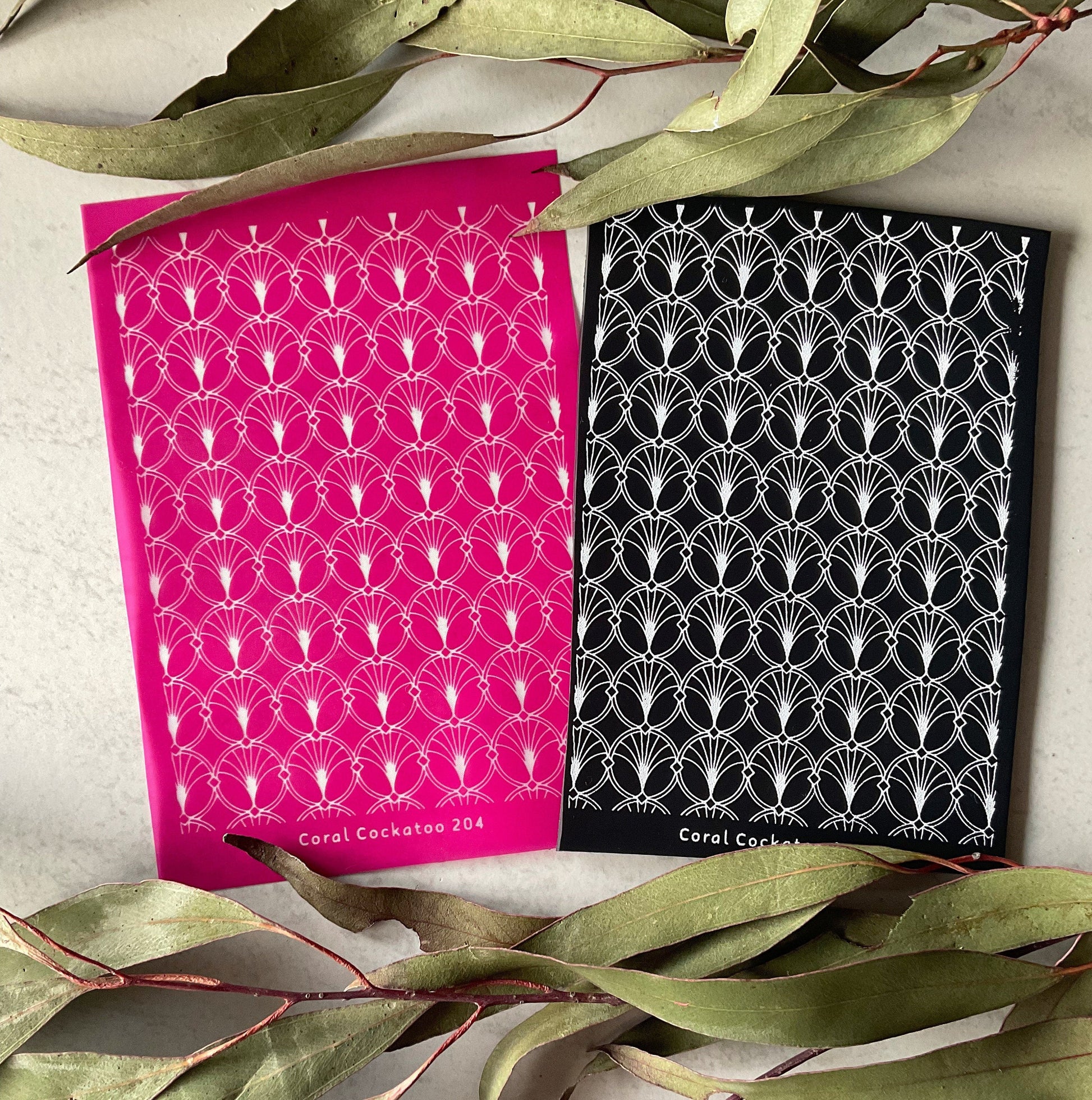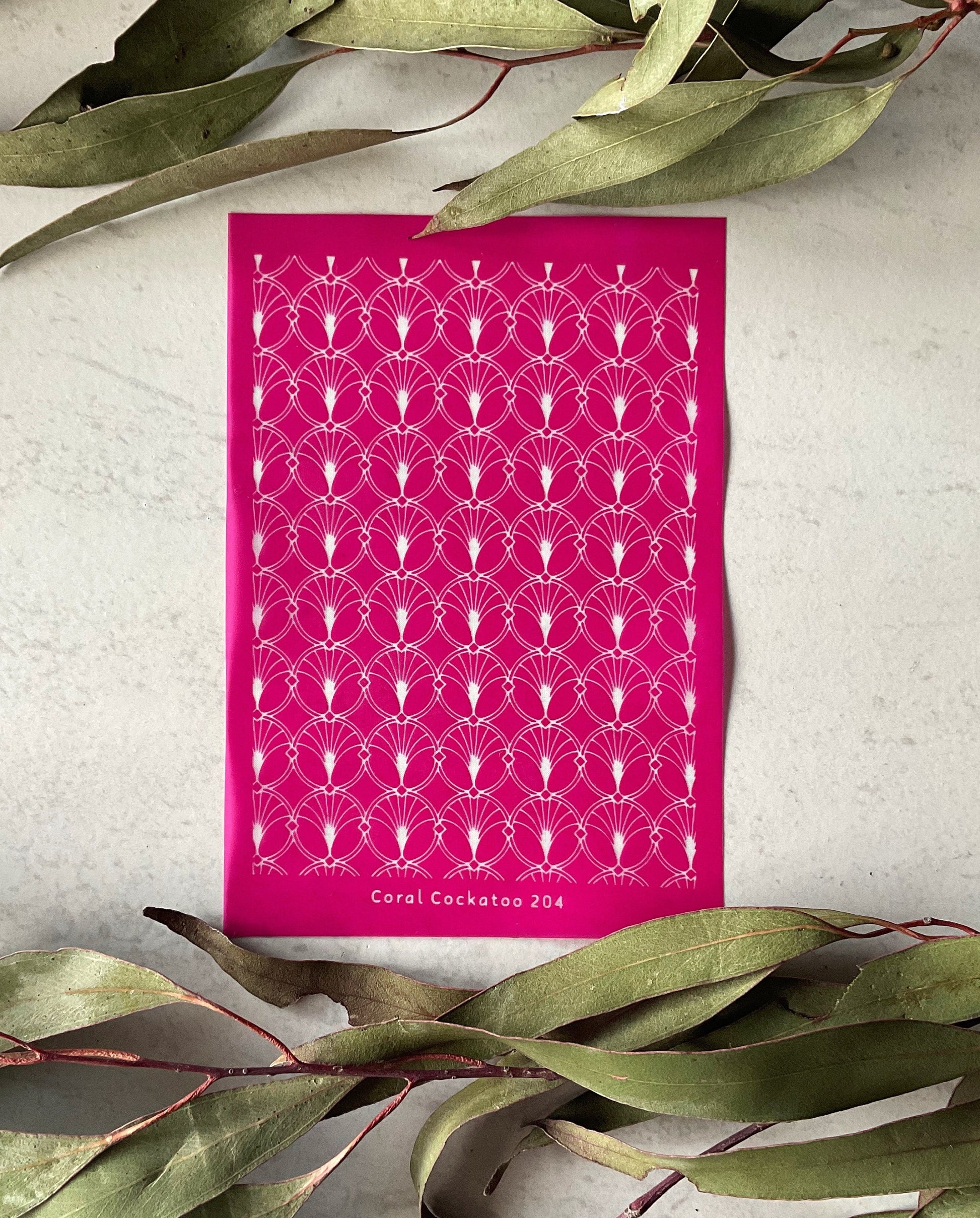 Important Info: Use your unique Coral Cockatoo Silkscreen for anything from earring and jewellery pieces to paper craft and card creations and more! The possibilities are limited only by your imagination and creativity!