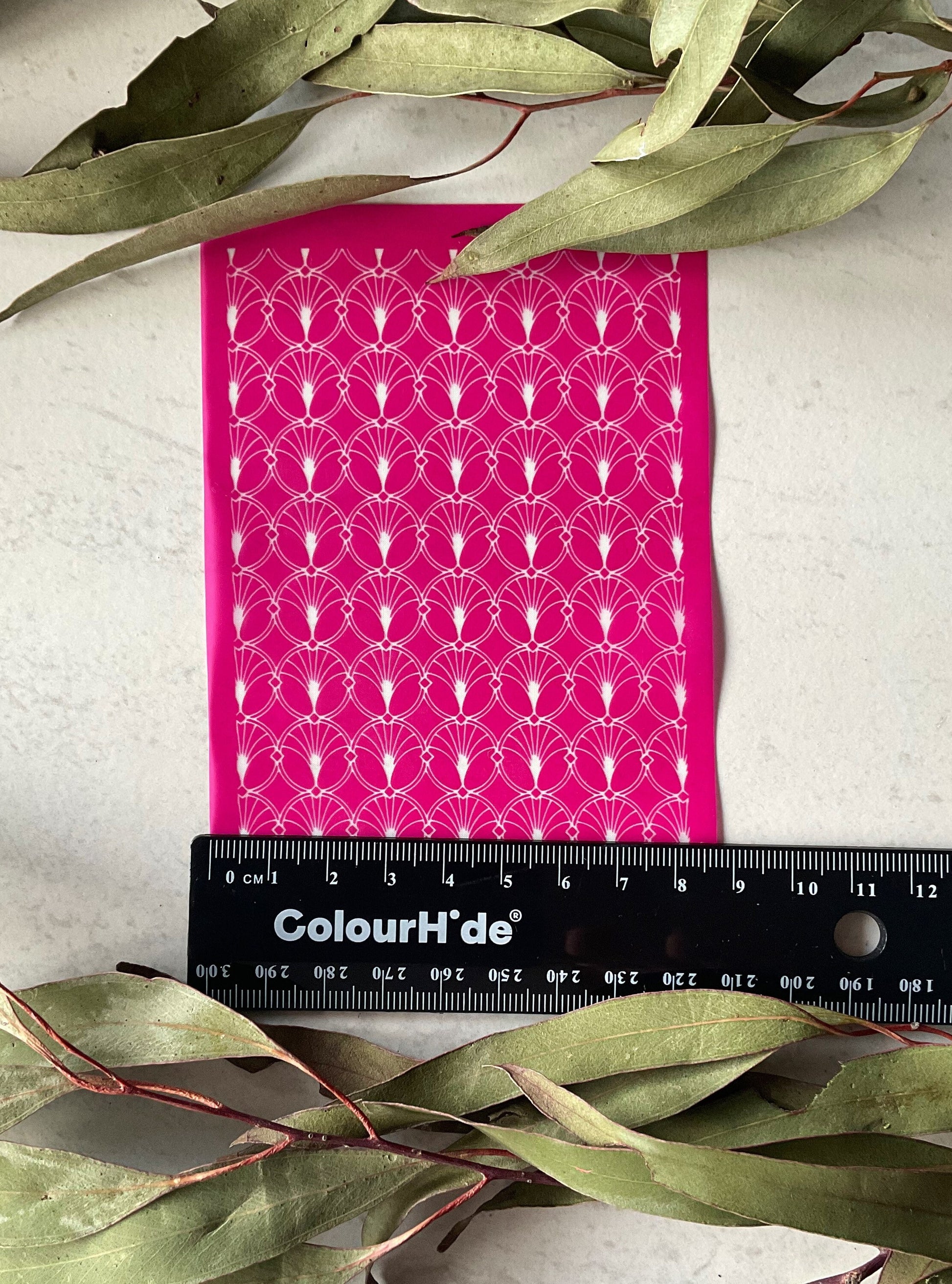 How to use your new Coral Cockatoo Silkscreen: Place the silk screen on top of your polymer clay or other decorative surface, make sure you can read the Coral Cockatoo Logo, it is facing the right way up. Apply your colour in the form of a good quality Artists Acrylic paint, gently swipe the paint across the silkscreen with a squeegee, scraper or old card, hold the squeegee at a 45 degree angle and pull towards you gently, pulling the paint across the silk screen. Once adequately spread through the design, lift up the silk screen by gently starting with the bottom right hand corner.