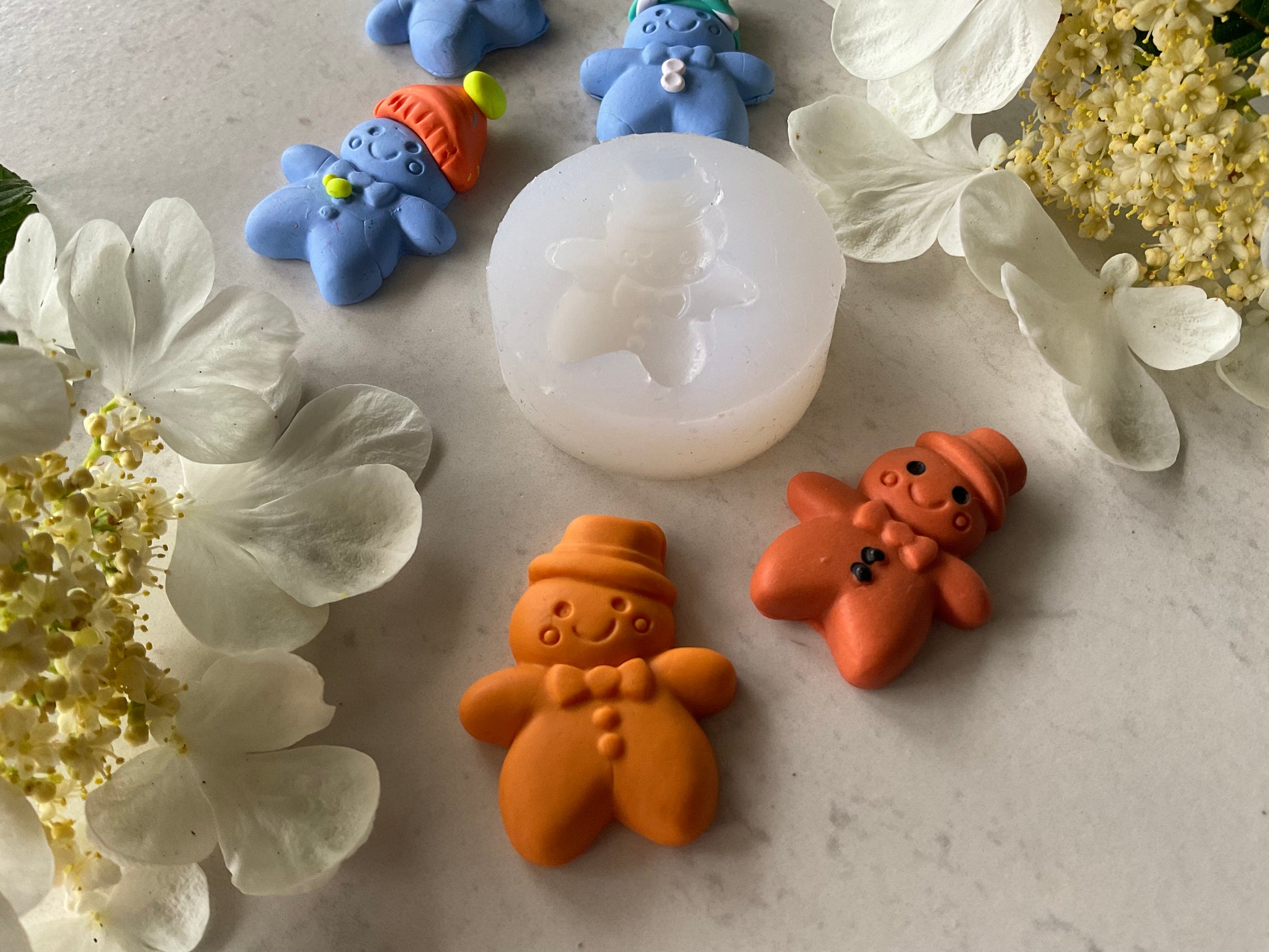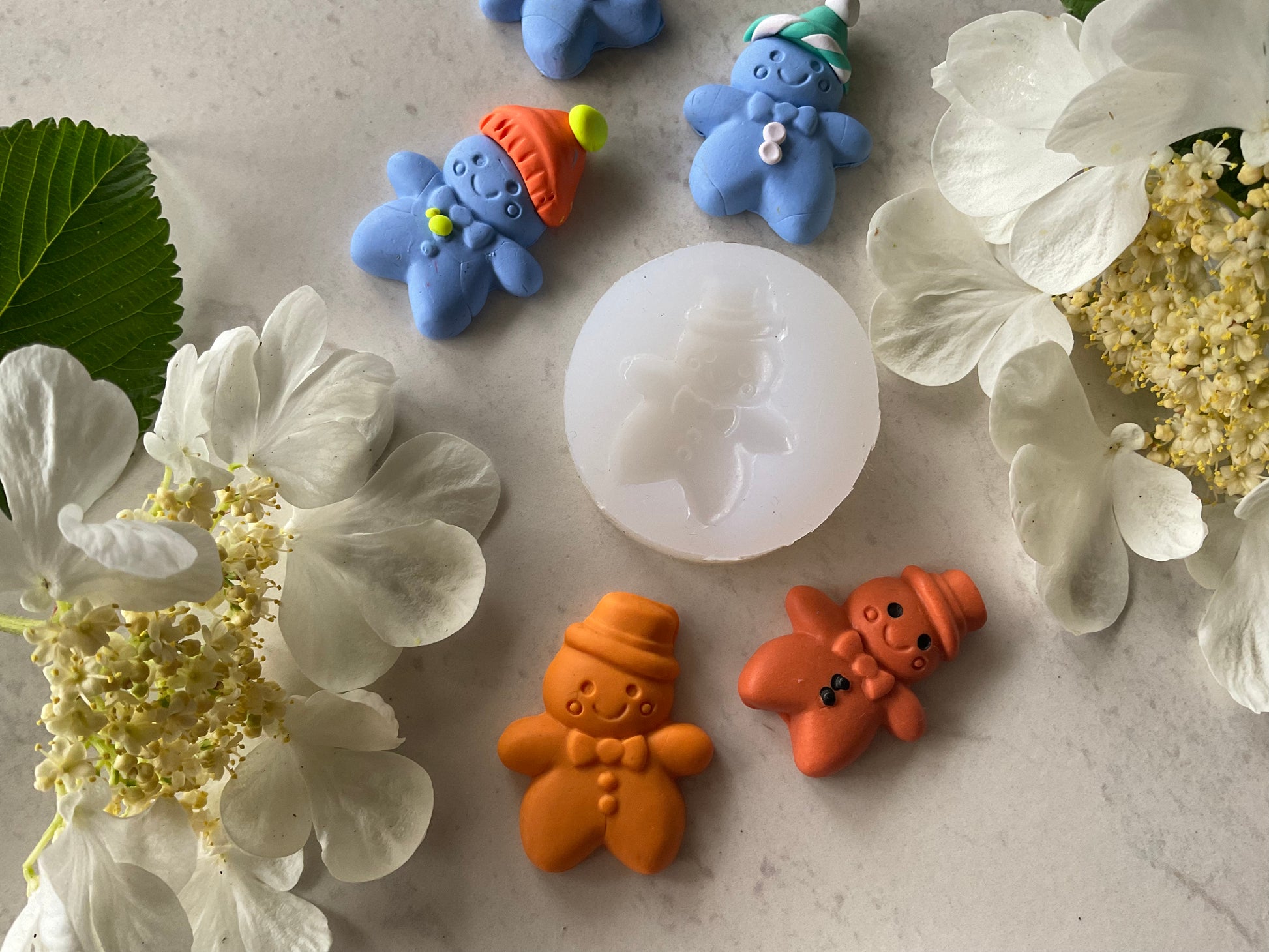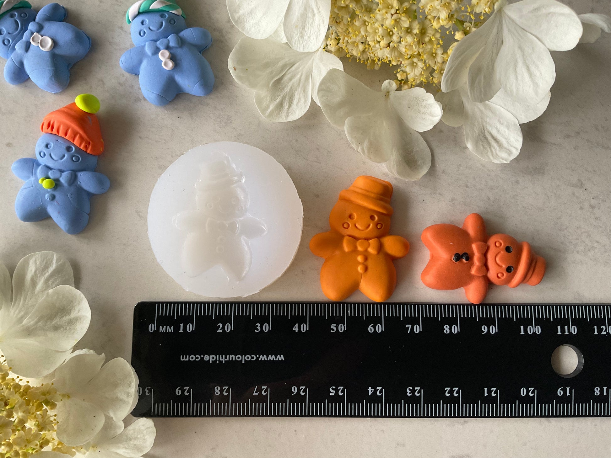 Bring some of Christmas cheer to your creations with this 33mm Gingerbread Cookie Man or Snowman (or Snow lady) Silicone Mold! Crafted with a Bow and button and top hat accents, this mold can be used with a variety of materials such as polymer clay, UV resin, or liquid clay and they are even oven safe! Hello liquid clay!! So get creative and make some awesome masterpieces that'll bring Christmas cheer all year round!